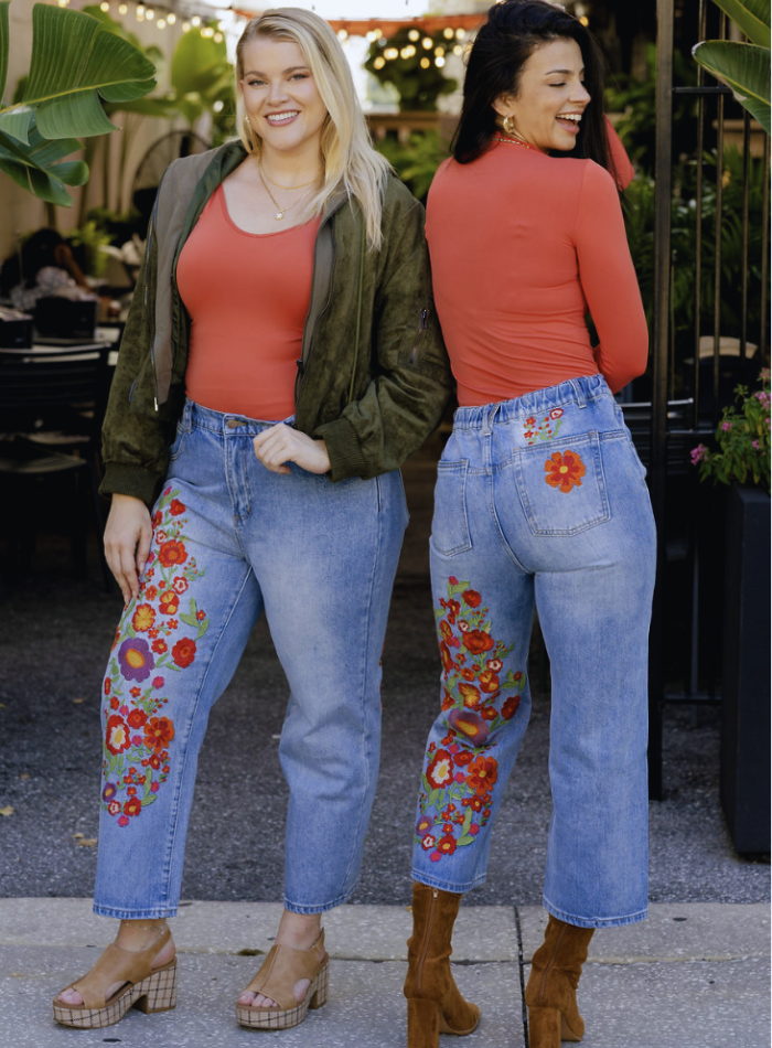 Uptown Funk Floral Embroidered Jeans