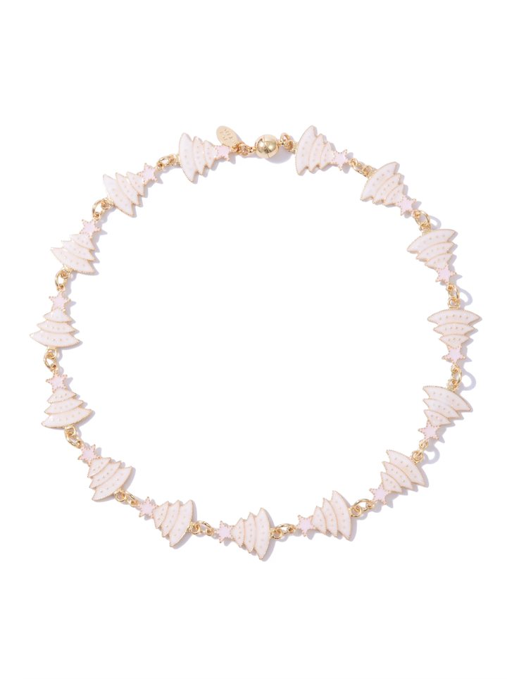 Rockin Around The Christmas Tree Necklace - Gold Metallic Pearl White Tree