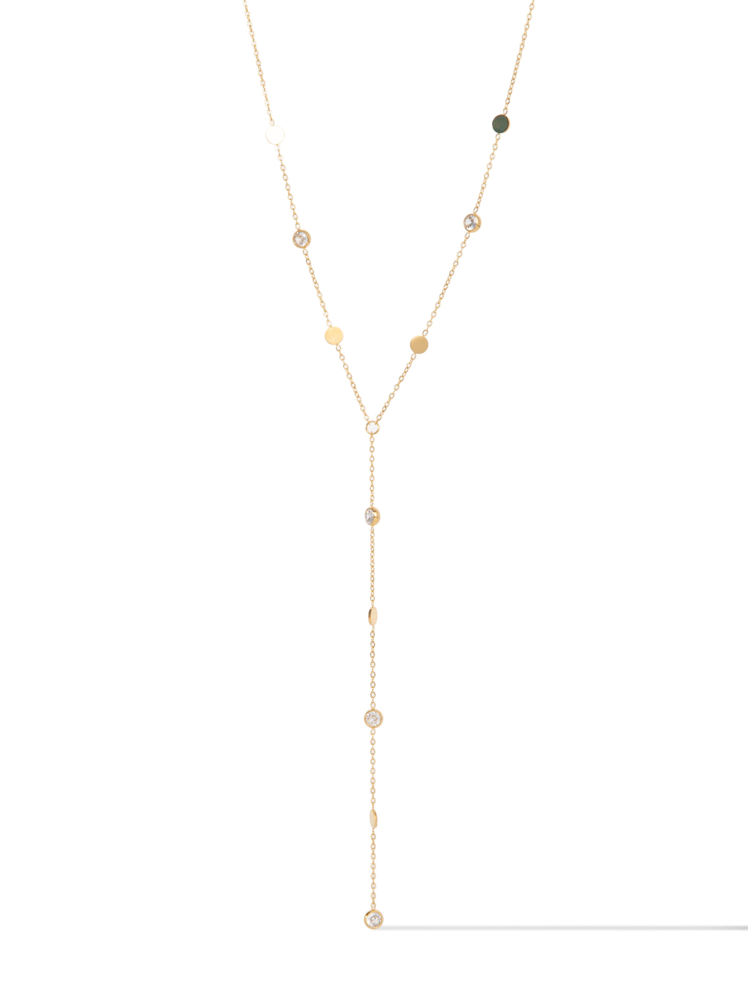 Our Abigail Necklace is absolutely stunning! Featuring the perfect Y-shaped chain in radiant gold, this beauty is crafted from high-quality stainless steel with sparkling Cubic Zirconia accents. The magnetic clasp and 3" extender make it as practical as it is gorgeous. Elegant, timeless, and totally swoon-worthy — we are IN LOVE! Plus, it’s waterproof, so you can wear this beauty worry-free every day.