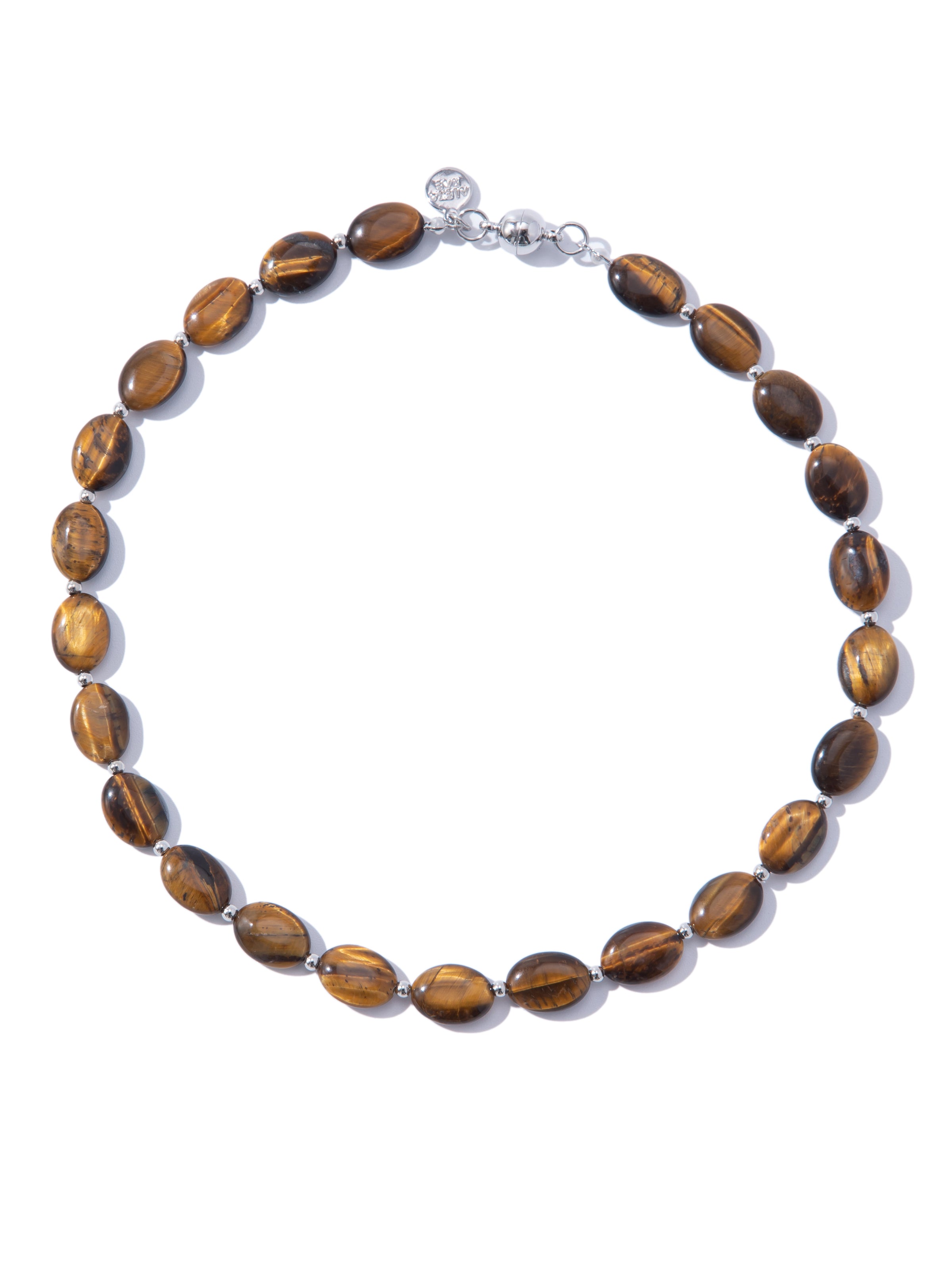 This stunning Aggie necklace features gorgeous cat's eye semiprecious stones in a rich cocoa hue that's absolutely irresistible. Lightweight and comfortable for all-day wear, it's designed with a secure magnetic clasp and includes a convenient 3" extender for the perfect fit. Whether you're dressing up or keeping it casual, this beauty adds just the right touch of sophistication and charm to any look. We're totally obsessed—and you will be too!