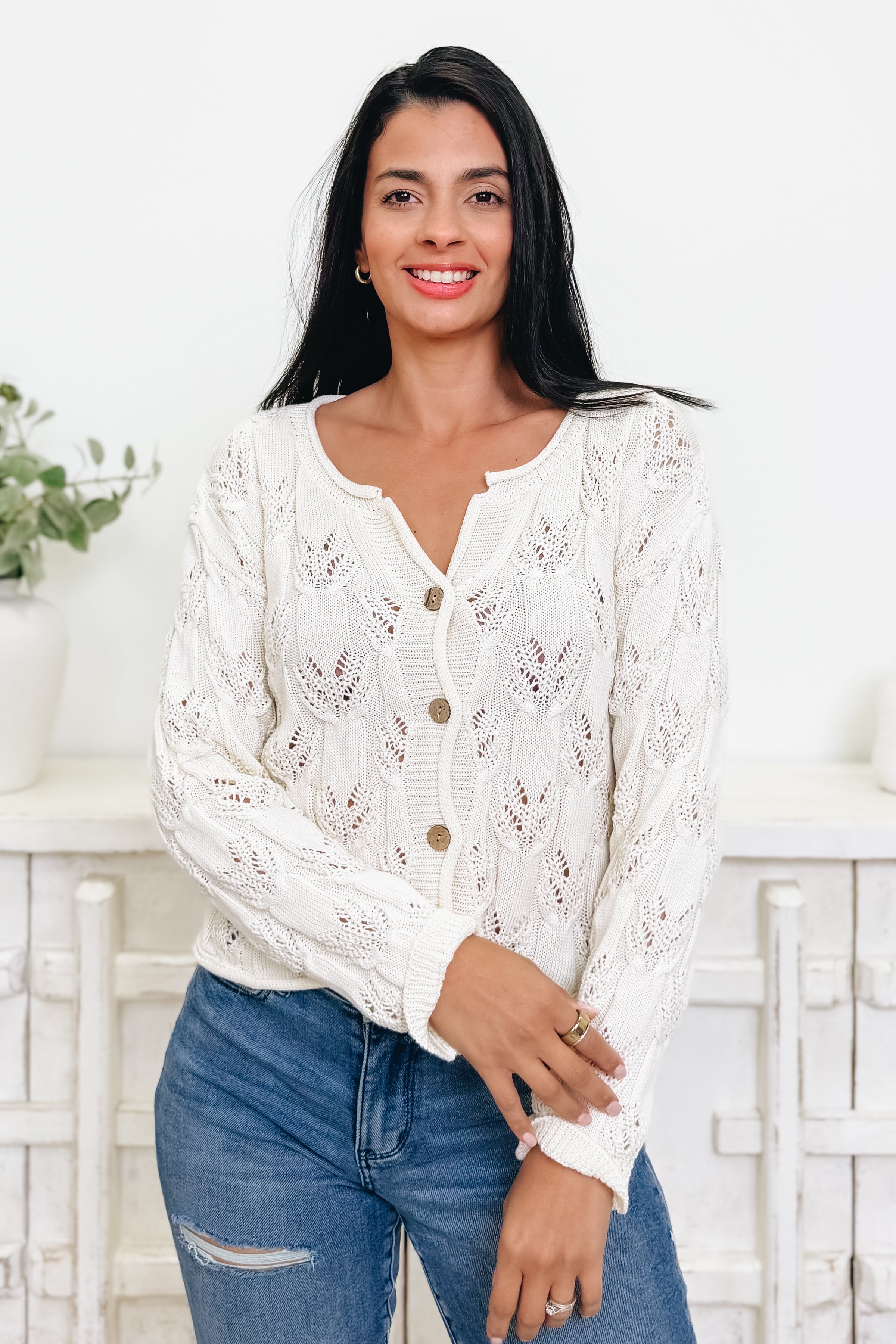 Slip into the All The Feels Cardigan and discover your new wardrobe obsession. This open knit beauty features functioning buttons and an effortlessly chic design that works with everything. Breathable and lightweight, it's the perfect layer for transitional weather—throw it over your favorite tee or dress it up for a night out. You'll reach for this one again and again.