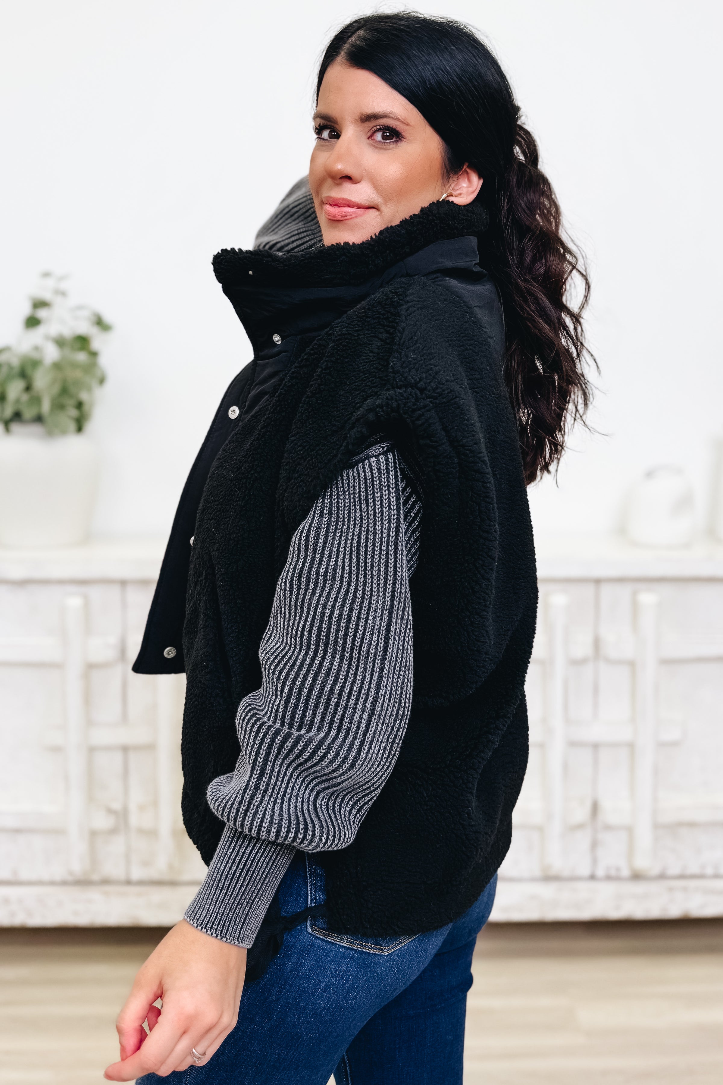 This vest is everything you need for layering season! With its plush sherpa texture, quilted contrast trim, and oversized fit, it’s giving all the snuggly fall feels while keeping things stylish. Fully lined and oh-so-soft, it’s perfect for tossing over flannels, hoodies, or even your favorite graphic tee. Basically — it’s your new cold-weather MVP!