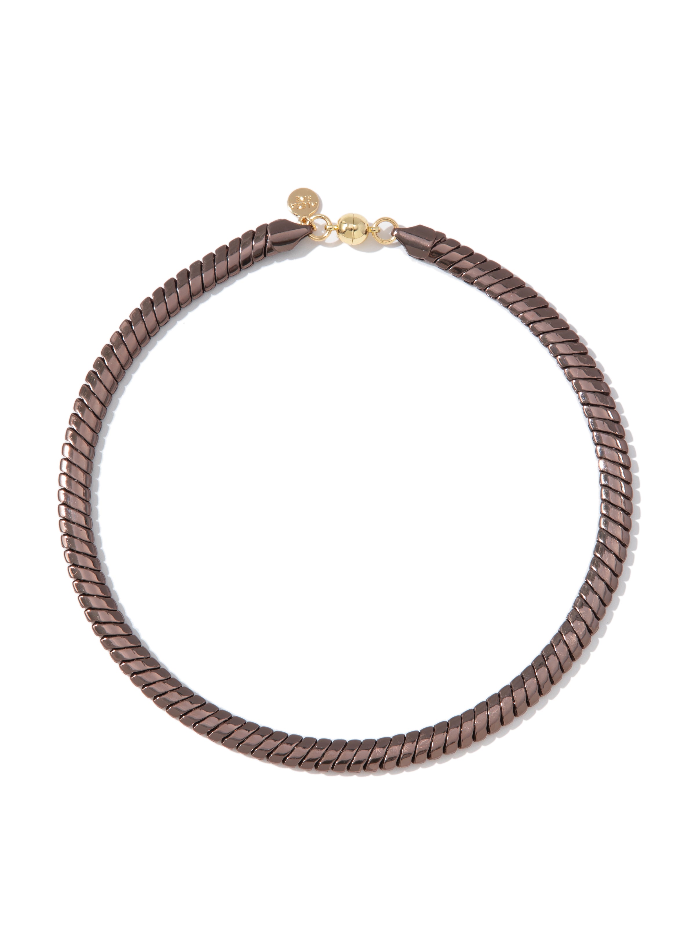 Meet your new favorite accessory – the Allie necklace! This stunner drapes effortlessly with its sleek chain design, bringing just the right amount of glam to any outfit. The rich metallic Hershey kiss coloring is pure perfection, adding a bold yet elegant touch. Plus, with a handy magnetic clasp and a 3” extender, it’s as easy to wear as it is to love. Whether you're dressing it up or keeping it casual, the Allie necklace is a must-have. Snag yours and shine on! ✨