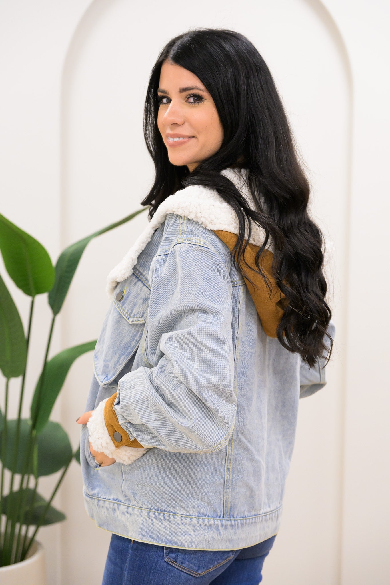 Step up your style game with the Oli & Hali Coat! Made from light wash denim with luxe sherpa accents and a soft, suede-like hood, this coat is all about cozy-chic vibes. Functional buttons and generous coverage make layering effortless, while every detail—from the stitching to the texture—screams style. Perfect for turning heads while staying warm, this is the jacket your wardrobe has been waiting for!