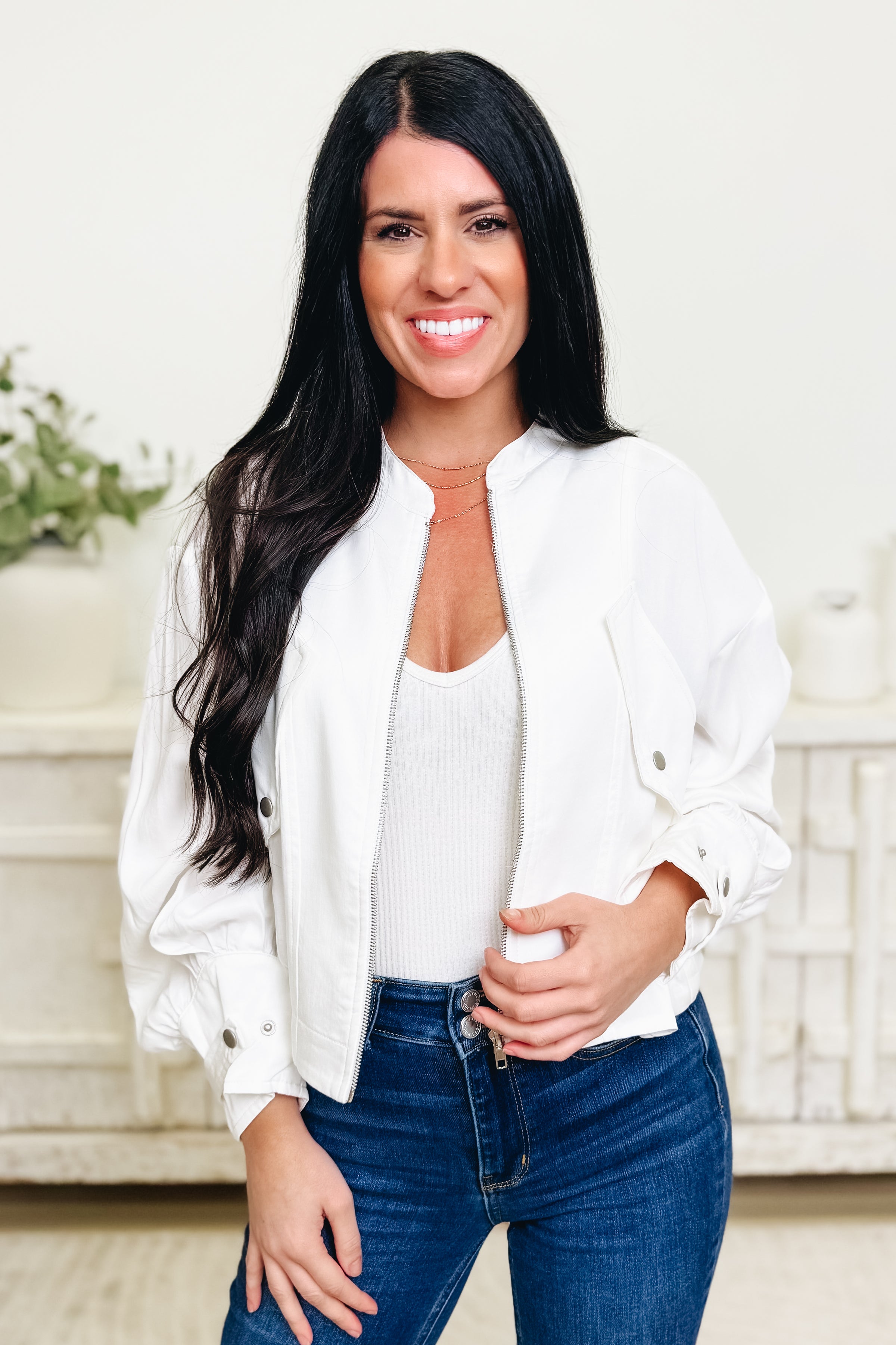 This is the cutest bomber jacket and we are seriously in love 🤍 It’s super soft with the best stretch for that comfy, easy fit, and the functioning zipper makes it perfect for layering and styling your way. The colors are everything—so fun, flattering, and outfit-making. Lightweight, cozy, and cute enough to throw on with literally anything… this one’s a total favorite!