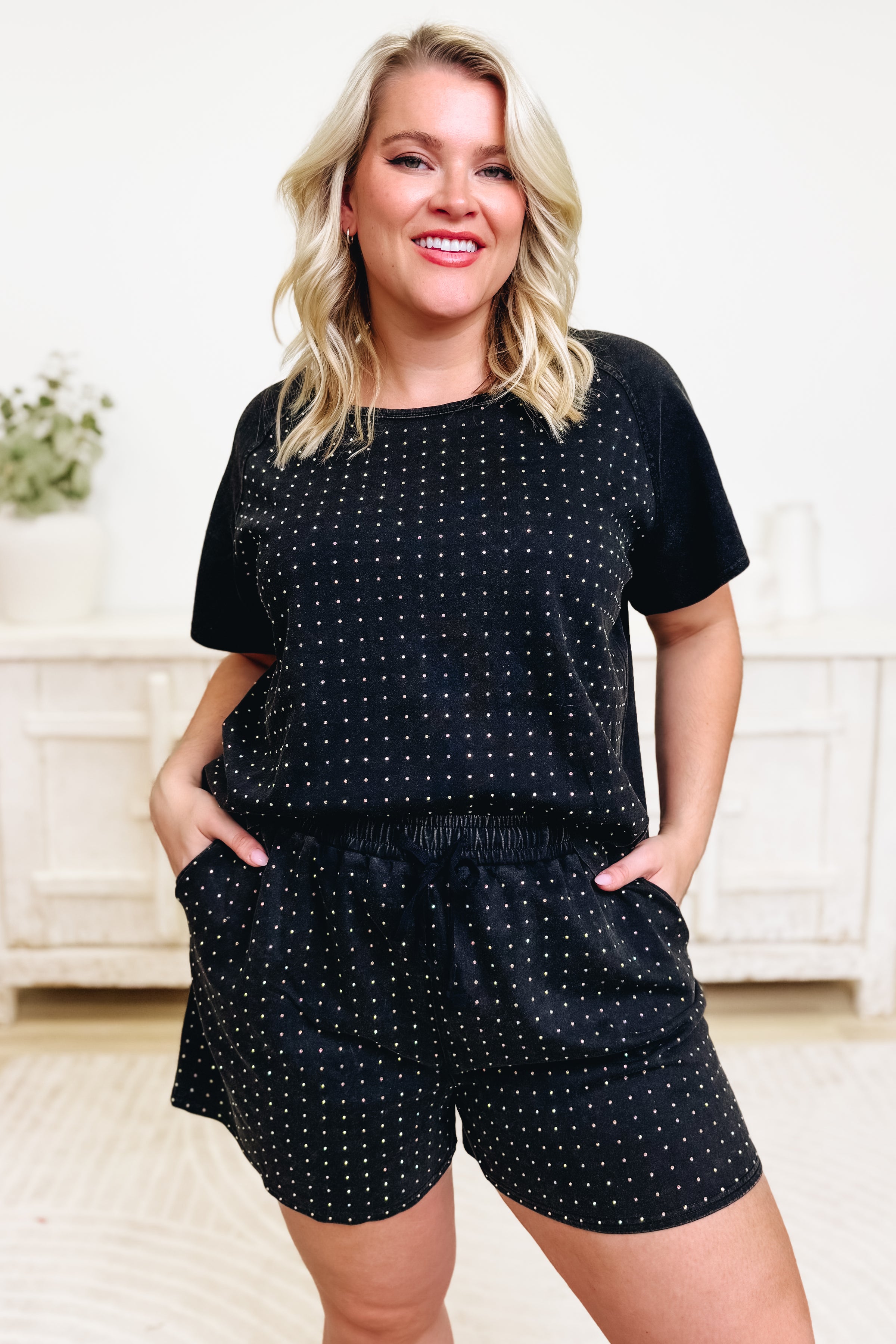 The BAR Diamond Luxe Set is calling your name—and trust us, it’s answering 💎✨ This standout shorts set is truly one of a kind, crafted from ultra-soft scuba mineral wash fabric with just the right amount of stretch for all-day comfort. Subtle diamond sparkles are woven throughout for that irresistible main-character glow, while the thoughtfully designed neckline flatters in all the right places. Finished in a stunning color with an effortlessly chic yet undeniably fun vibe, this set is equal parts cozy and confident. It’s the kind of outfit that makes you feel incredible the moment you put it on—and even better every time you wear it.