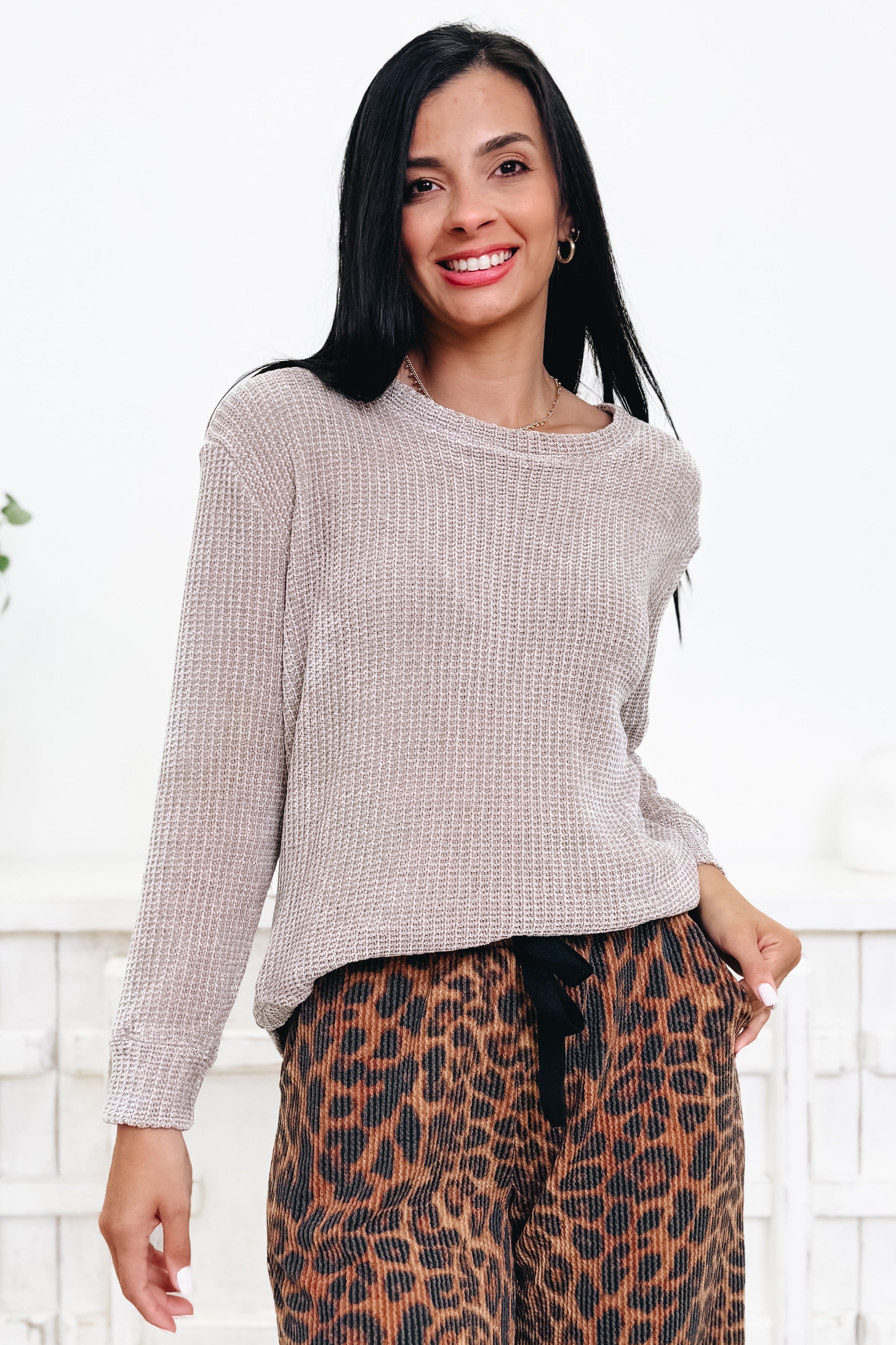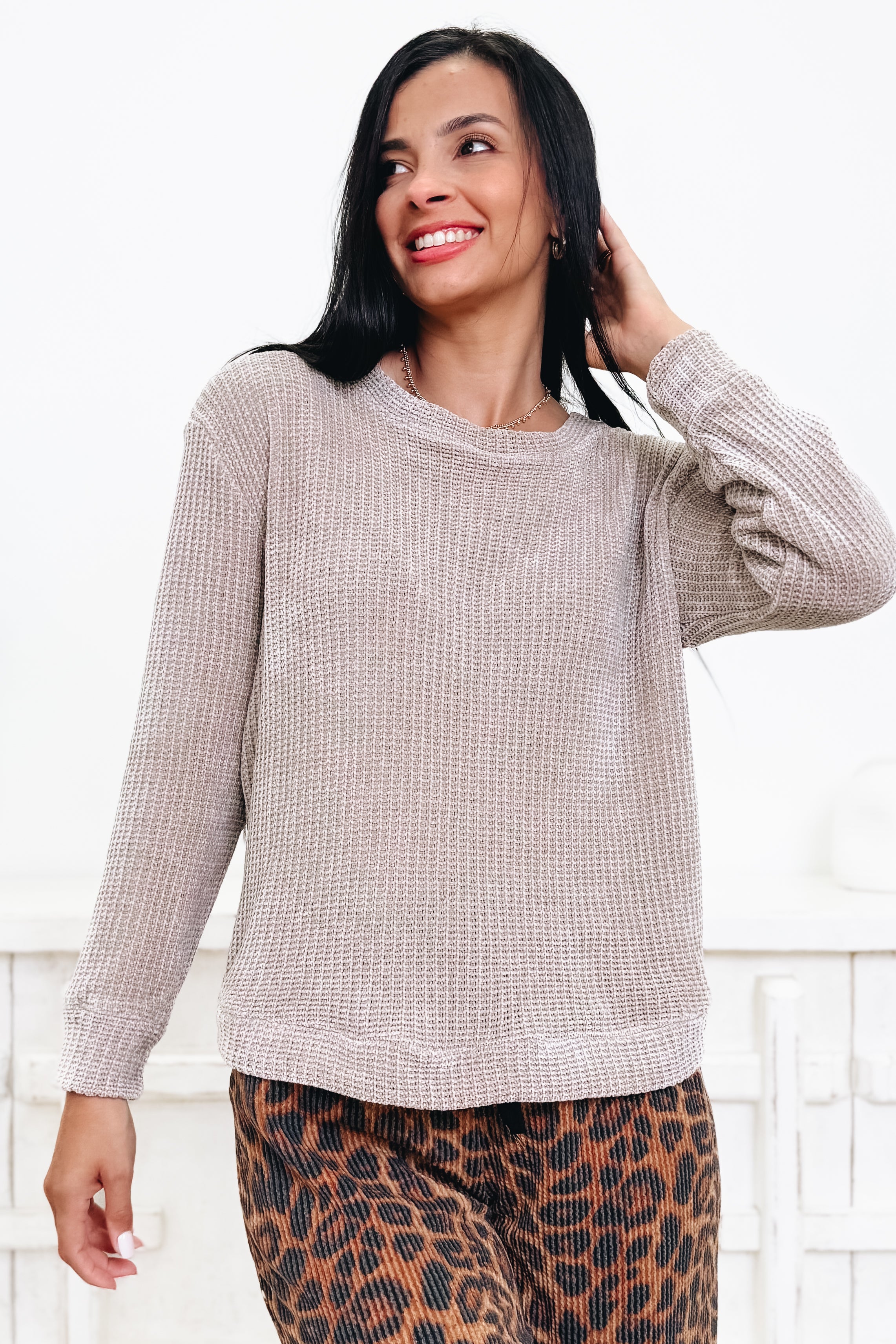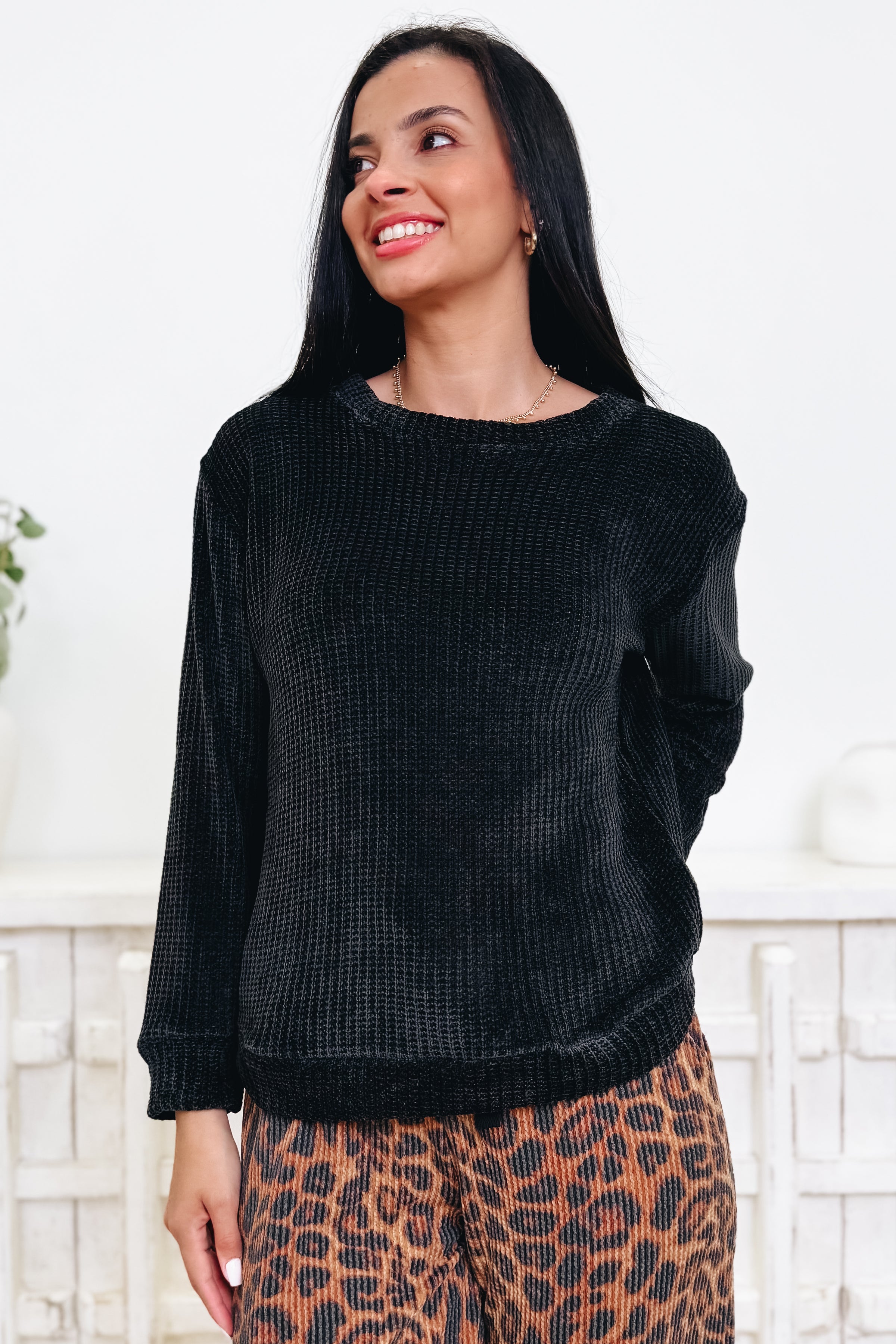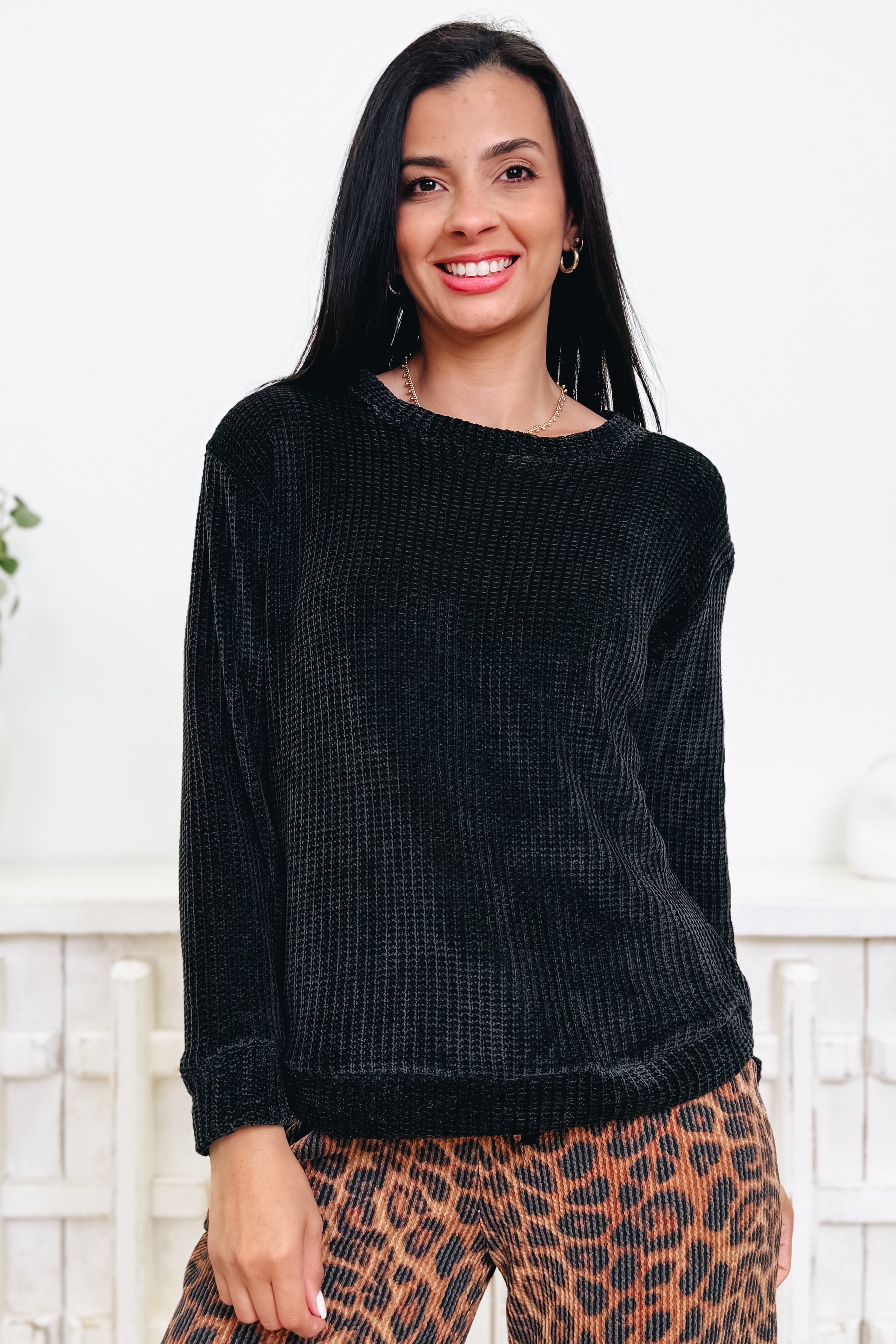 Umm hello cozy! This chenille top is basically a warm hug you get to wear out in public. That buttery-soft, plush texture feels SO luxe, but the fit is easy and relaxed so you’re comfy from coffee runs to couch hangs. It drapes just right, gives a little polished vibe, and still keeps things laid-back and cute. And with 4 amazing colors to pick from? Yeah… good luck choosing just one. This is a “grab every shade” kinda obsession. Pair it with denim, joggers, skirts — literally anything — and you’ve got instant cozy-chic magic.