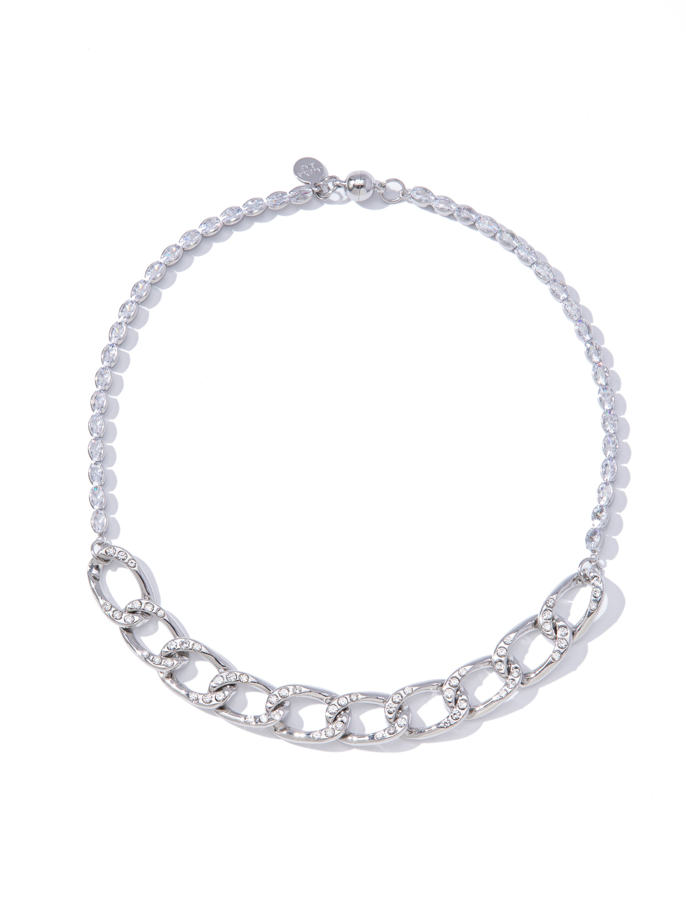 The Billie Jean Necklace is such a vibe. With its gold or silver, color-shifting finish and glam CZ + crystal detailing along the chunky chain, this piece instantly turns any outfit into a statement. It’s surprisingly lightweight, so you get all the drama without the drag, and the magnetic clasp with a 3" extender makes it a breeze to pop on and customize your length. We are fully, completely, absolutely obsessed.