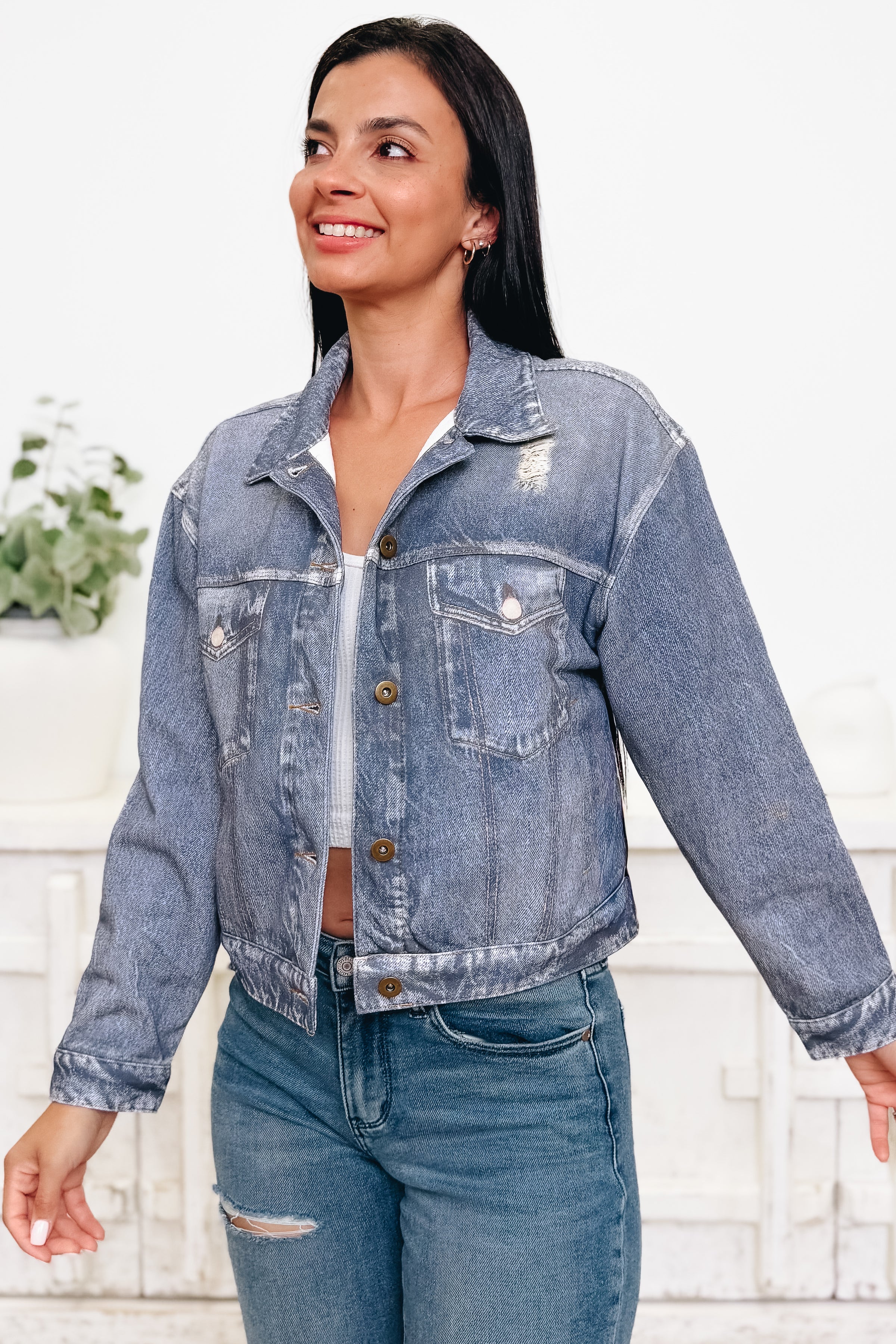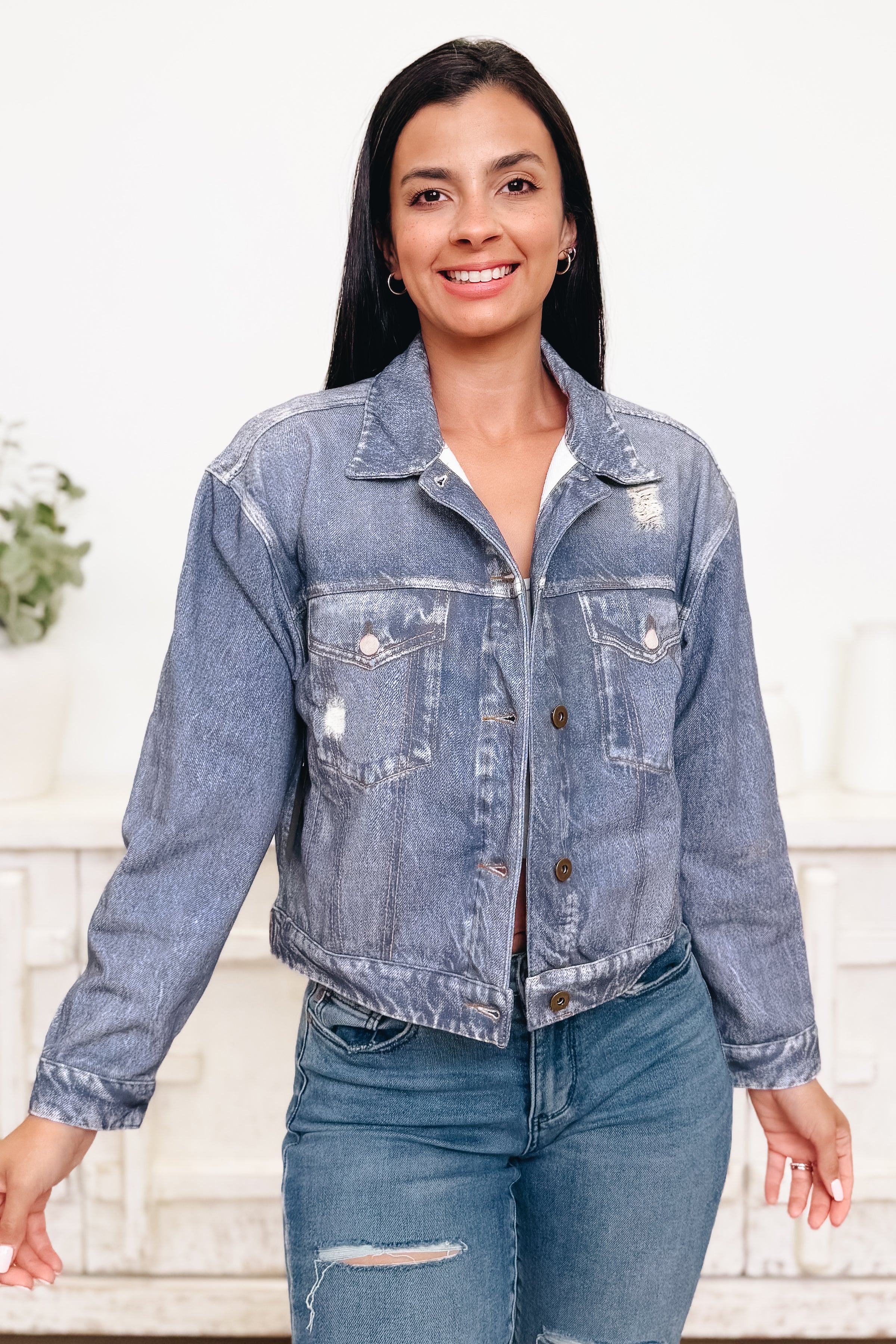 This denim fleece jacket is absolutely adorable! Super lightweight, soft, and fully lined, it gives you all the cozy comfort without the bulk. The wash is perfection with just the right amount of distressing for that trendy, lived-in look. Easy to layer, easy to love — we are completely OBSESSED! 💙✨