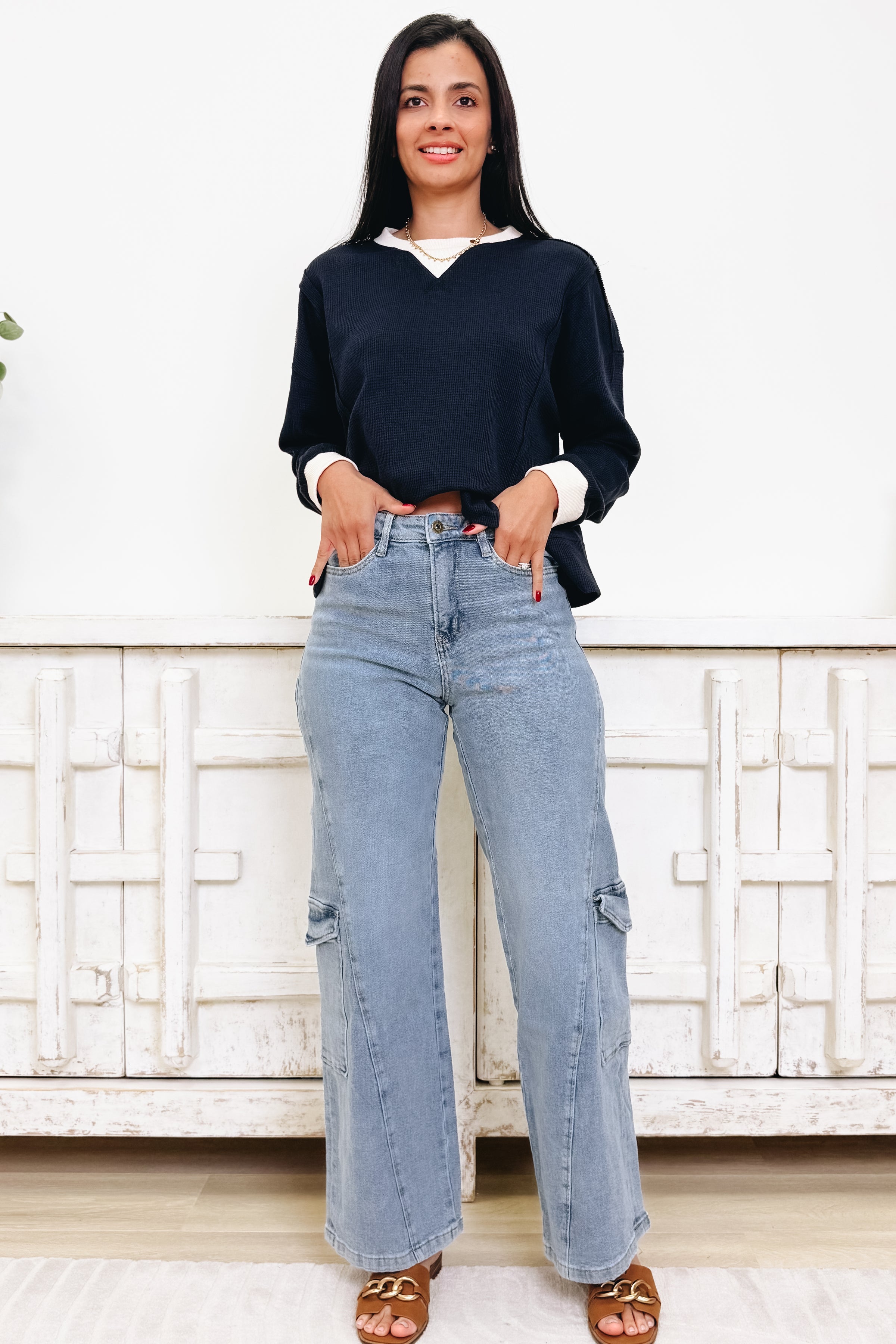 Celebrate With You By Mica - High Rise Wide Leg Cargo Pants - Clean Sapphire