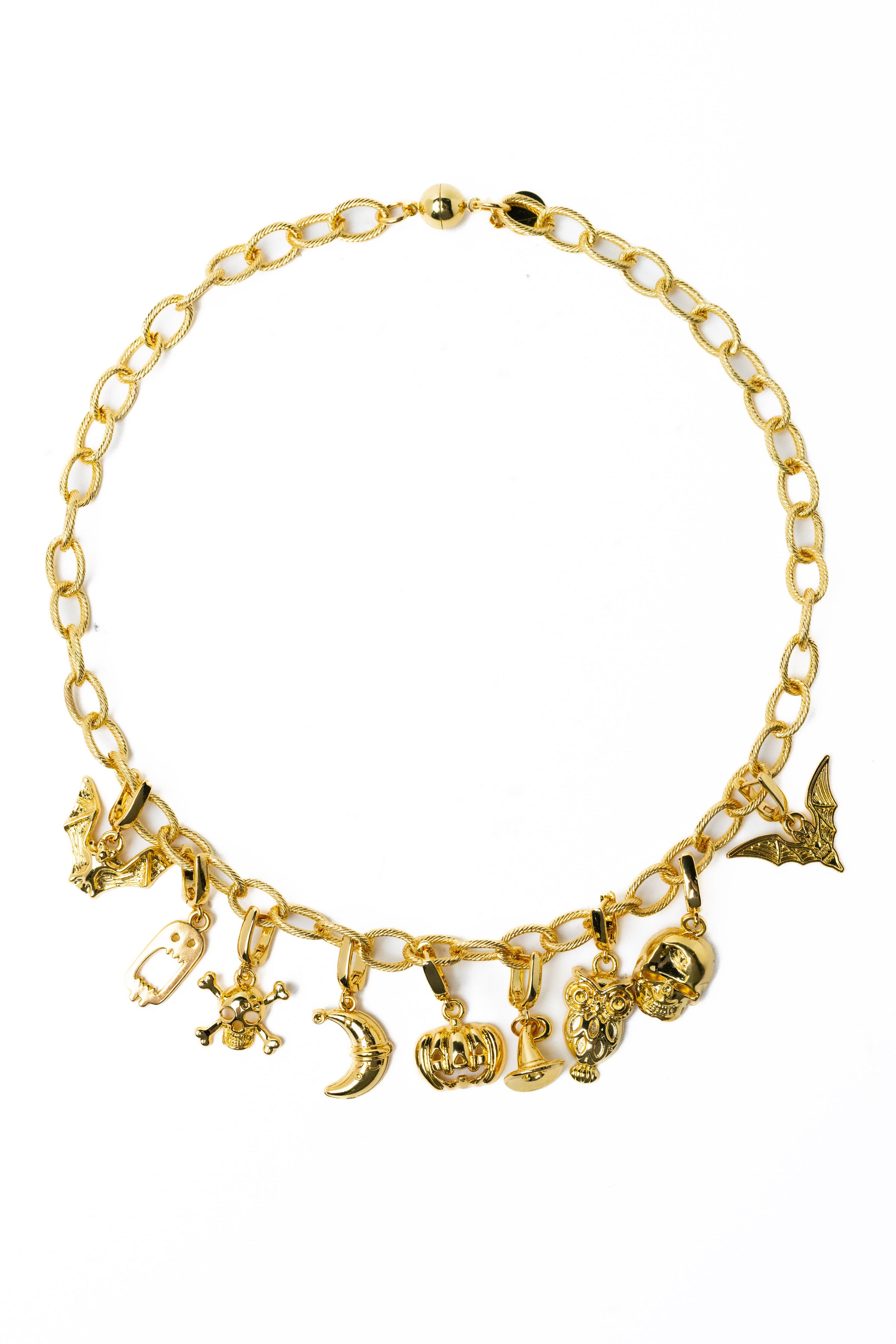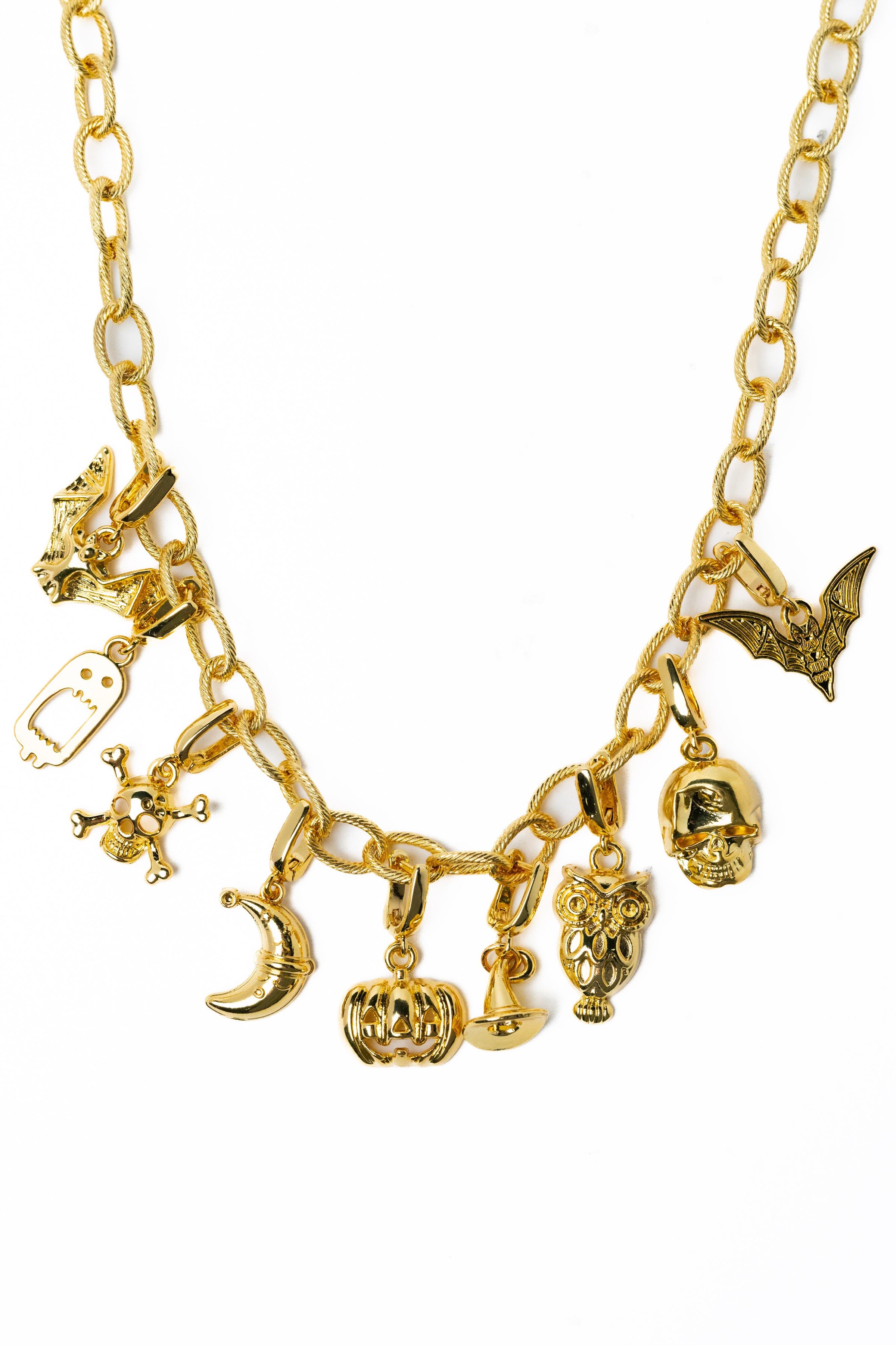 Elevate your style with our Charmed Necklace — the ultimate statement piece for the season. This stunning chain features the cutest spooky pendants (so fun + adorable!) and comes in your choice of luxe gold or silver. Lightweight and comfy, it drapes beautifully for effortless wear. Designed with a magnetic clasp and 3" extender, it gives you the perfect, customizable fit every time. Chic, versatile, and totally season-ready — this necklace is a must-have for your Fall collection.
