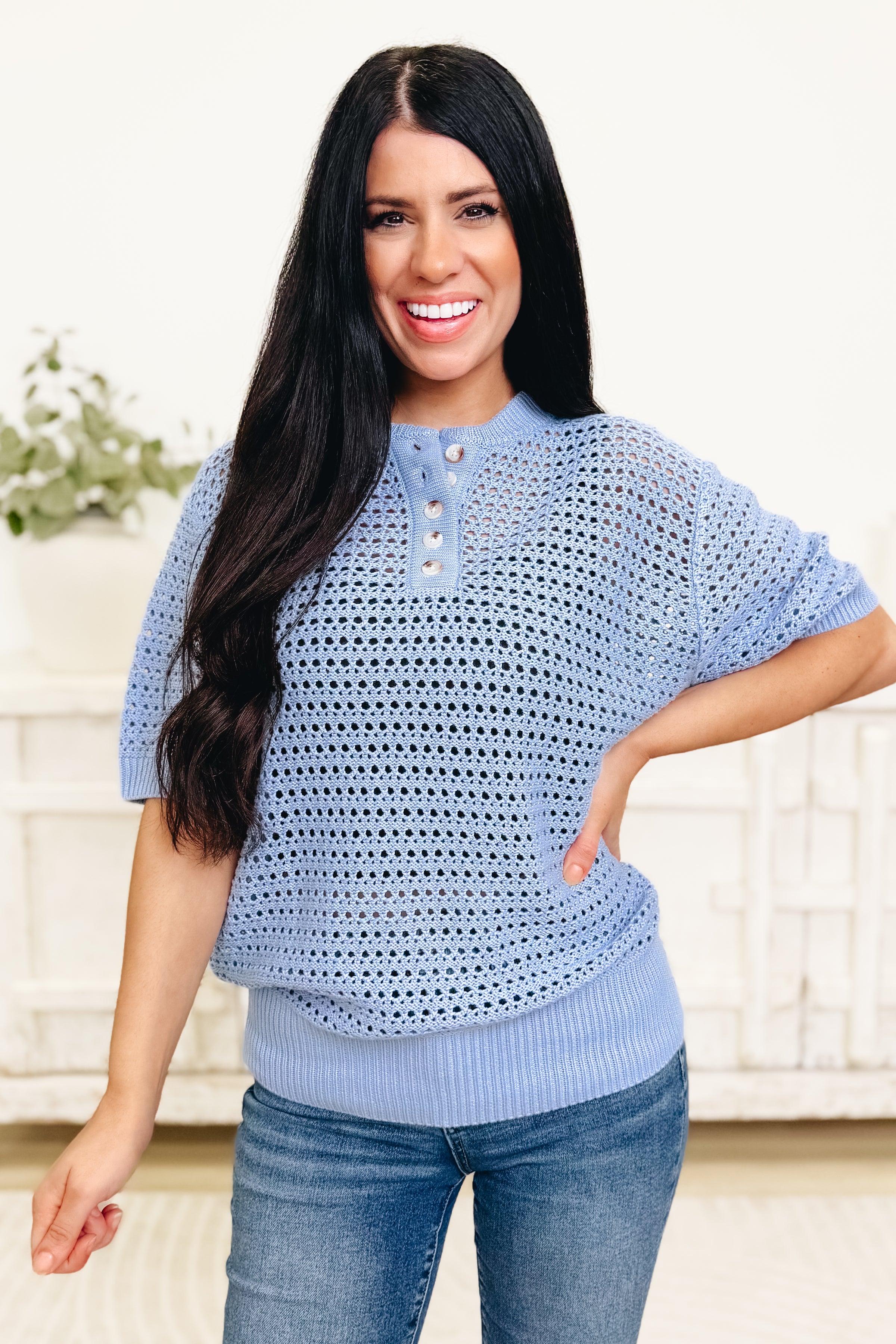 Introducing the Check Your Energy Open Knit Top—your new wardrobe obsession! This lightweight beauty features an open knit design that's breathable and effortlessly chic, while functioning buttons at the neckline let you customize your look. Crafted from super soft fabric in the perfect shade, it's the kind of piece that feels amazing and looks even better. Layer it, tie it, or wear it solo—this top is endlessly versatile and ready to become your go-to for every season!