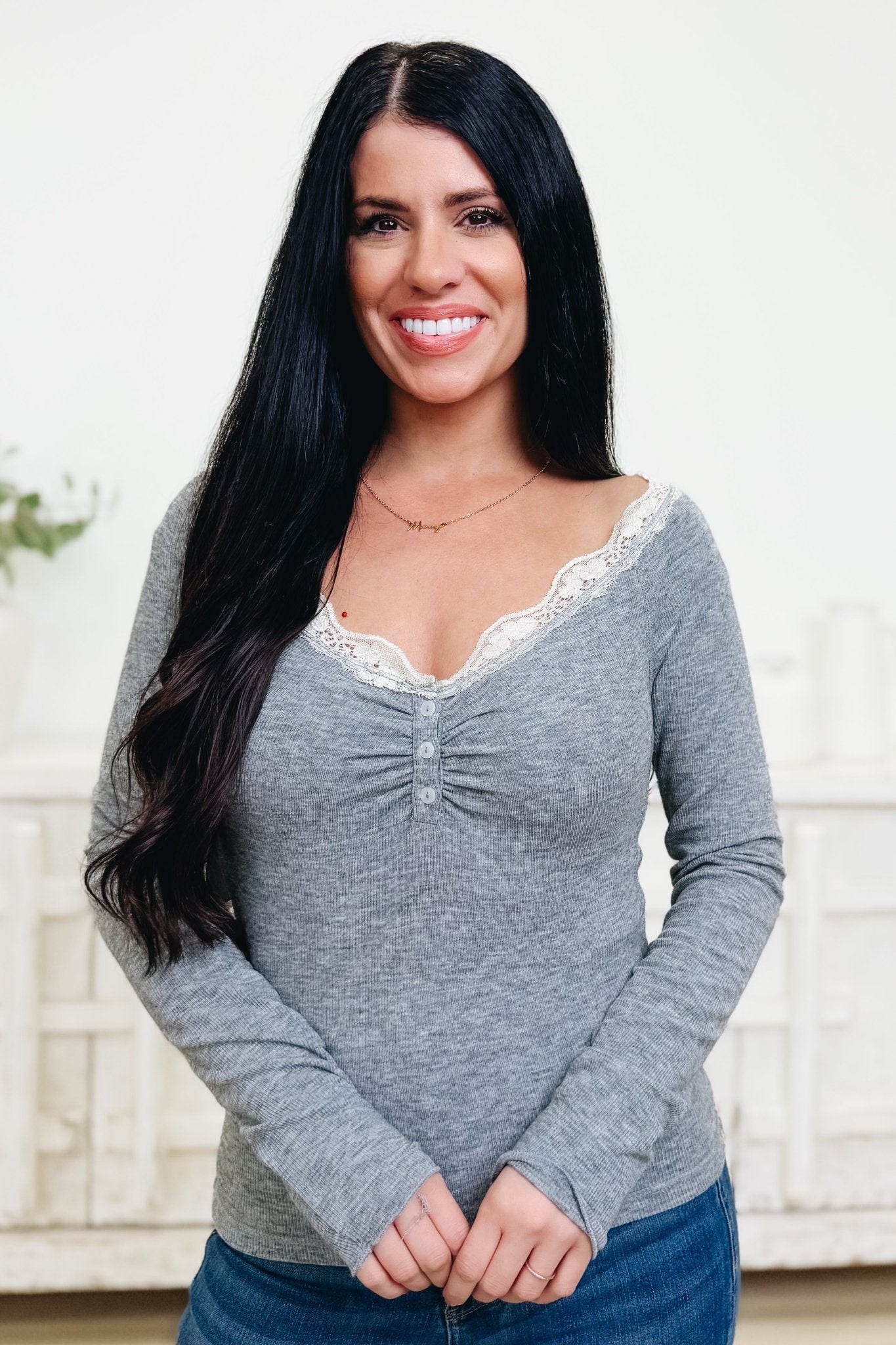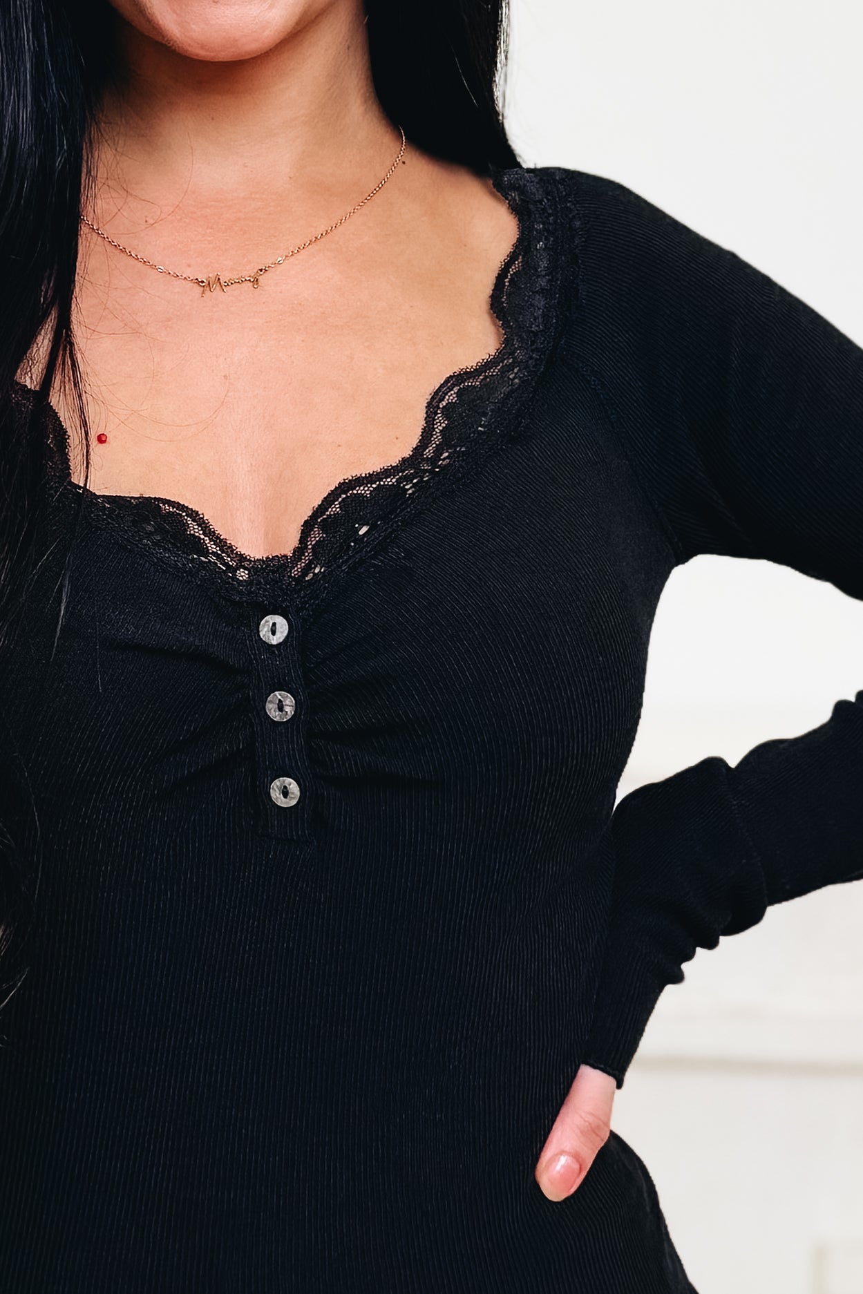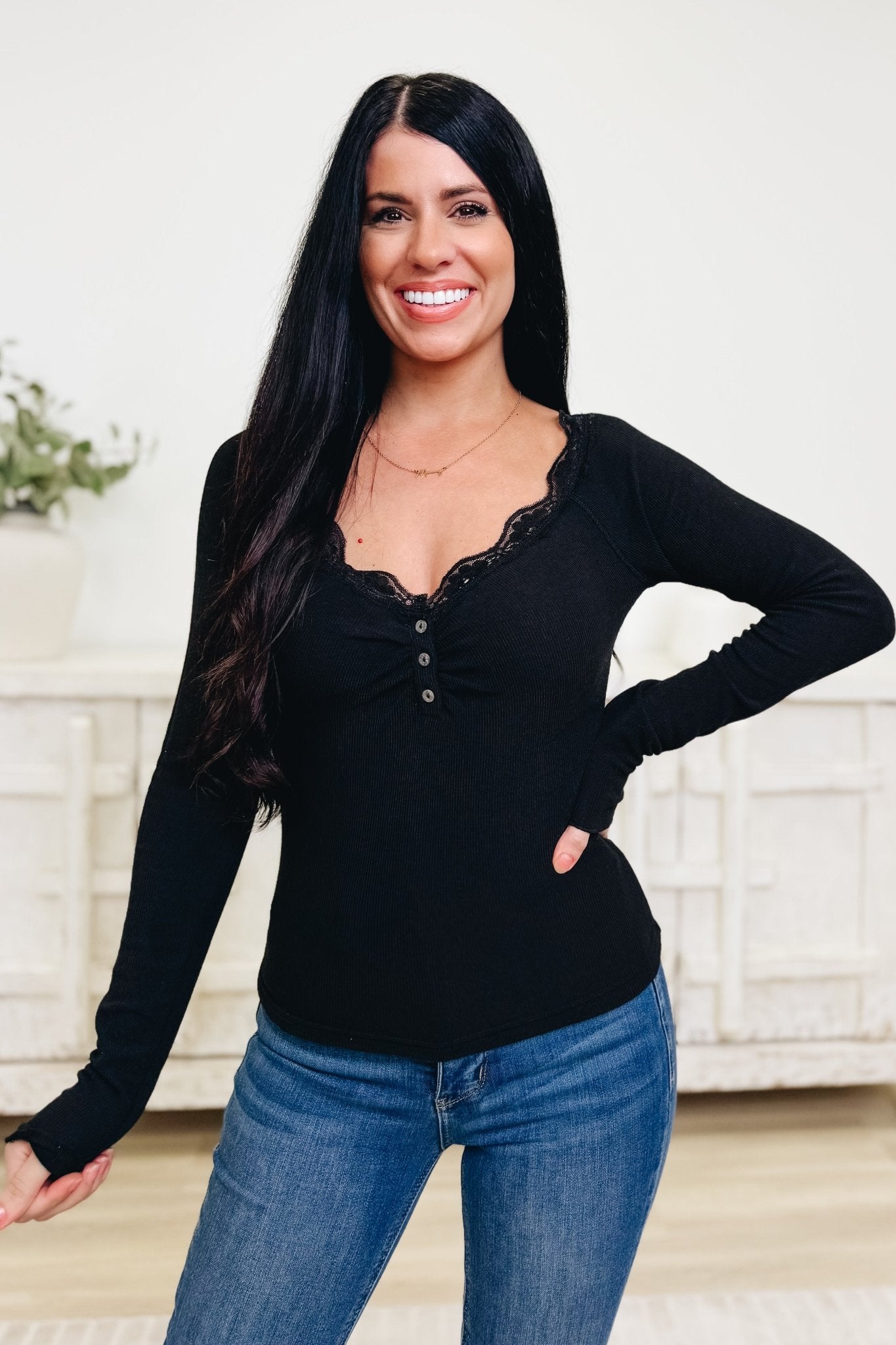 Meet your new wardrobe essential—the Come Back Stronger Top! This adorable basic features a show-stopping lace neckline that flares out with the perfect amount of flair. Functional buttons add both style and practicality, making it effortless to dress up or down. Whether you're layering it or wearing it solo, this chic top delivers that perfect balance of cute and sophisticated. Available in 2 stunning colors, it's the versatile piece you'll reach for again and again. We're absolutely obsessed, and you will be too!