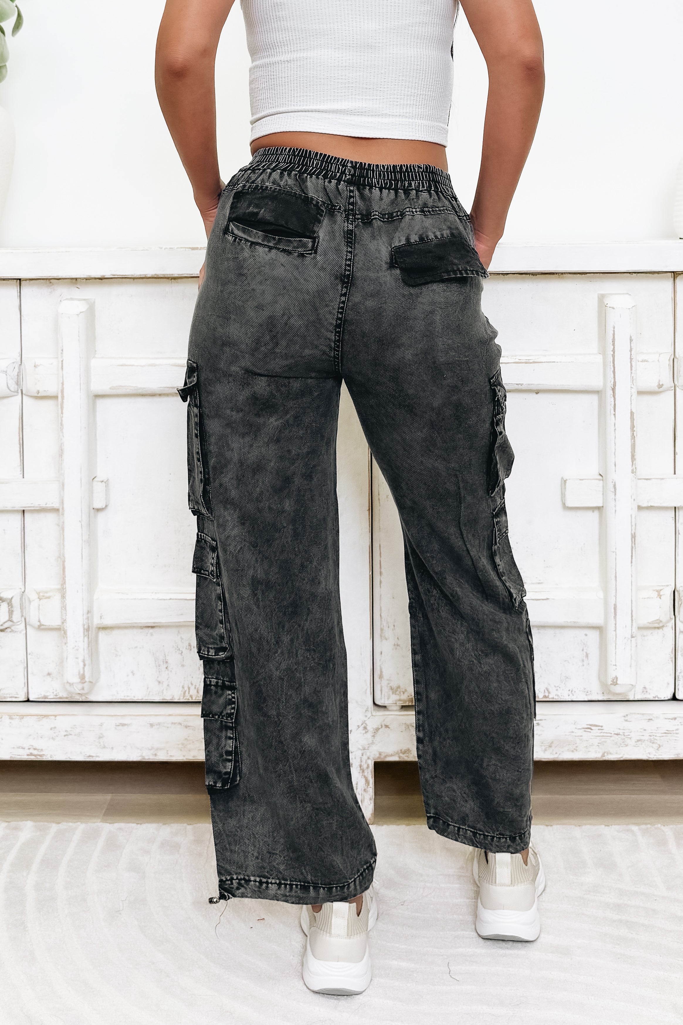 Say hello to your new favorite statement pants! These washed black cargo pants bring all the edgy, laid-back vibes with their wide-leg fit and utility-style pockets. The soft corded texture and stretchy waistband make them just as comfy as they are cool — perfect for pairing with a cropped tank or your favorite graphic tee. Effortlessly chic with a touch of street style, these pants are made for off-duty days and weekend adventures!