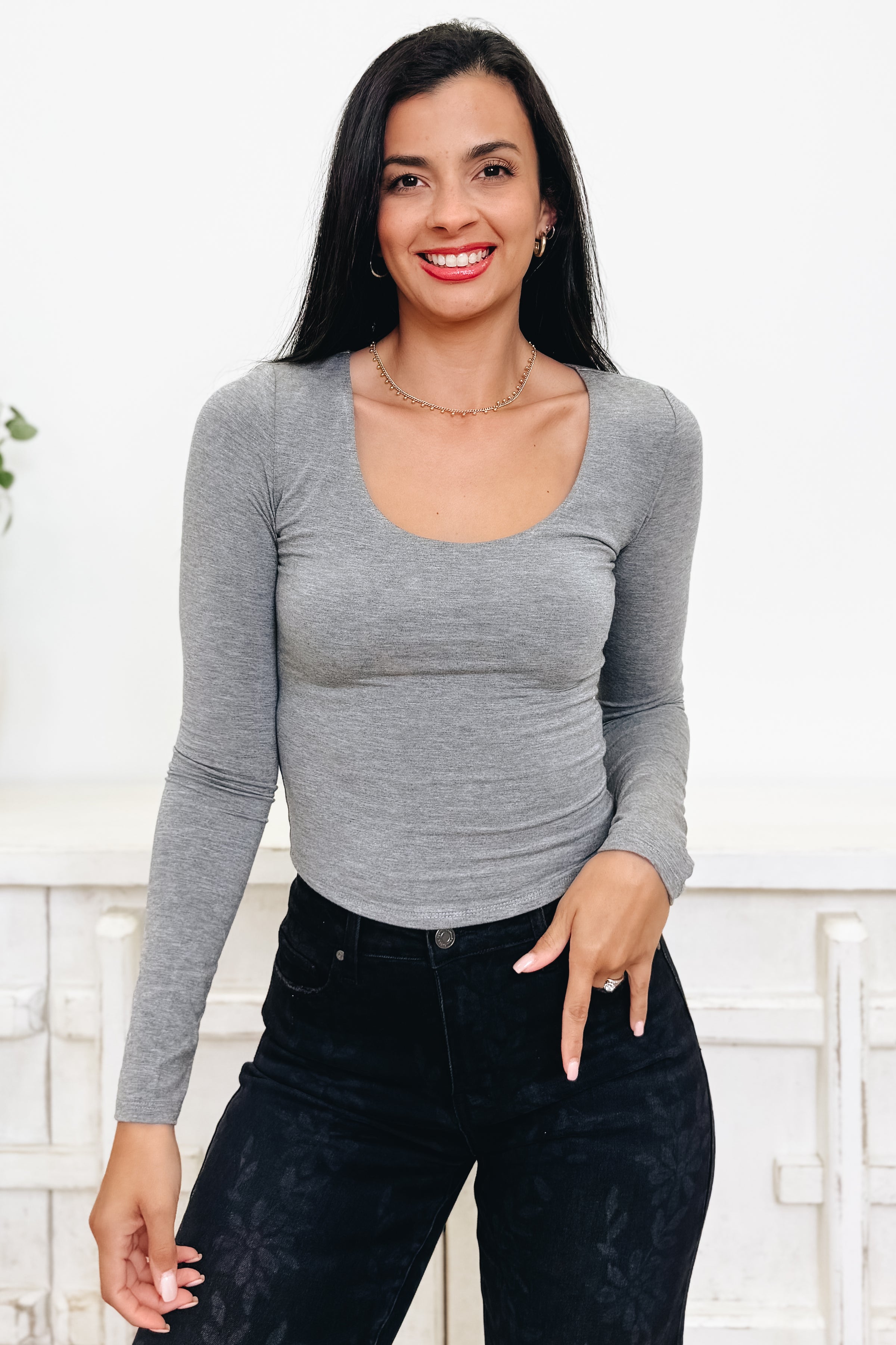Meet your new wardrobe staple! This basic top is a game-changer, crafted from double-lined material for the perfect fit that smooths and holds you in all the right places. Soft, stretchy, and incredibly comfy, it’s the ideal blend of style and ease. With a gorgeous neckline and tons of color options, this top will elevate any outfit, from casual to chic. Trust us, you’ll be obsessed—grab one (or two) while you can!