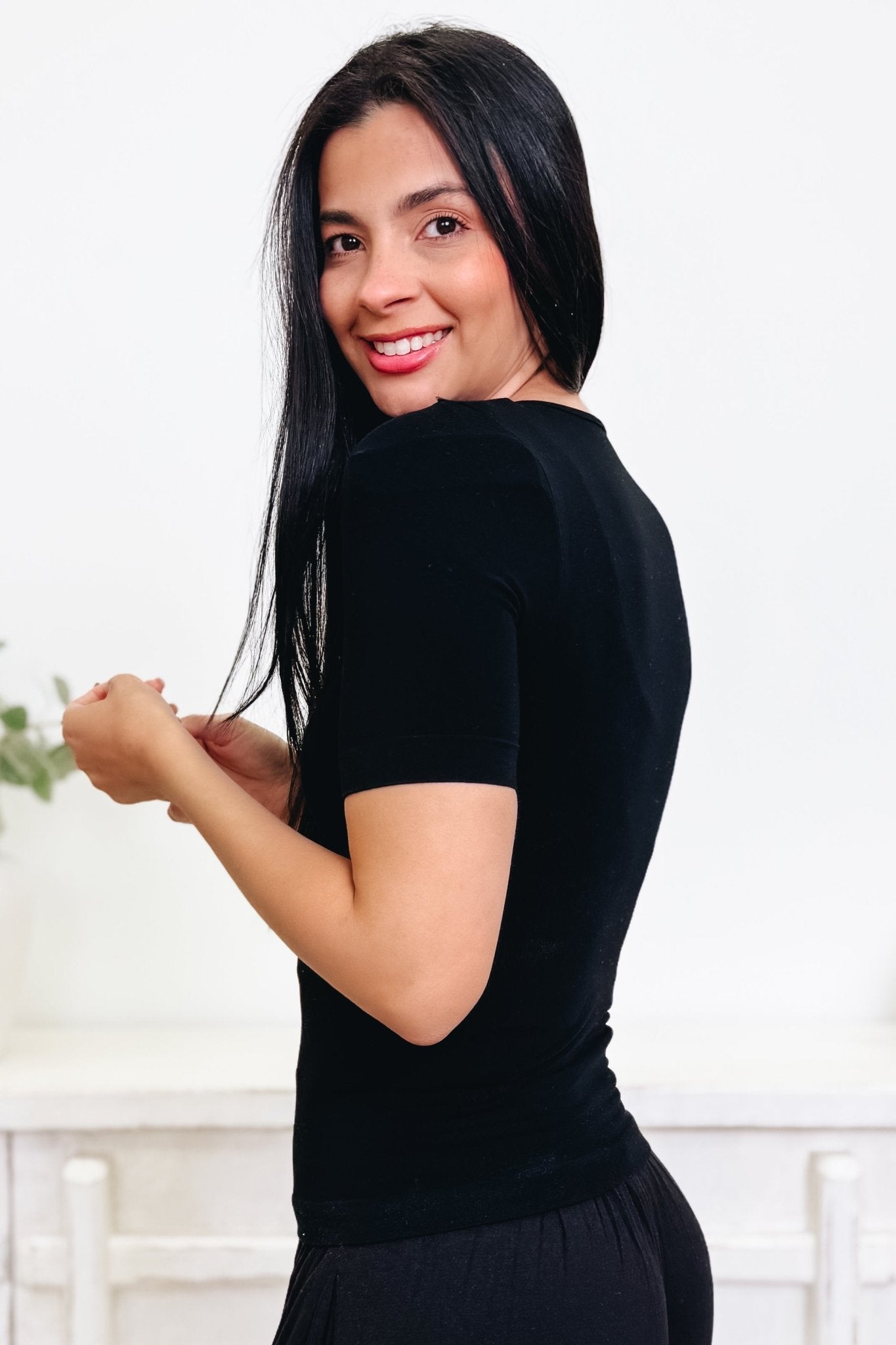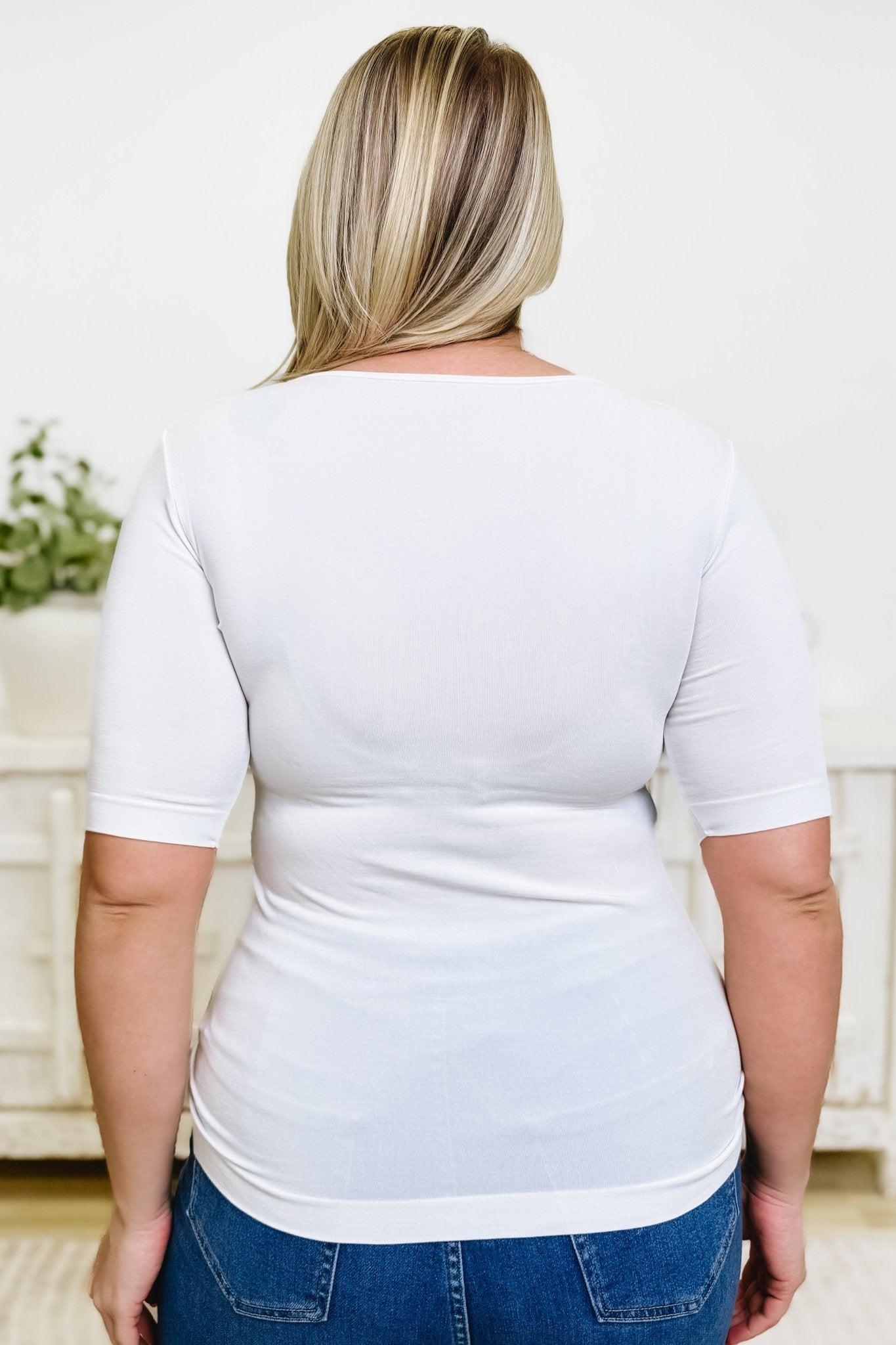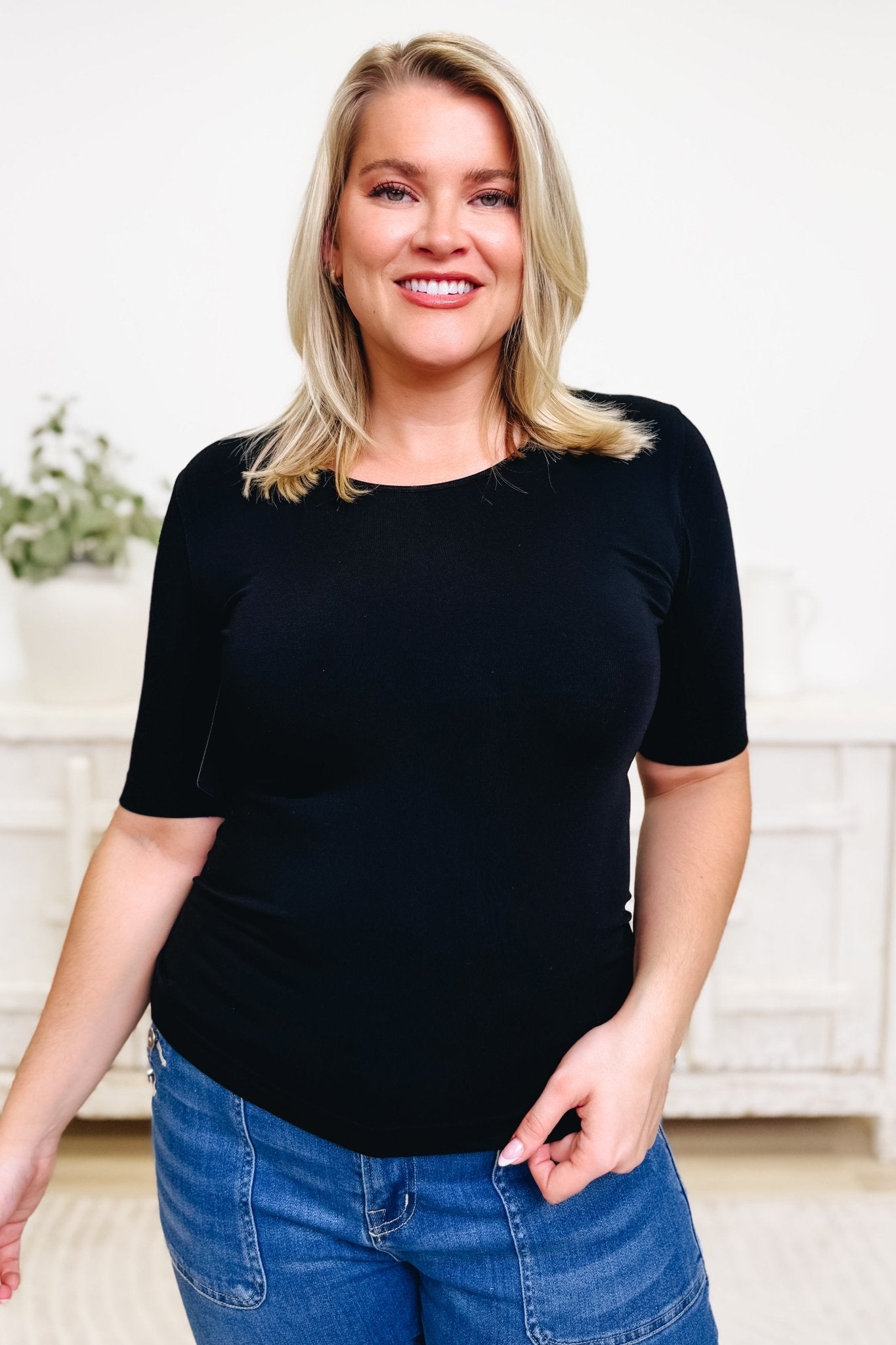 Say hello to your new favorite basic! This elbow sleeve top is designed to be the perfect fit for everyone, no matter your age or style. Featuring a timeless silhouette that transitions seamlessly through every season, it delivers just-right arm coverage with its signature sleeve length. The seamless construction paired with luxuriously soft fabric means you'll reach for this top again and again—because comfort and style should always go hand in hand.