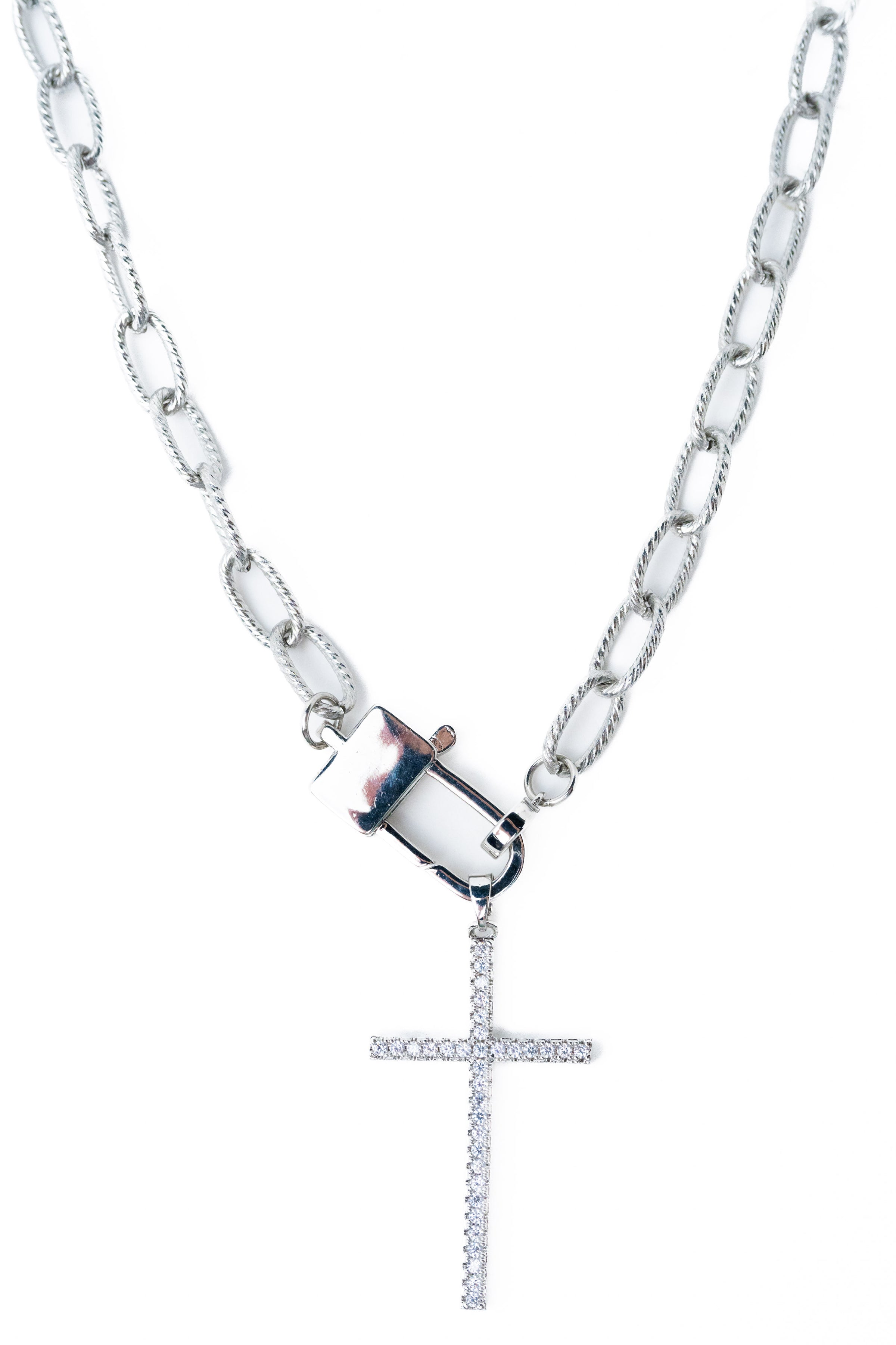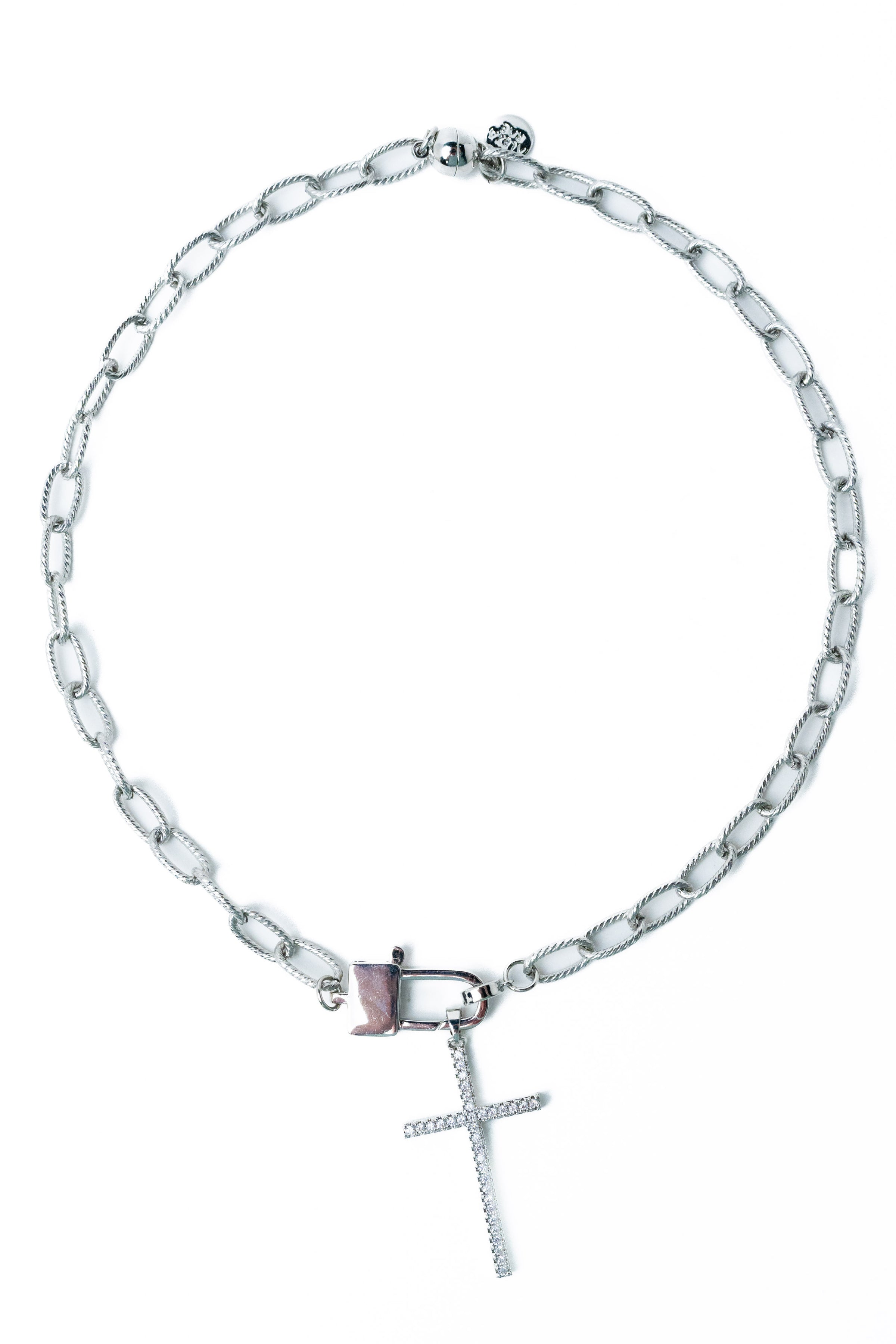 Sleek, radiant, and effortlessly powerful — the Faithlight Necklace is the perfect blend of faith and fashion. This silver-toned beauty features a shimmering crystal cross charm suspended from a bold chain-link design, giving it that modern edge you’ll love. The magnetic clasp with a 3" extender makes it easy to wear and adjust for your perfect fit. Whether worn solo or layered with your favorites, this piece shines with timeless grace and undeniable style.