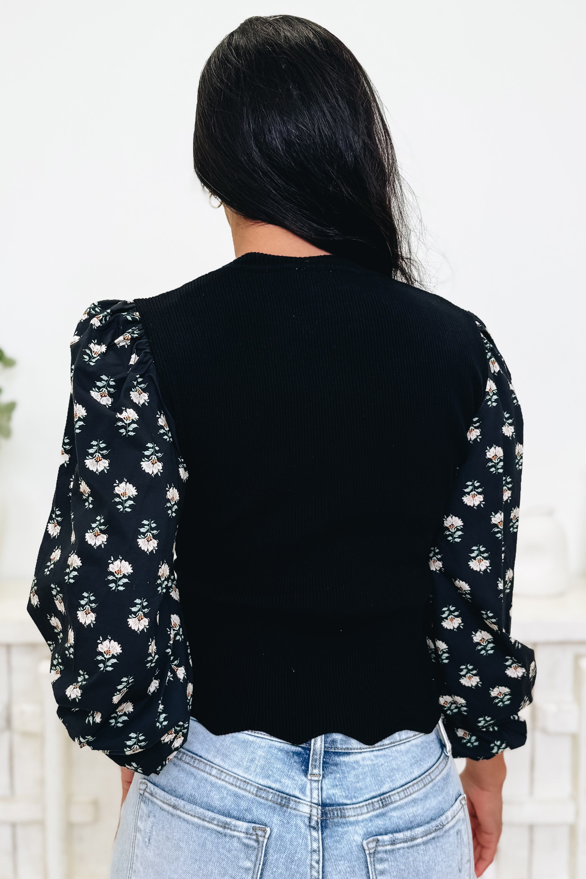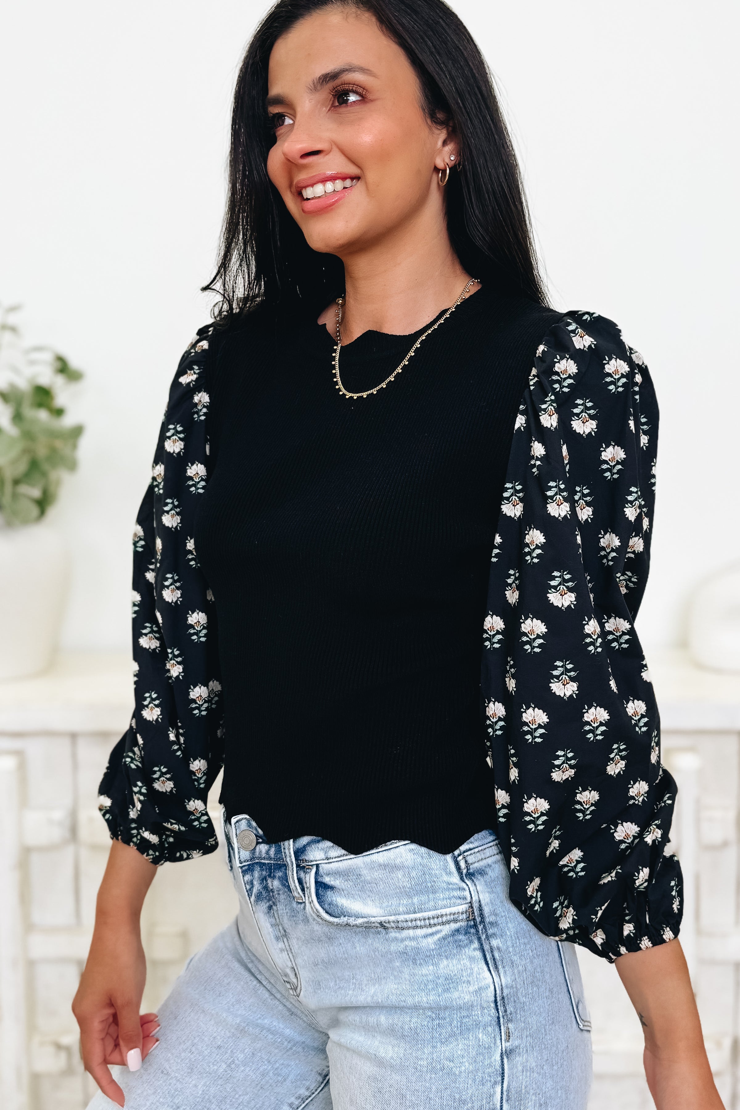 This top is absolutely adorable and sweet! Featuring the perfect floral sleeves, a flattering cut, and charming scalloped detailing, it’s effortlessly feminine and totally chic. Soft, stylish, and versatile—we are completely OBSESSED!