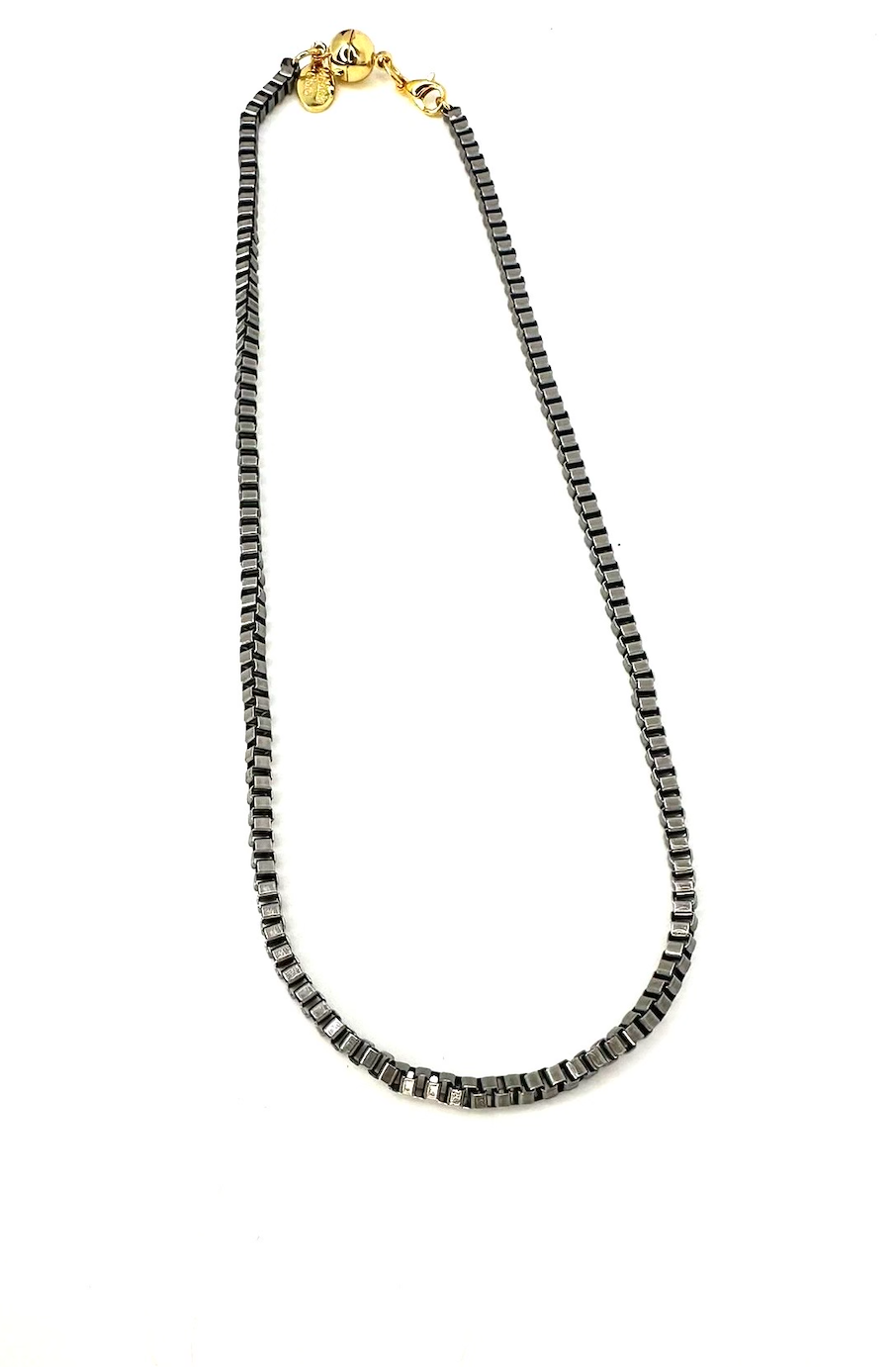 Our elevated Freestyle necklace, a truly stunning piece that will leave you mesmerized. Its liquid metallic moonstone coloring adds a touch of elegance and sophistication to any outfit. Crafted very lightweight, this necklace is comfortable to wear all day long without compromising on style. Its shiny finish catches the light beautifully, making you the center of attention wherever you go. The magnetic closure with a 3" extender ensures a secure fit and allows you to adjust the length according to your preference. Perfect for everyday wear, this necklace effortlessly enhances any look with its timeless charm.