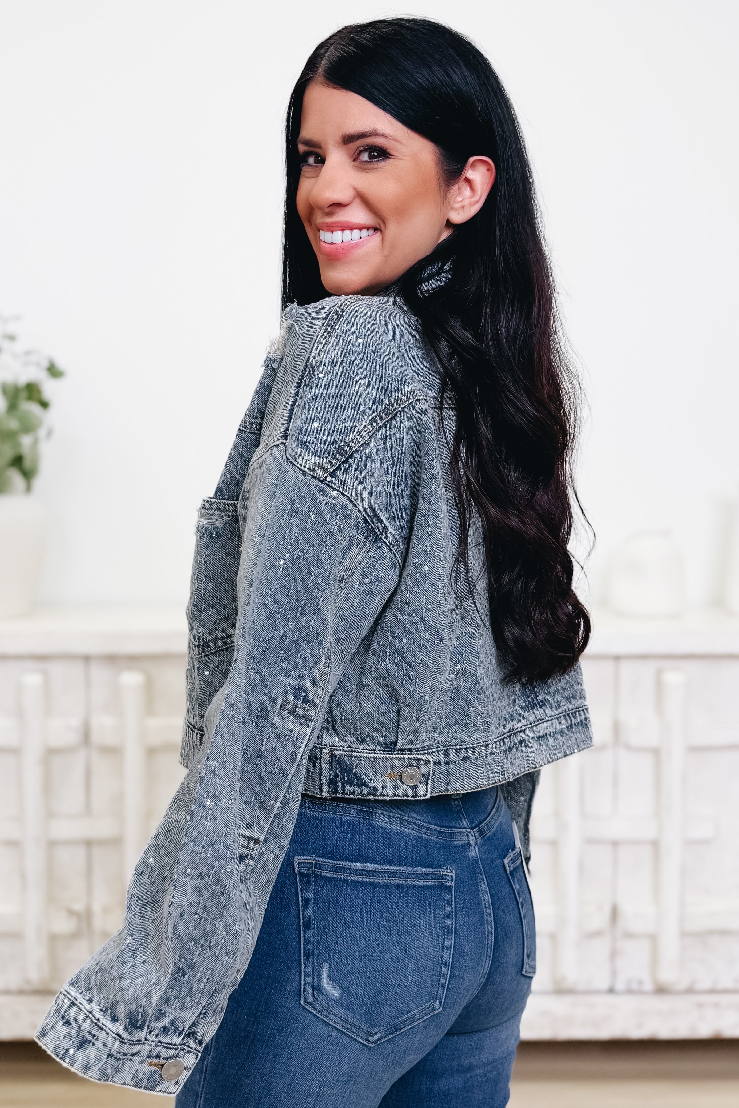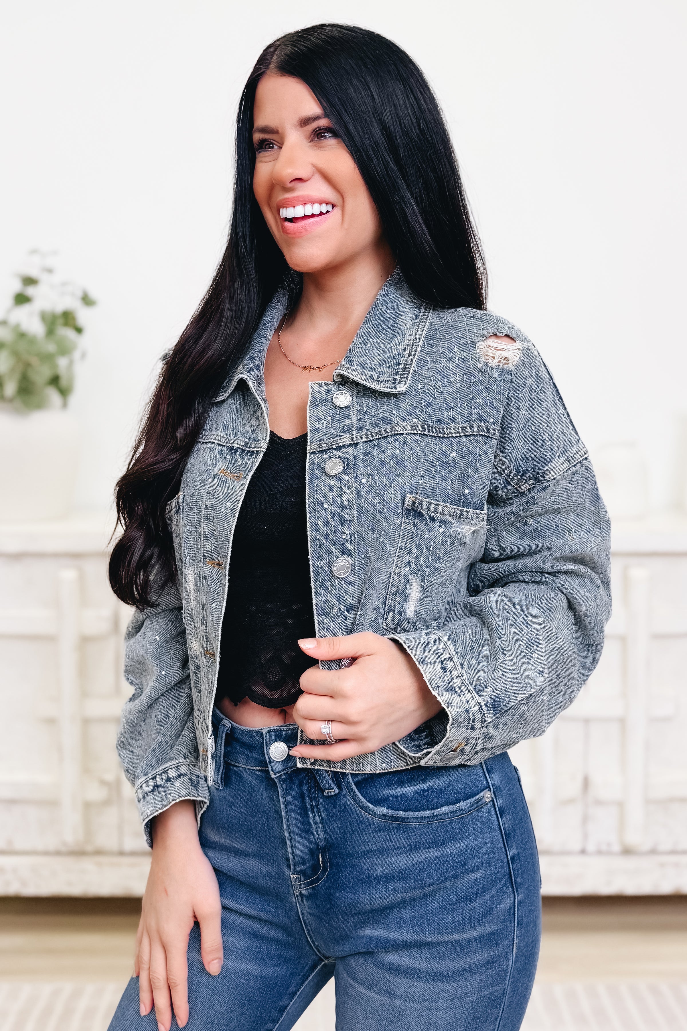 Say hello to your new “throw it on and look instantly cool” jacket! This denim cutie brings all the edge with a lived-in wash, light distressing, and a perfectly broken-in vibe. It features a classic collar, functional button front, chest pockets, and an easy, slightly boxy fit that hits just right at the waist. Toss it over dresses, tanks, or sweaters — this one’s a year-round fave that takes every outfit up a notch.