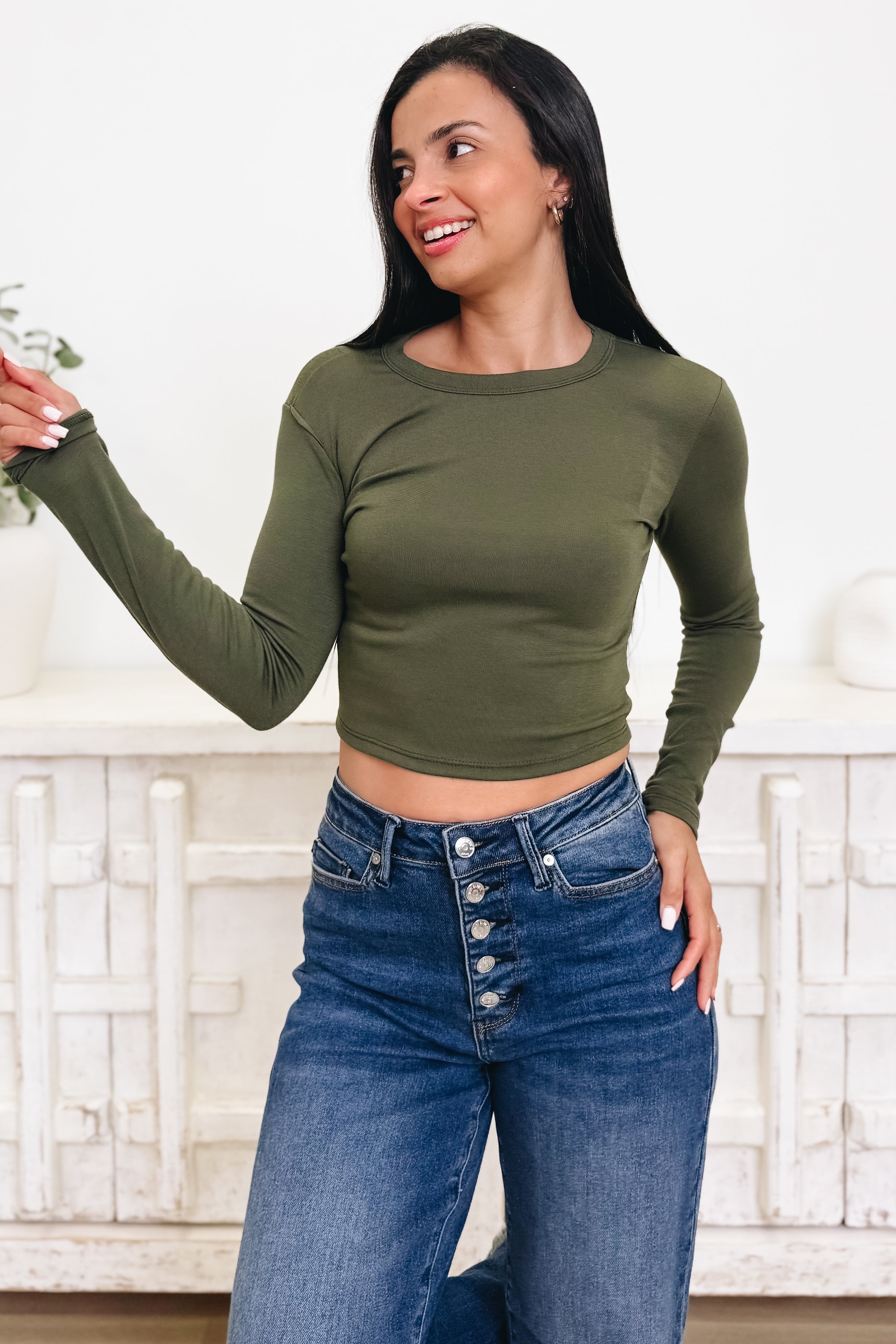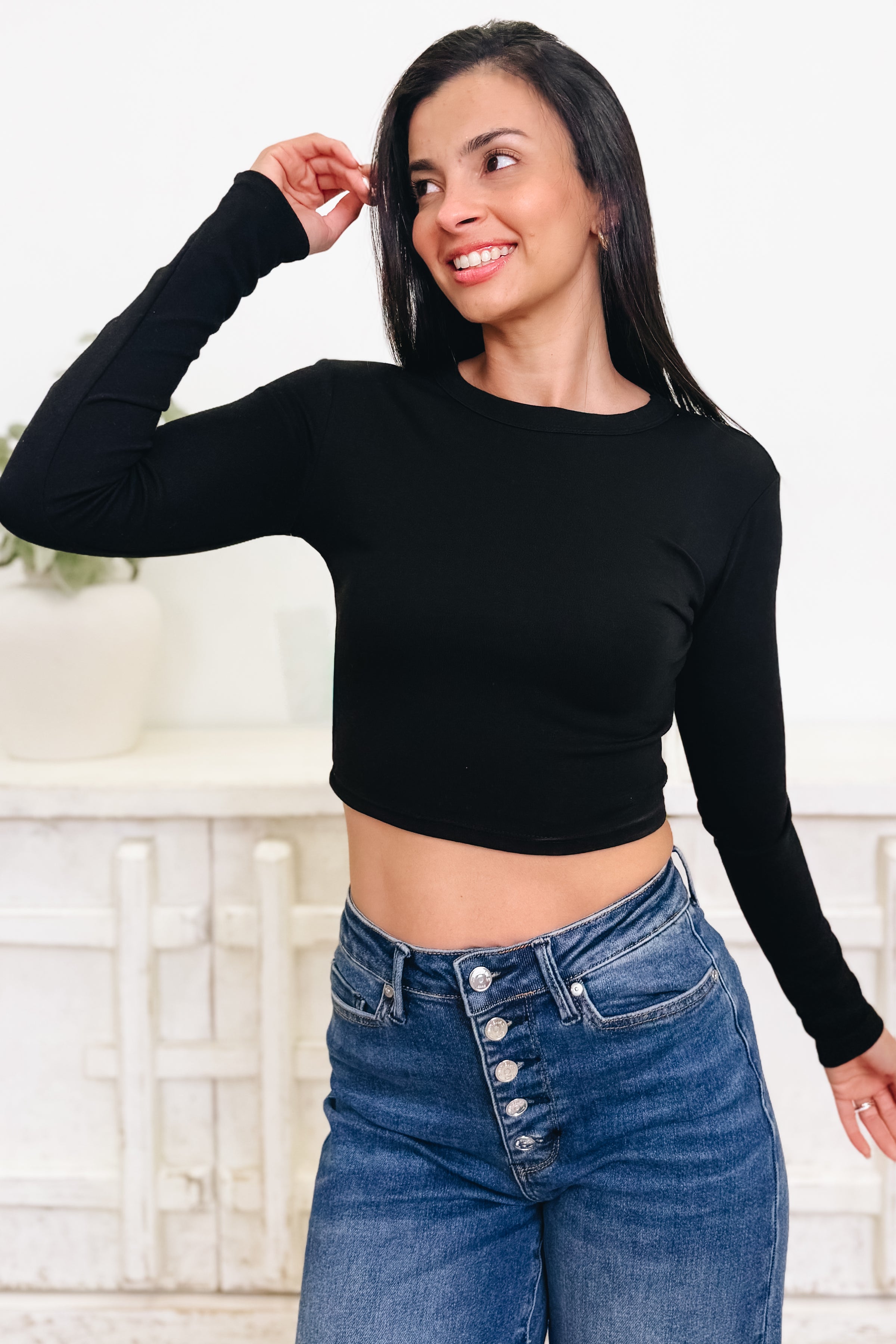 This long-sleeve top is the ultimate sleek basic you’ll wear a million ways, with a smooth, fitted feel that’s flattering without being restrictive. The classic crew neckline keeps it timeless, the stretchy fabric makes it super comfy for all-day wear, and the clean, minimal vibe means it layers like a dream under jackets, shackets, and cardis. Simple, polished, and totally essential.