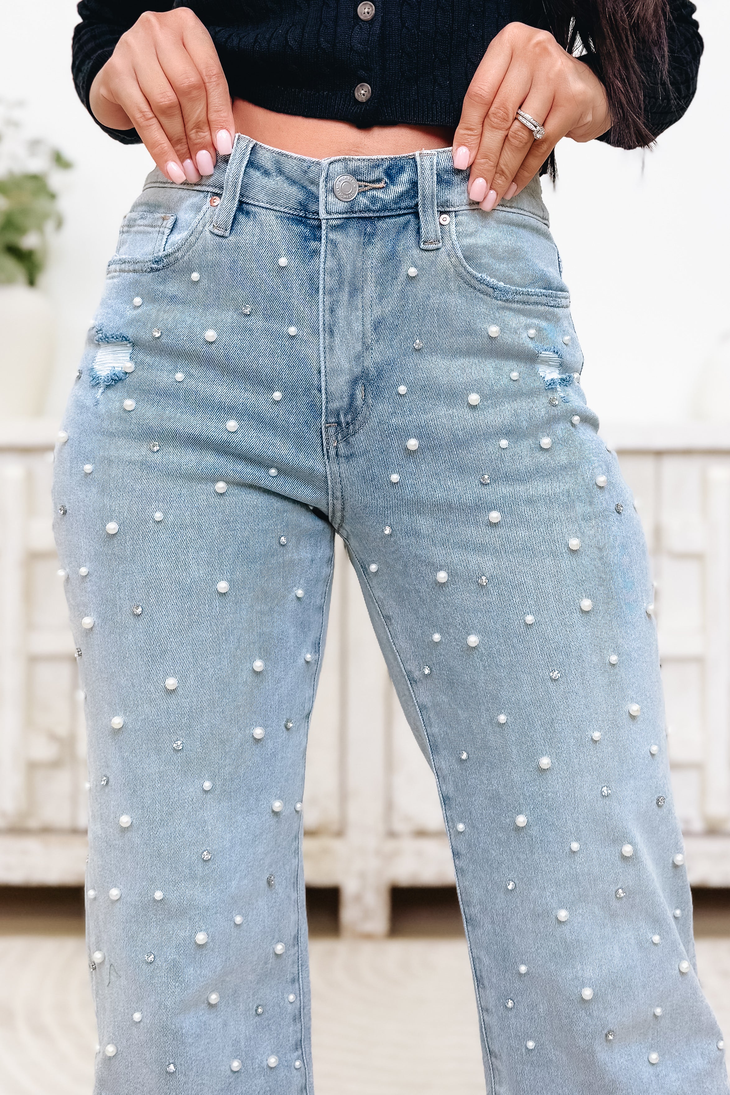 Pearls + denim = total dream combo!  These statement jeans bring major chic energy with pearl embellishments all over that add the perfect touch of glam. The flattering high-rise fit and straight-leg style make them as comfy as they are cute. Dress them up with heels or keep it casual with sneakers — either way, you’ll be shining in style! ✨