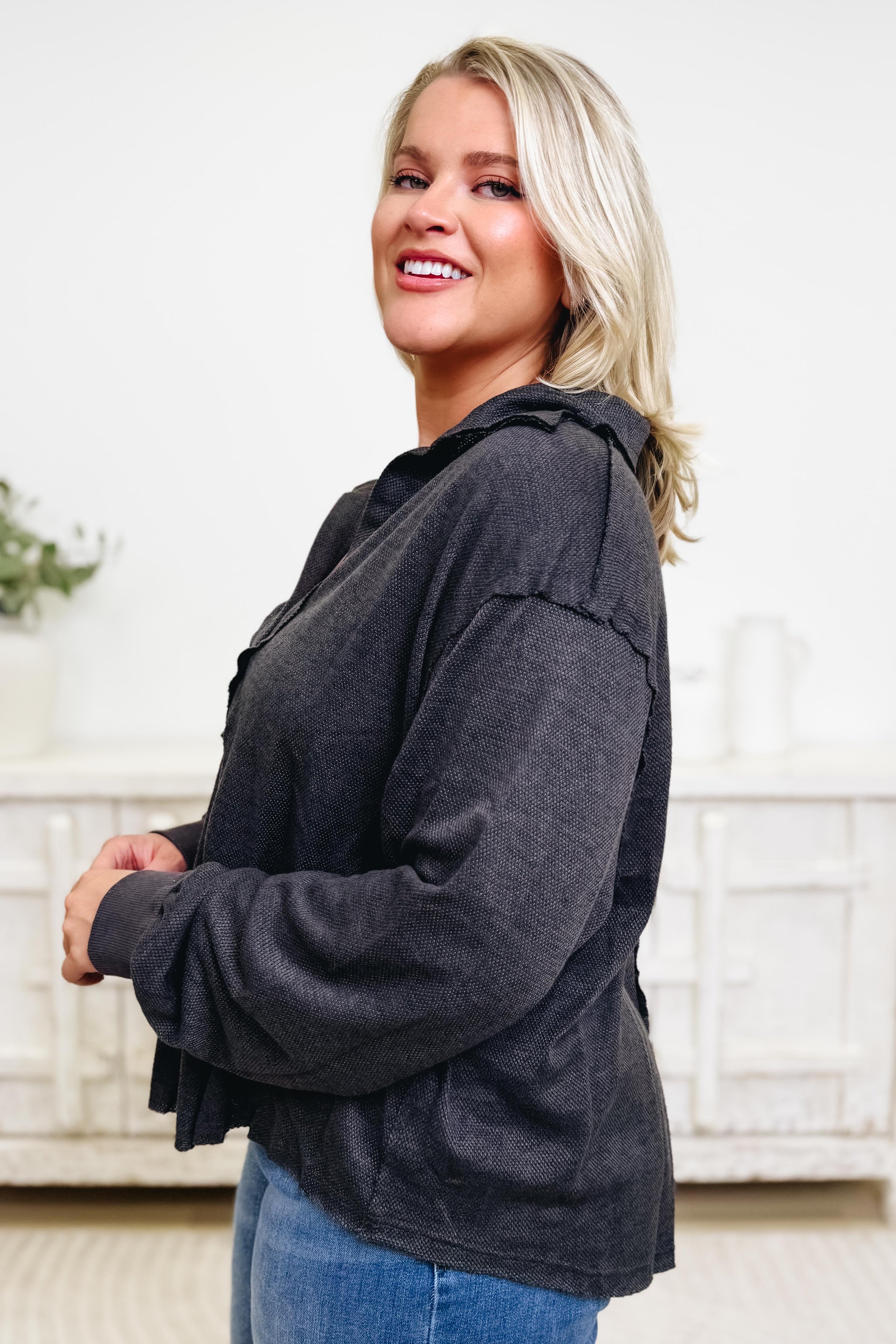 The Have It Your Way Top is your new go-to for effortless style. Featuring a chic collar and flattering open V neckline, this piece flows beautifully with just the right amount of stretch for all-day comfort. The ultra-soft fabric drapes like a dream, making it equally perfect for dressing up with tailored pants or keeping it casual with your favorite jeans. Versatile, comfortable, and undeniably stylish—this top does it all.