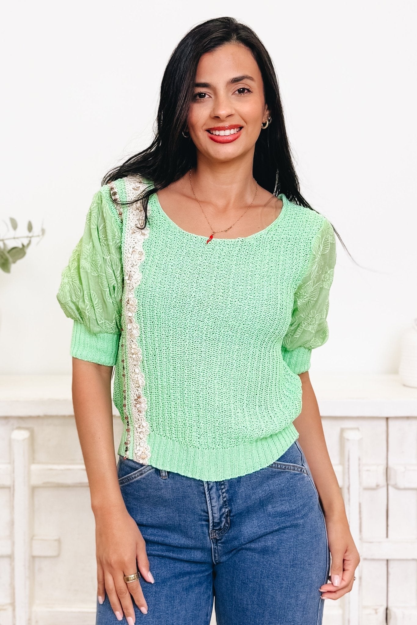 This adorable sweater is everything you need to level up your wardrobe! Featuring eye-catching shell and rock detailing that makes a statement, it's the perfect blend of style and comfort. The soft, stretchy fabric moves with you all day, while the vibrant color options let you express your unique vibe. Whether you're keeping it casual or dressing it up, this top delivers personality and pizzazz in every wear. Get ready to shine!