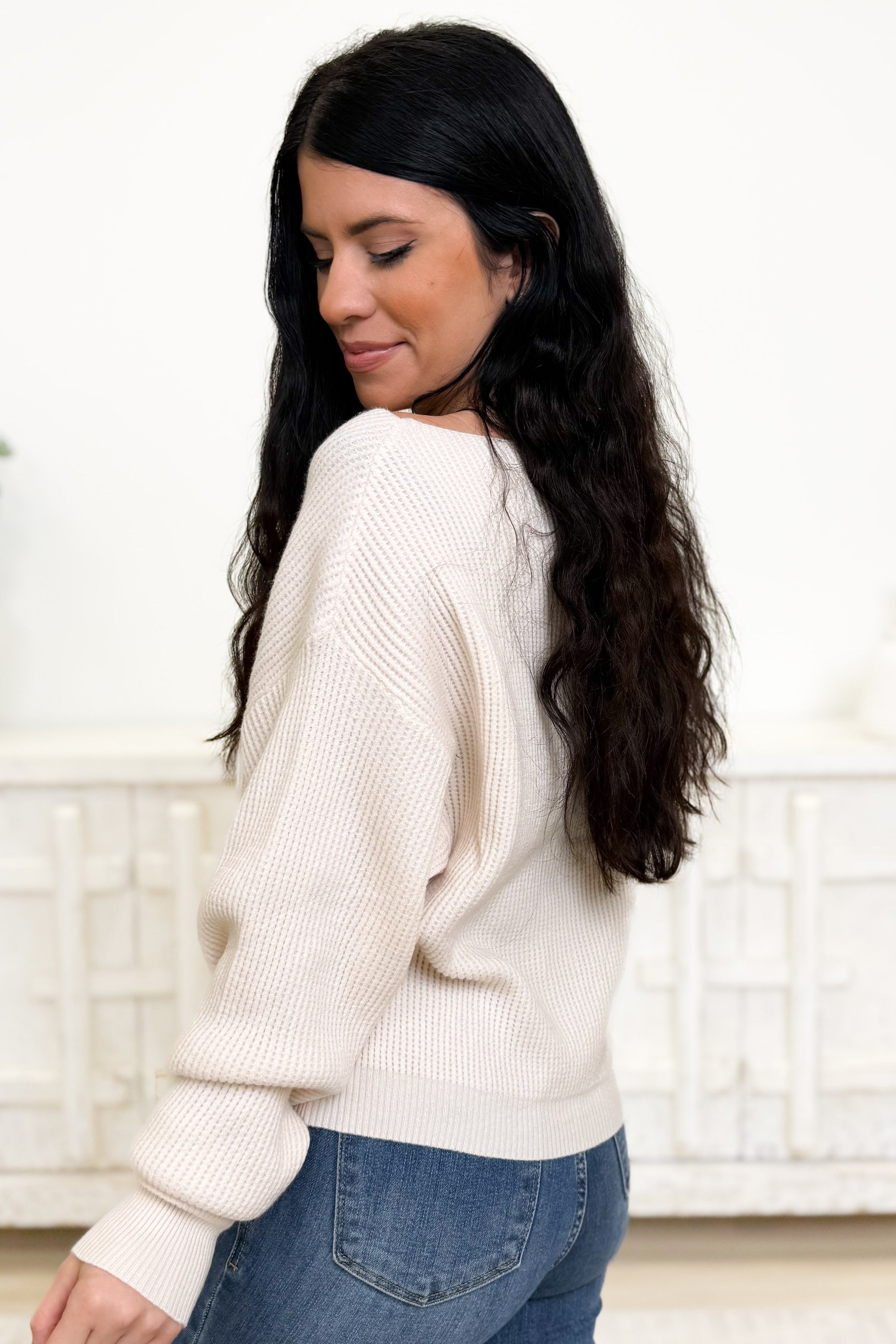 Fit: True to size, you can size down 1 for a more fitted sweater.