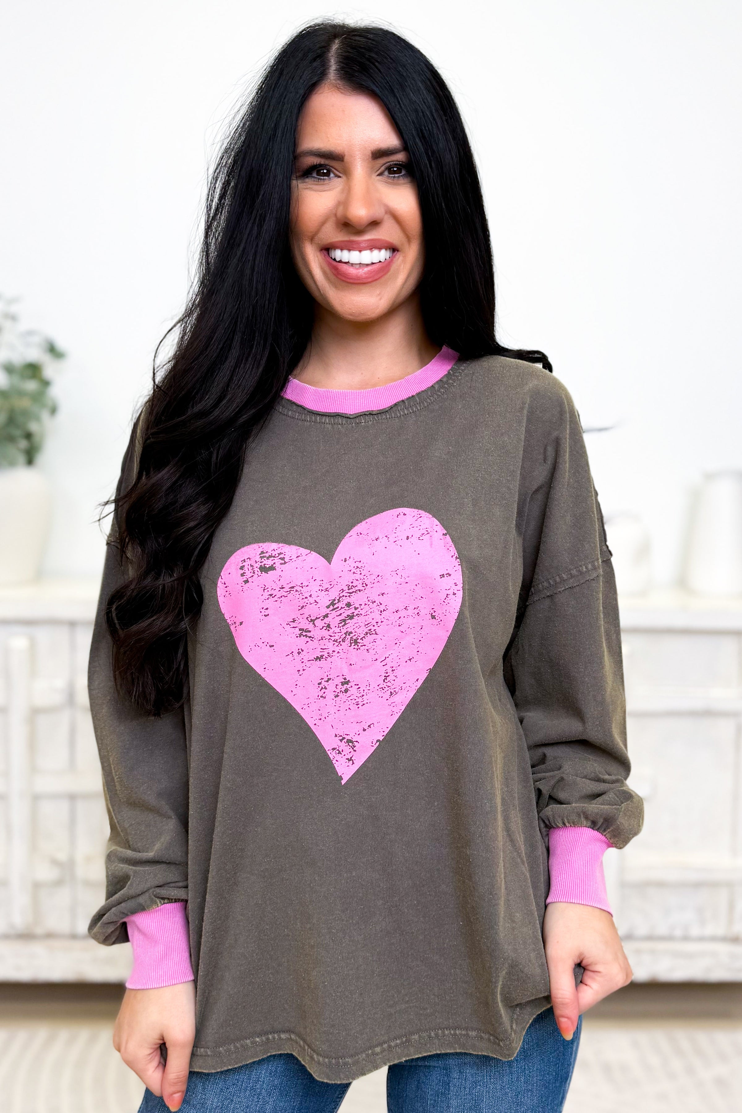 All the heart eyes for this one! This long-sleeve top brings the perfect mix of cute and comfy with its bold pink heart graphic and fun contrast cuffs and neckline. The mineral-wash finish gives it that laid-back, lived-in vibe you’ll love, while the relaxed fit makes it an easy grab for any day. Pair it with denim or leggings for a look that’s casual, cozy, and full of love! 💕