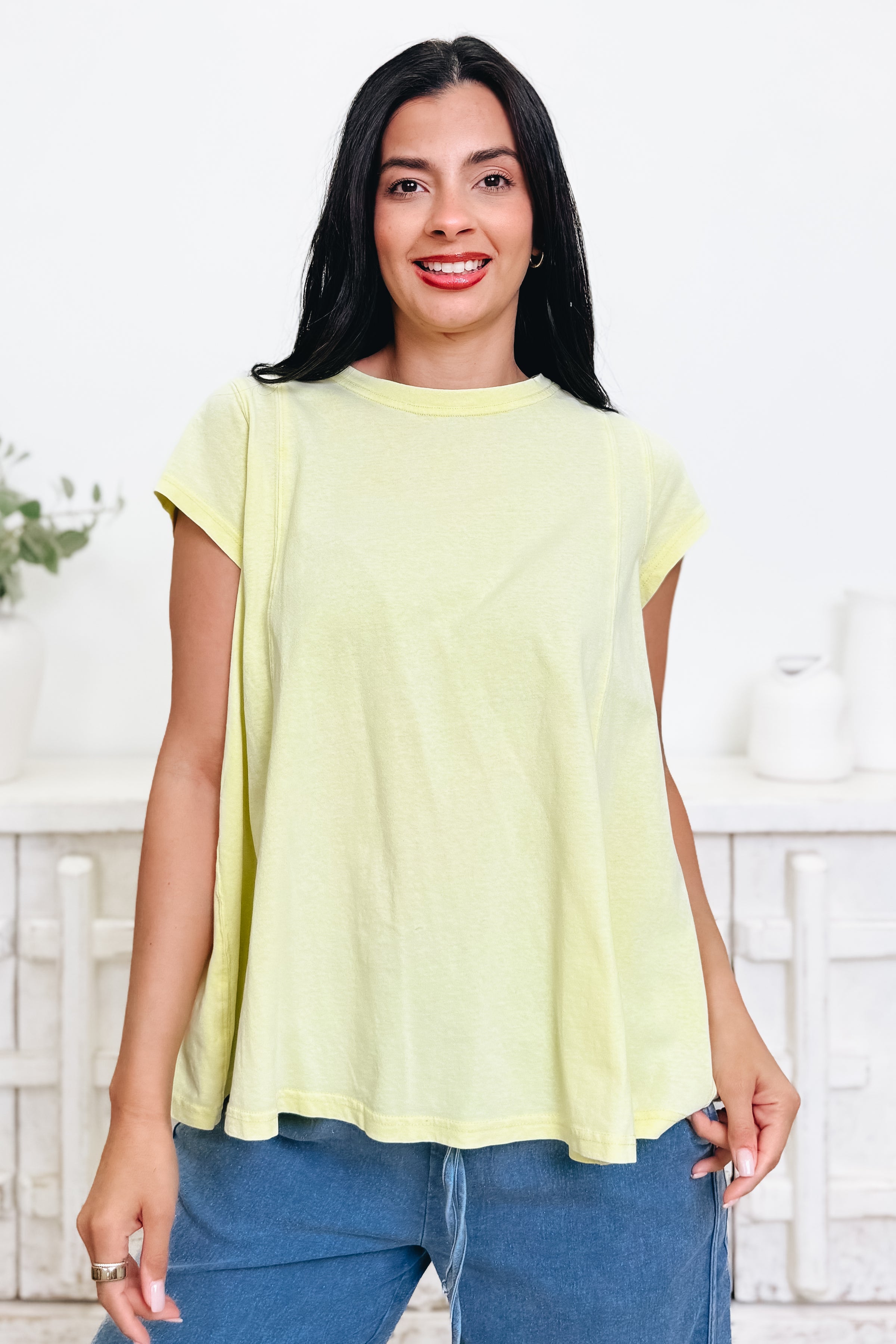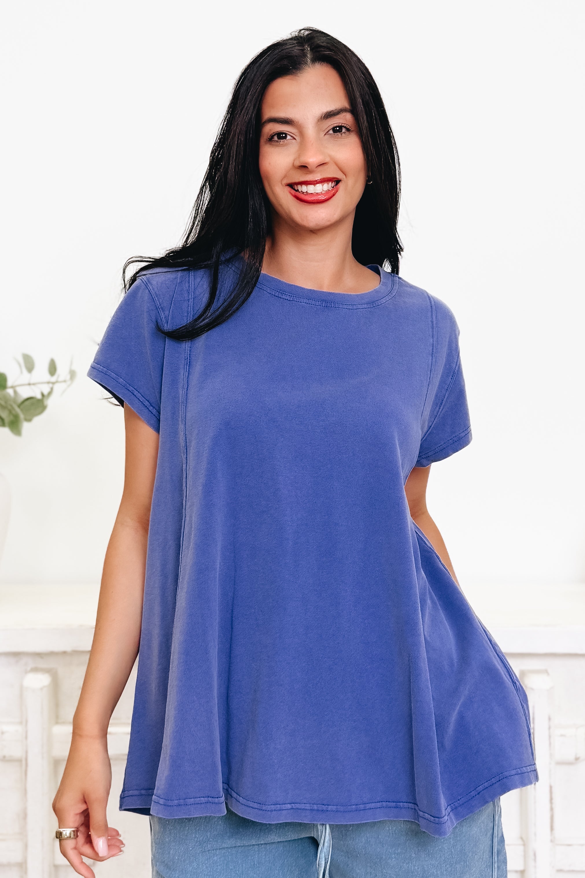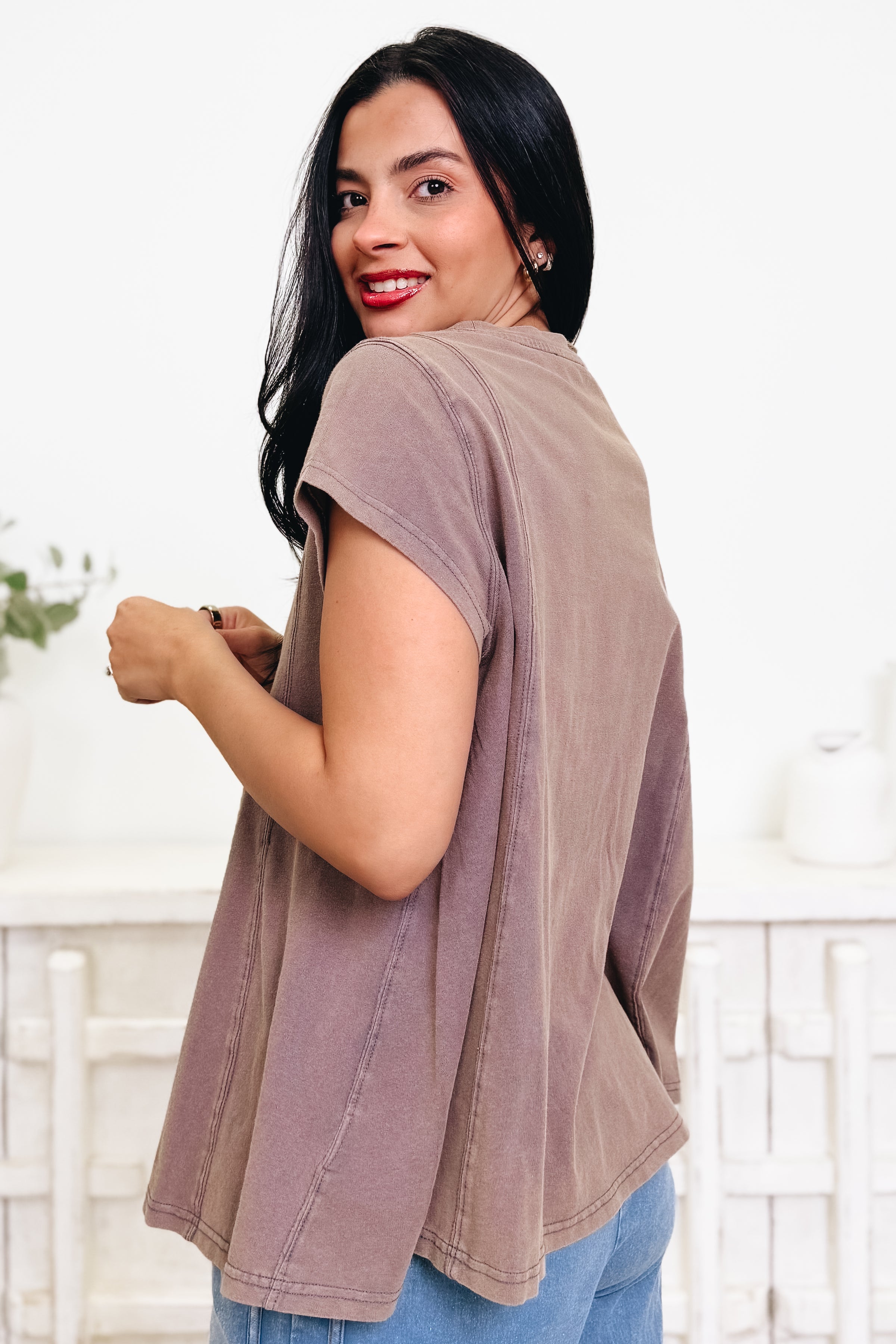 This perfect basic top is one you’ll reach for again and again! It has the most beautiful flow that drapes so effortlessly, giving it that relaxed, easy fit we all love. The colors are absolutely gorgeous and make it so fun to style with anything in your closet. Comfy, cute, and made for everyday wear — we are completely obsessed with this one.