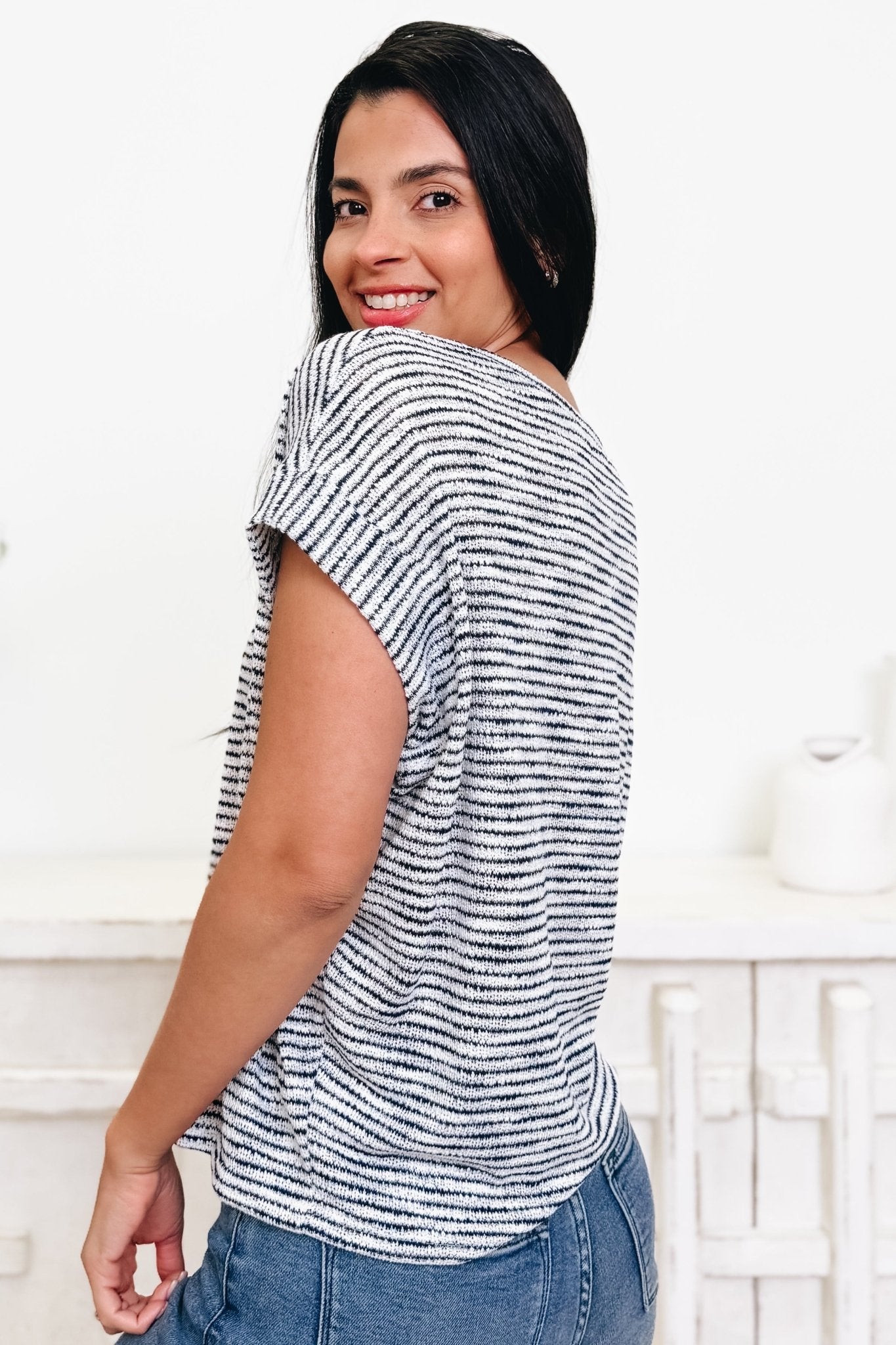 Slip into comfort with the Into The Good Stuff Top—your new go-to striped essential. Crafted from buttery-soft fabric with just the right amount of stretch, this everyday piece moves with you from morning coffee to evening plans. Classic stripes never go out of style, and neither does a top this cozy and versatile. Whether you're layering or going solo, this is the kind of piece you'll reach for again and again.