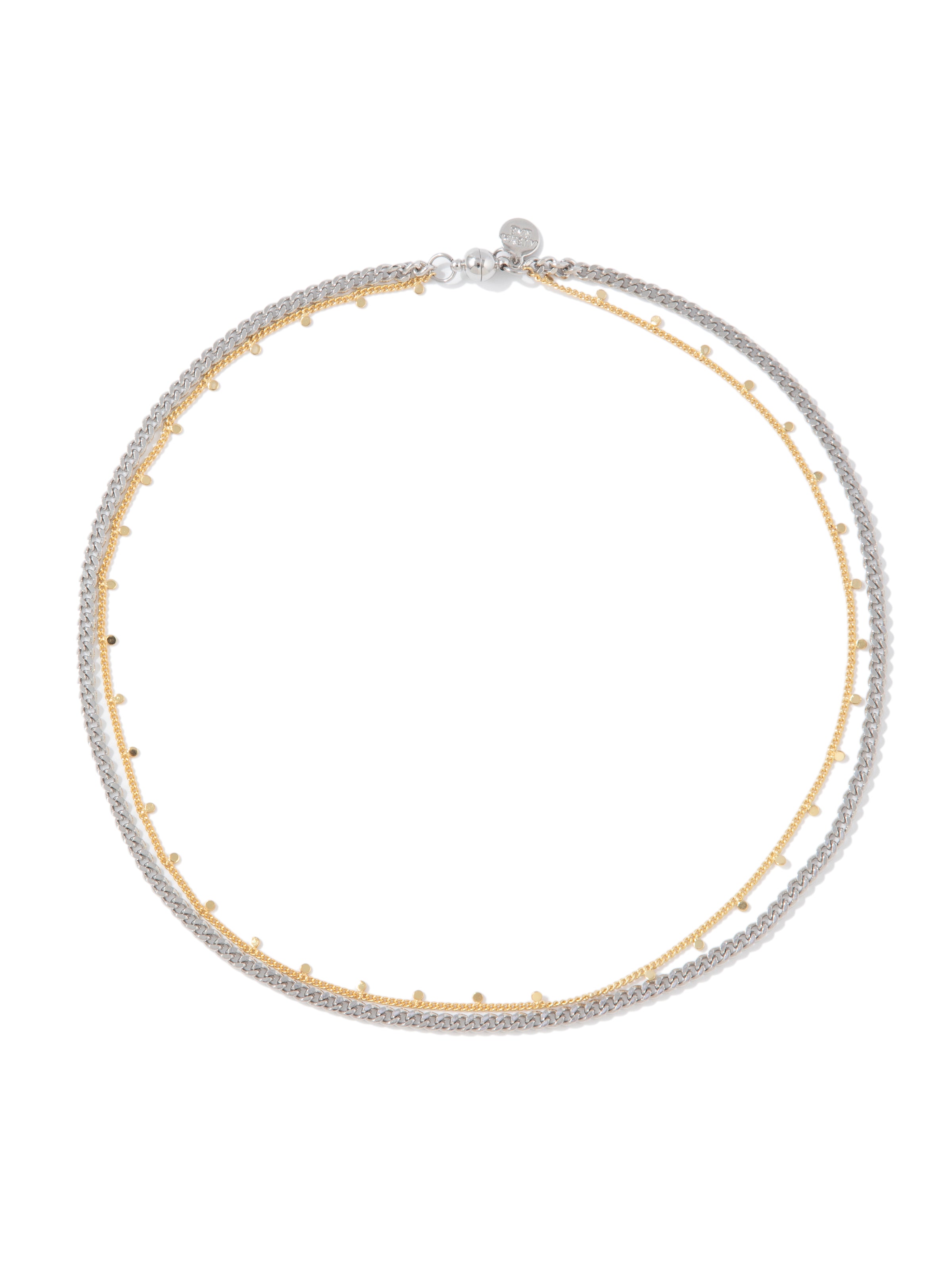 The Kyran Necklace is the definition of effortless edge! This double-chain beauty mixes metallic gold and silver tones for that bold, modern vibe we can’t get enough of. It’s lightweight, features a magnetic clasp with a 3" extender, and layers like a dream. Whether you’re dressing it up or keeping it casual, this stunner adds the perfect touch of shine every time!