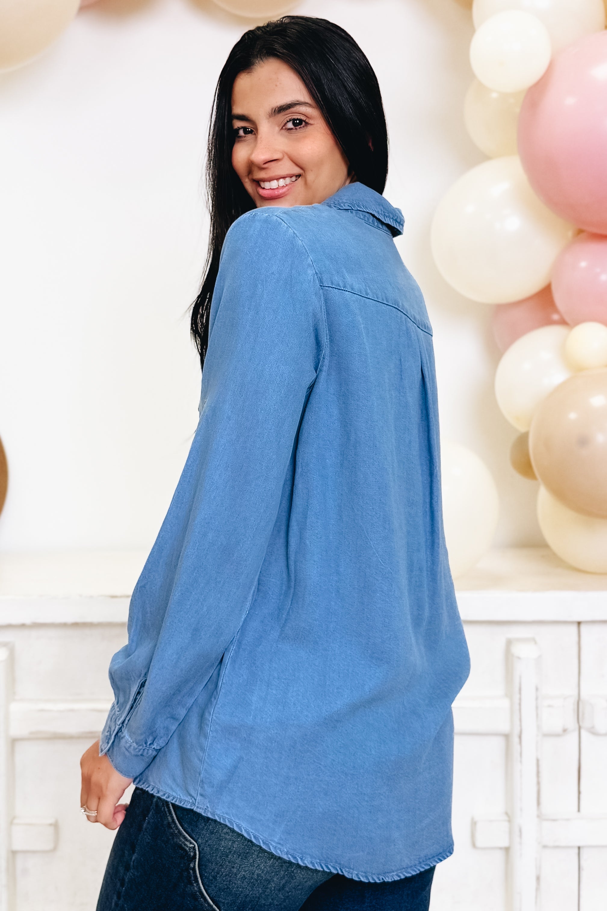 Meet the Line Dancing Queen Top—your new go-to for effortless Western glam! This lightweight button-down is designed to work as hard as you do, with a gorgeous subtle shine that catches the light just right. The functional fit keeps things comfortable whether you're two-stepping all night or running around town. The perfect blend of cute and practical, this top transitions seamlessly from day to night. With its polished sheen and relaxed silhouette, you'll be absolutely obsessed with how versatile and fabulous it makes you feel!