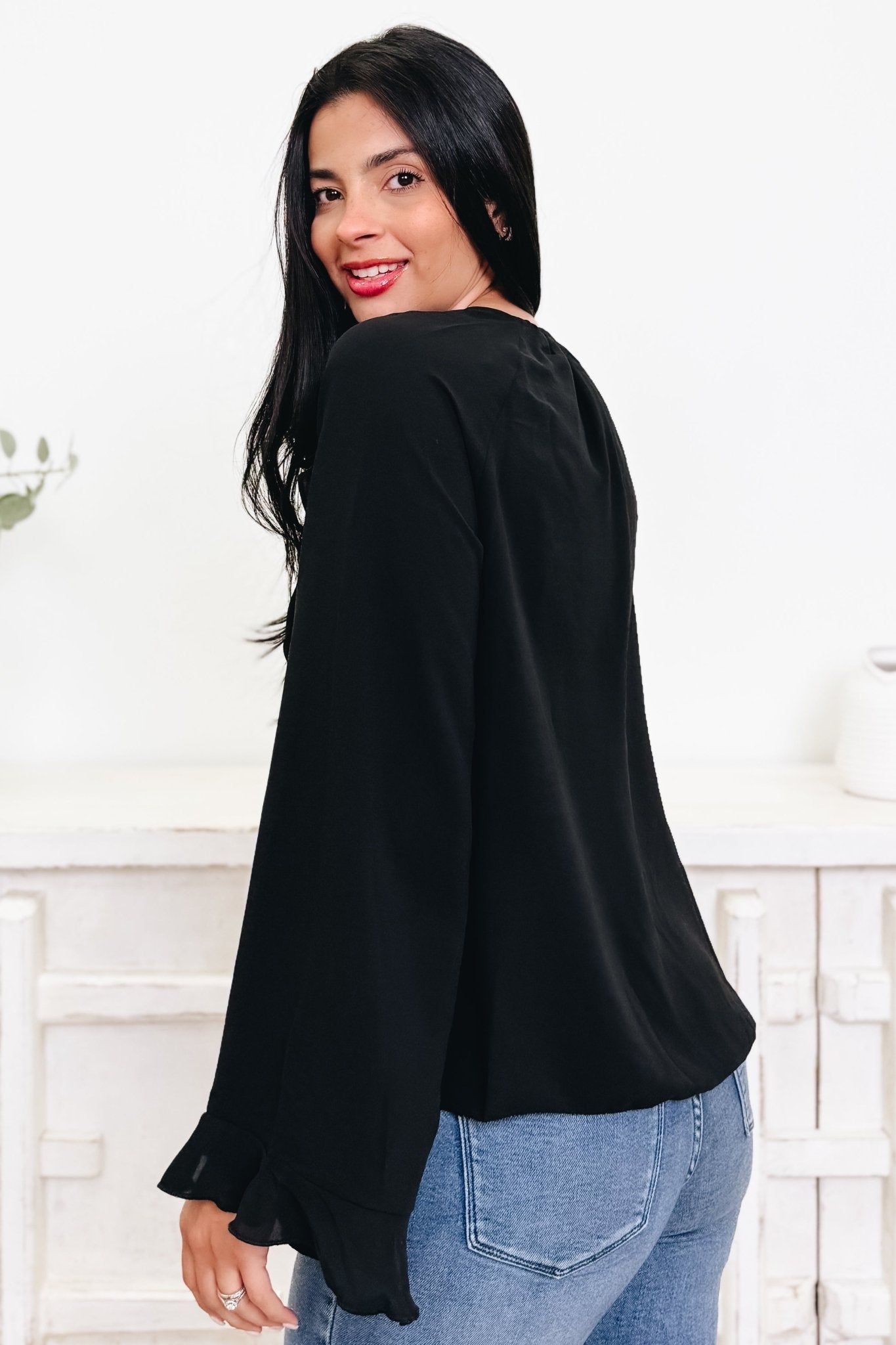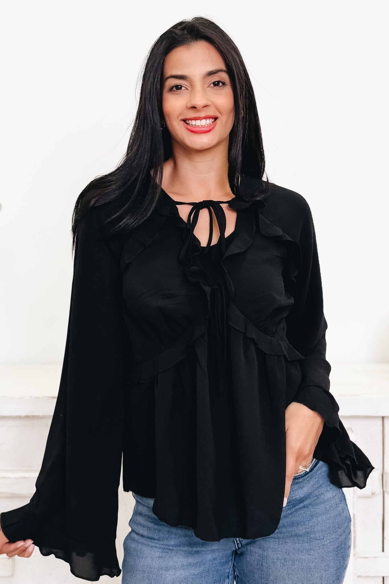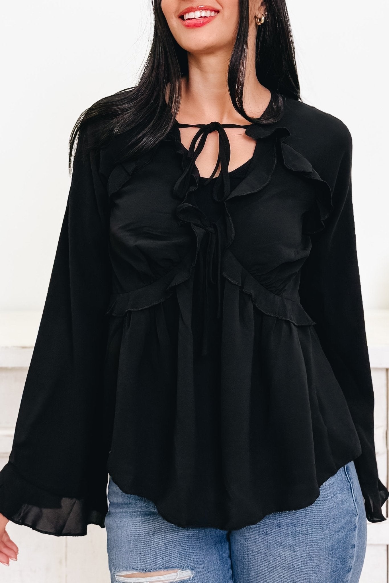 Long Live The Queen Top is the ultimate date night essential with its stunning ruffle detailing and effortless flow. The functioning tie adds a playful touch you can style however you want—dress it up or keep it casual. This top is pure magic, combining romantic details with wearable comfort. Whether you're heading out for a special occasion or just want to feel fabulous, this piece delivers the perfect blend of elegance and fun. We're absolutely obsessed, and you will be too!