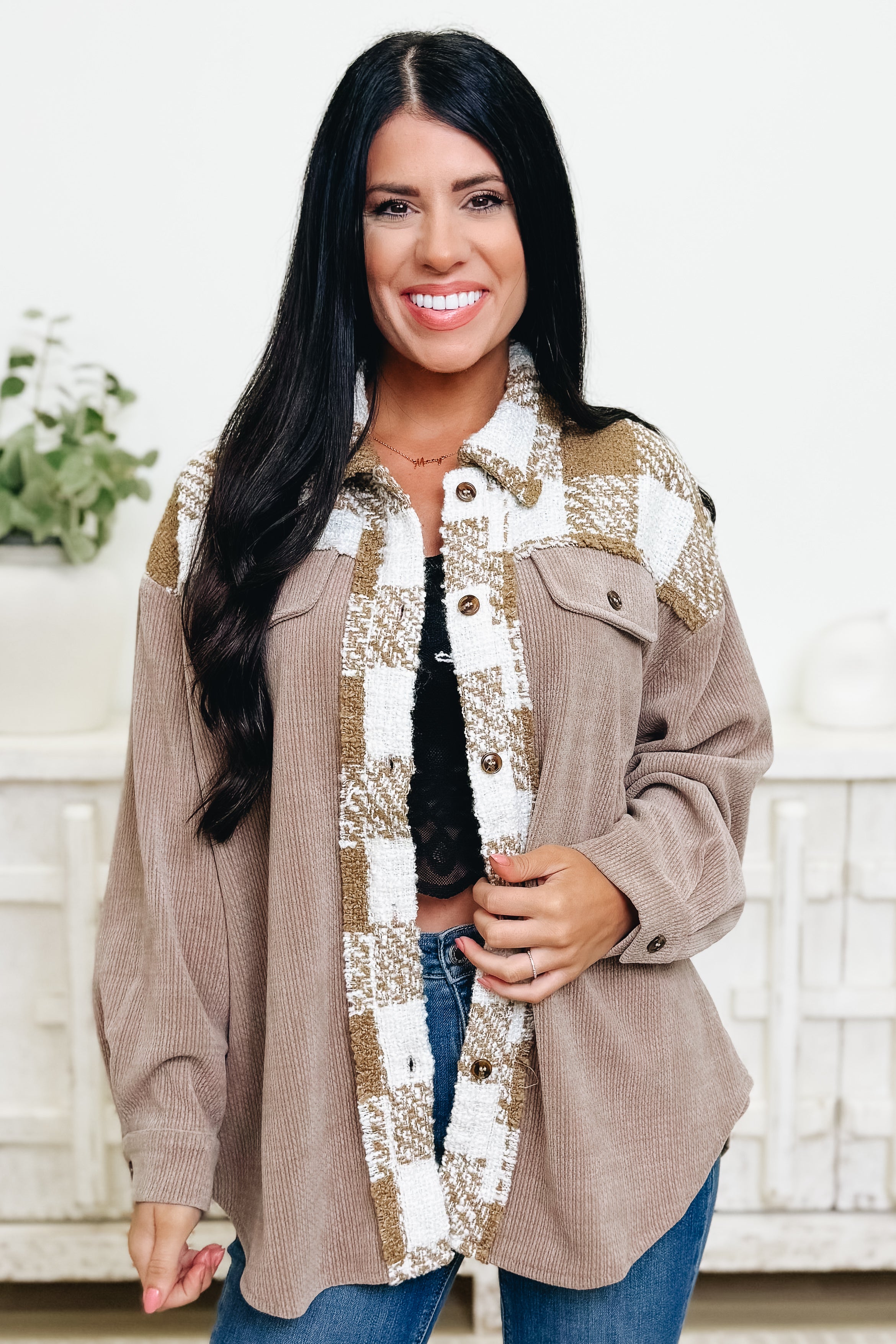 This tweed shacket is giving main character energy! Crafted from luxe tweed with stretchy ribbed fabric (aka comfy andcute), it’s the perfect mix of classic and cool. The pop of checkered print adds just the right amount of flair, making this piece an instant outfit maker. Lightweight but still cozy — you’ll be reaching for this one on repeat, babe!