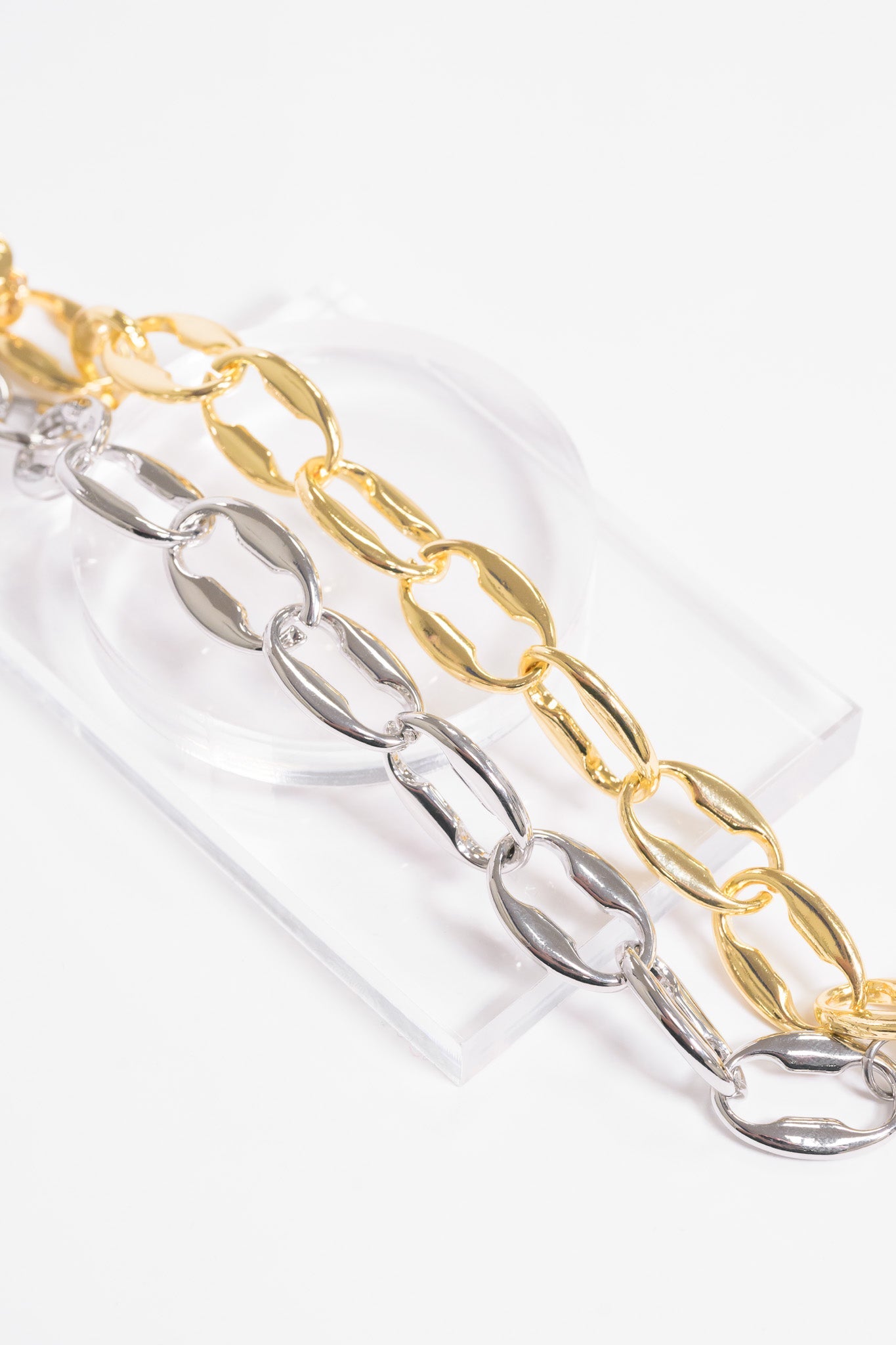 Meet your new favorite accessory: our Miami Nights bracelet. With a thick chain, gold and silver coloring, and a magnetic clasp, it's the perfect piece for layering. Super lightweight and effortlessly stylish, this bracelet is an absolute must-have. We’re obsessed—get yours today!
