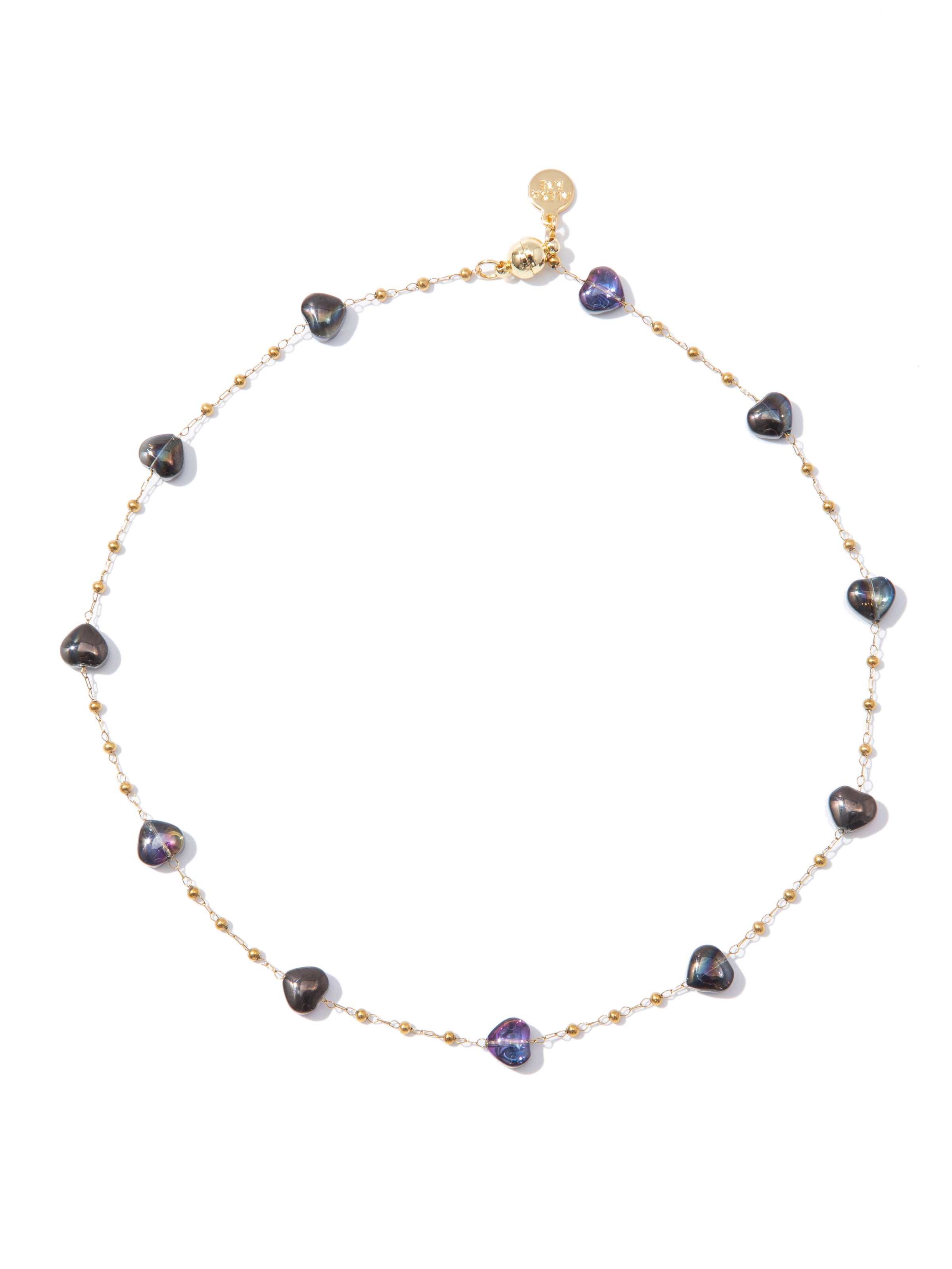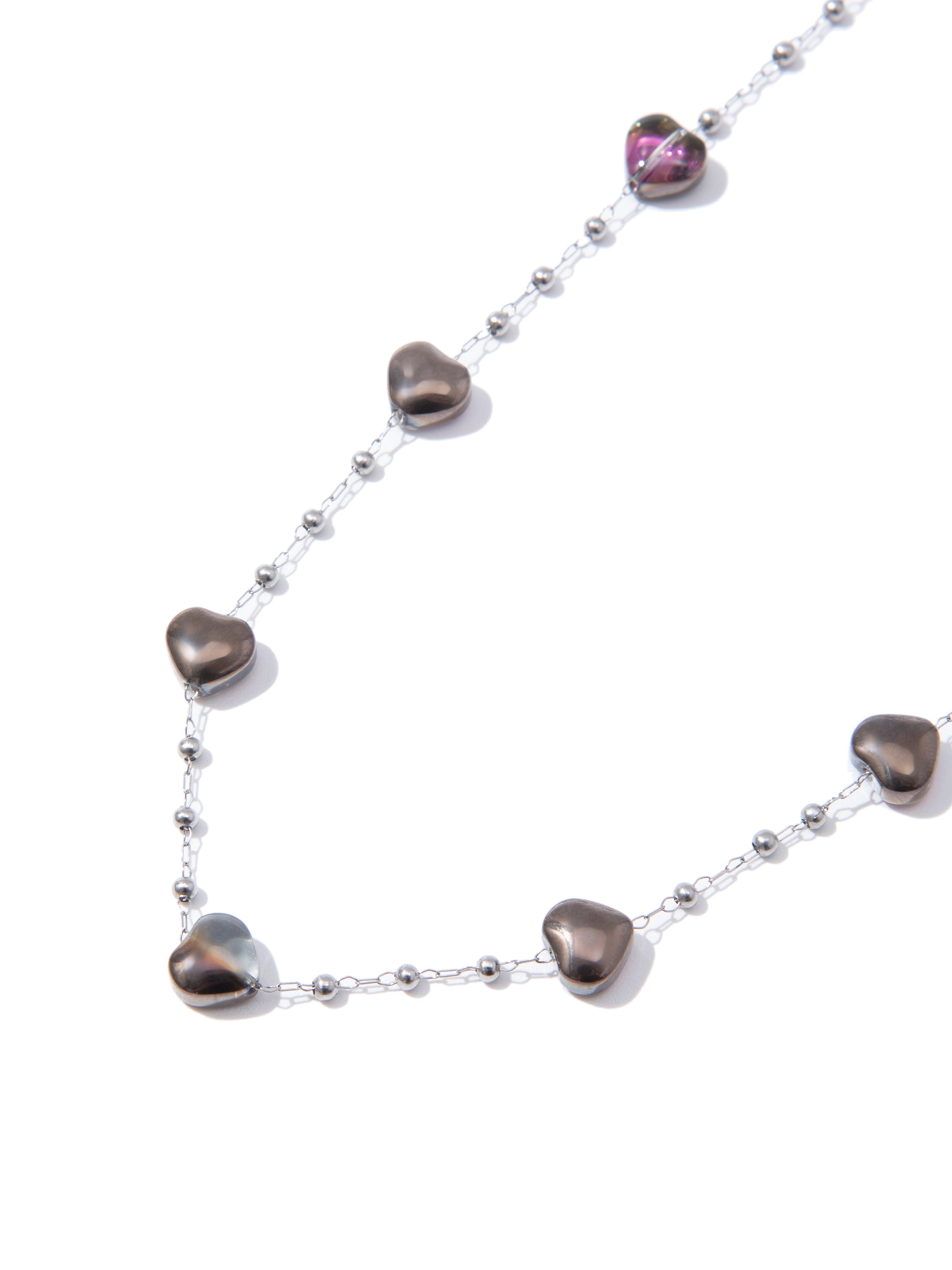 Fall in love with the Mystic Heart Necklace — a stunning piece that radiates charm and mystery. Featuring iridescent mystic-colored heart beads on a delicate metallic chain, this beauty catches the light with every move. Designed with a magnetic clasp and 3" extender, it’s both lightweight and effortlessly elegant. The perfect blend of sweet and sultry — pure perfection!