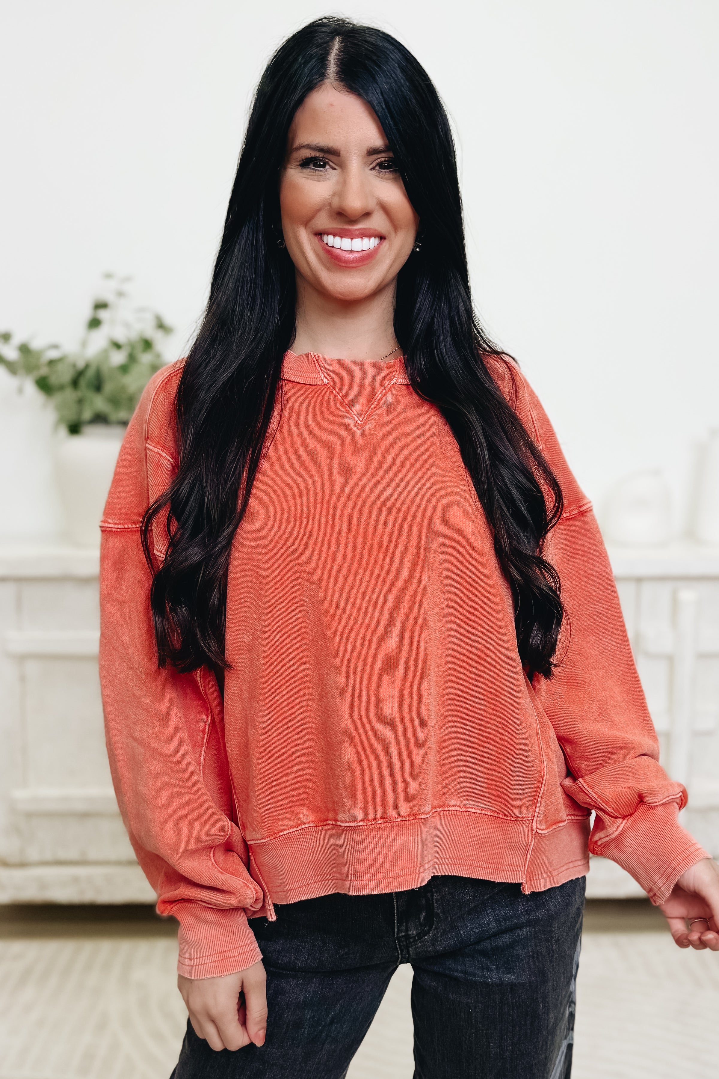This sweatshirt is that perfectly lived-in, throw-on-and-go kind of cute. It has a relaxed, comfy fit with a soft washed look that gives it effortless “favorite from day one” vibes, plus subtle seam details and cozy cuffs for the perfect finish. Dress it up with denim and sneakers or keep it casual with leggings—either way, it’s an easy everyday staple. And since it comes in multiple colors, you can totally justify grabbing more than one