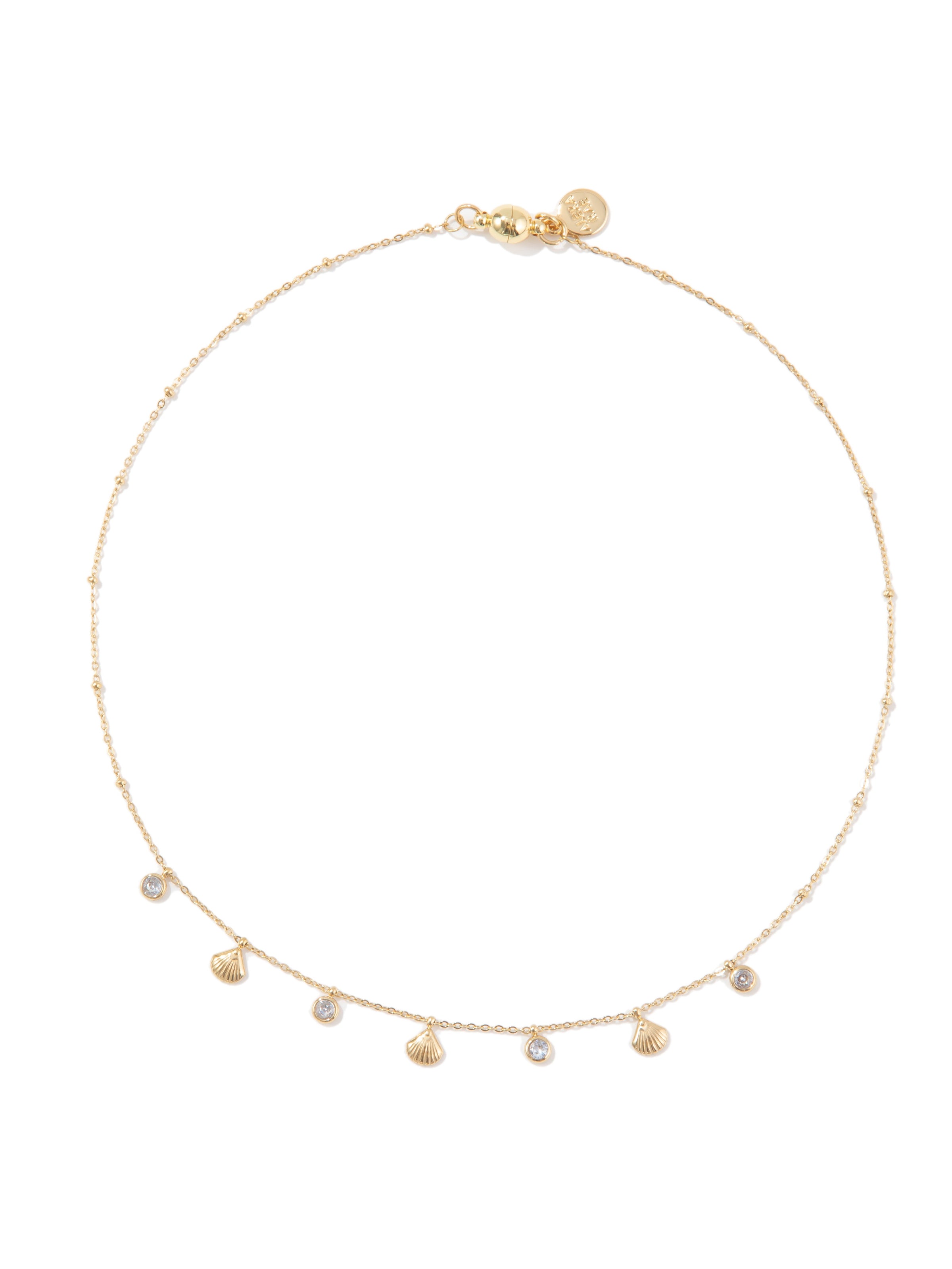 Our Ocean In The City Necklace is pure perfection! Featuring delicate shell detailing, it lays flawlessly on your neck with a lightweight, stunning design. Crafted with radiant gold coloring, stainless steel, and sparkling Cubic Zirconia, it’s both waterproof and effortlessly chic. Finished with a magnetic clasp and 3" extender for the perfect fit, this necklace is a must-have statement piece. We are totally obsessed!
