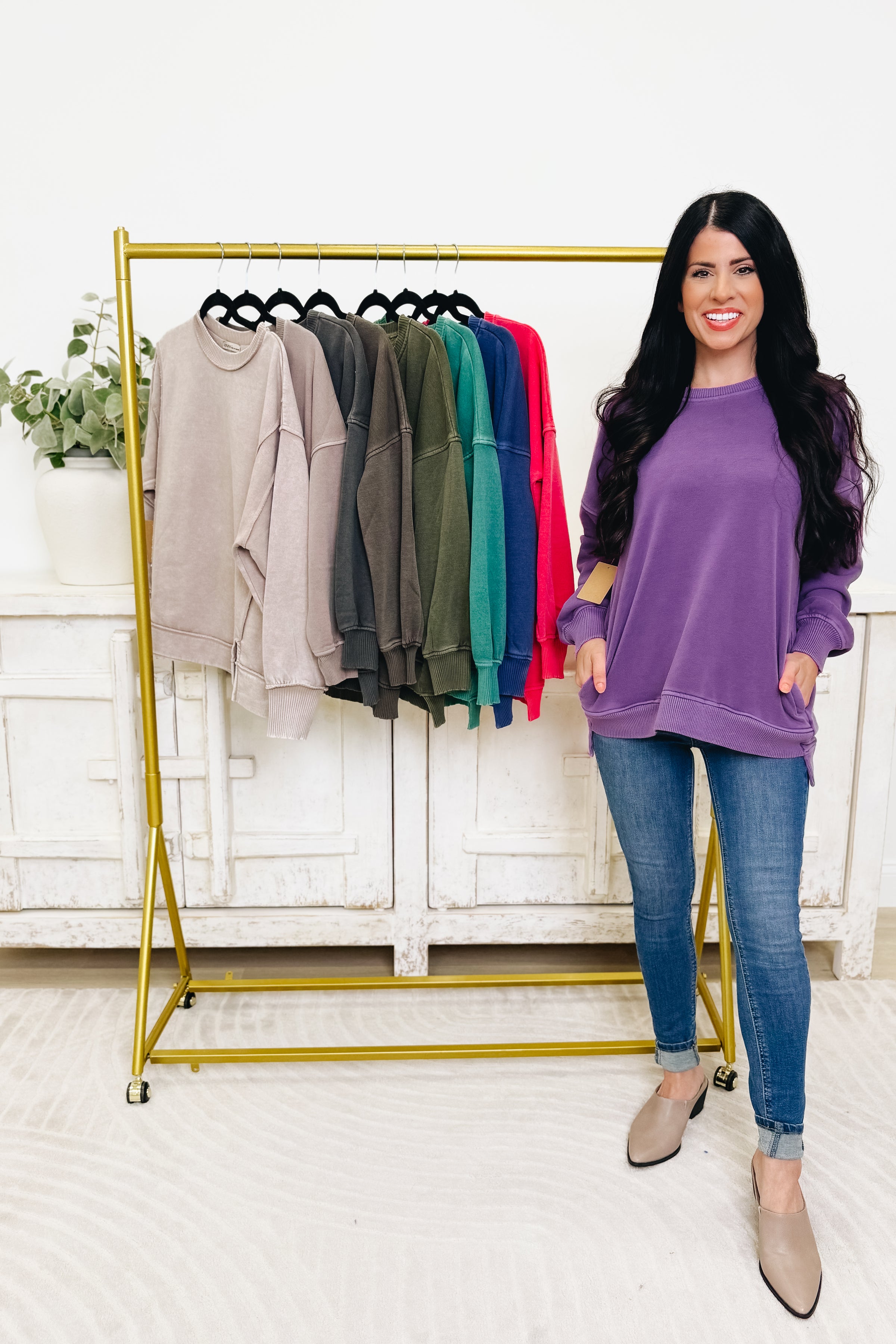 This mineral wash pullover is absolutely epic! Super soft, cozy, and comfy with just the right coverage, it’s effortlessly stylish and a total must-have basic. Perfect for layering or rocking solo—we are completely OBSESSED!