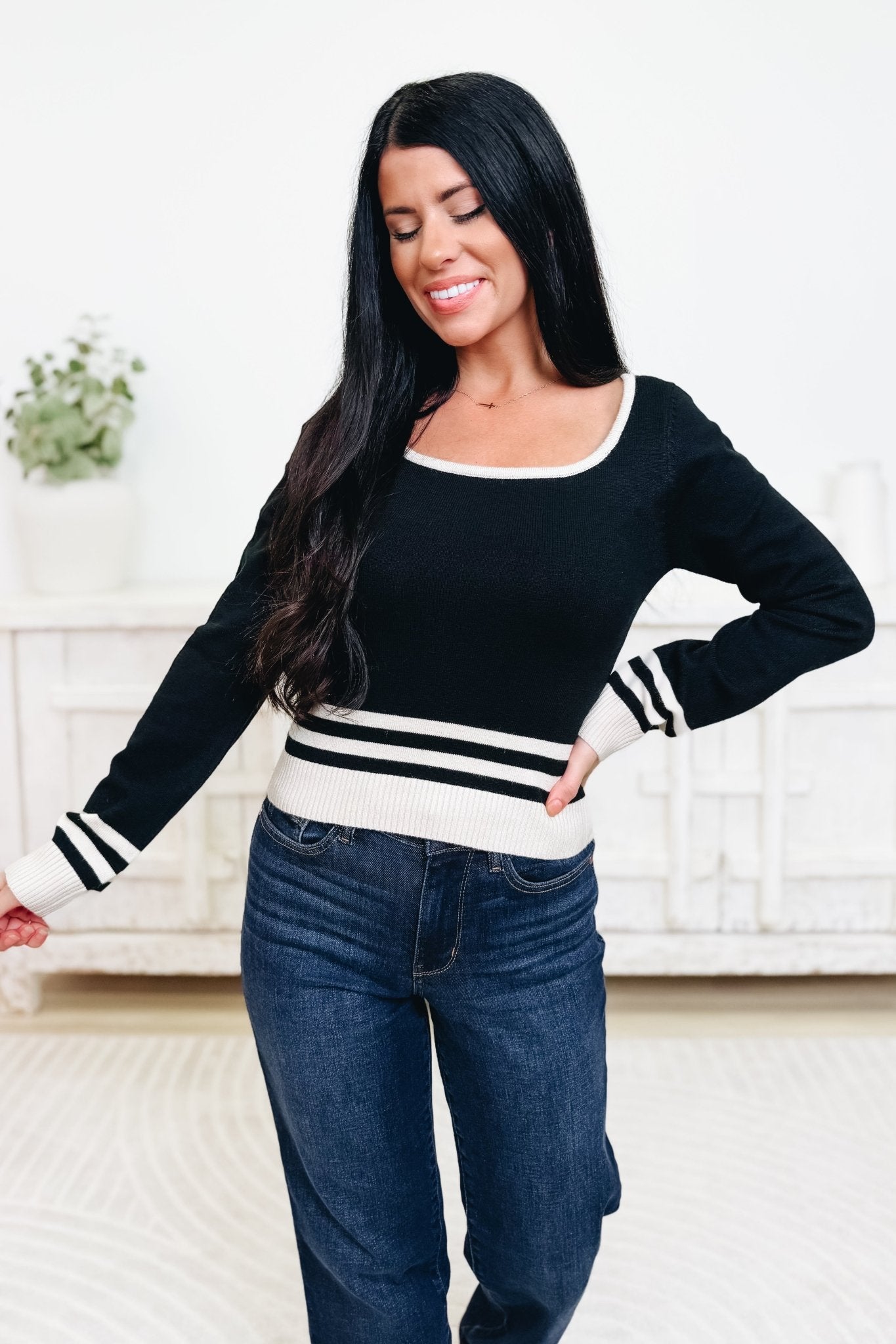 The Potentially You Top is the long sleeve sweater you've been waiting for. Featuring a flattering scoop neck and a timeless silhouette, this piece effortlessly transitions from casual to polished. Crafted from soft, stretchy fabric that moves with you, it delivers all-day comfort without sacrificing style. The perfect coloring makes it a versatile wardrobe staple that pairs with everything. Classy, cozy, and absolutely obsession-worthy—this is the sweater that does it all.