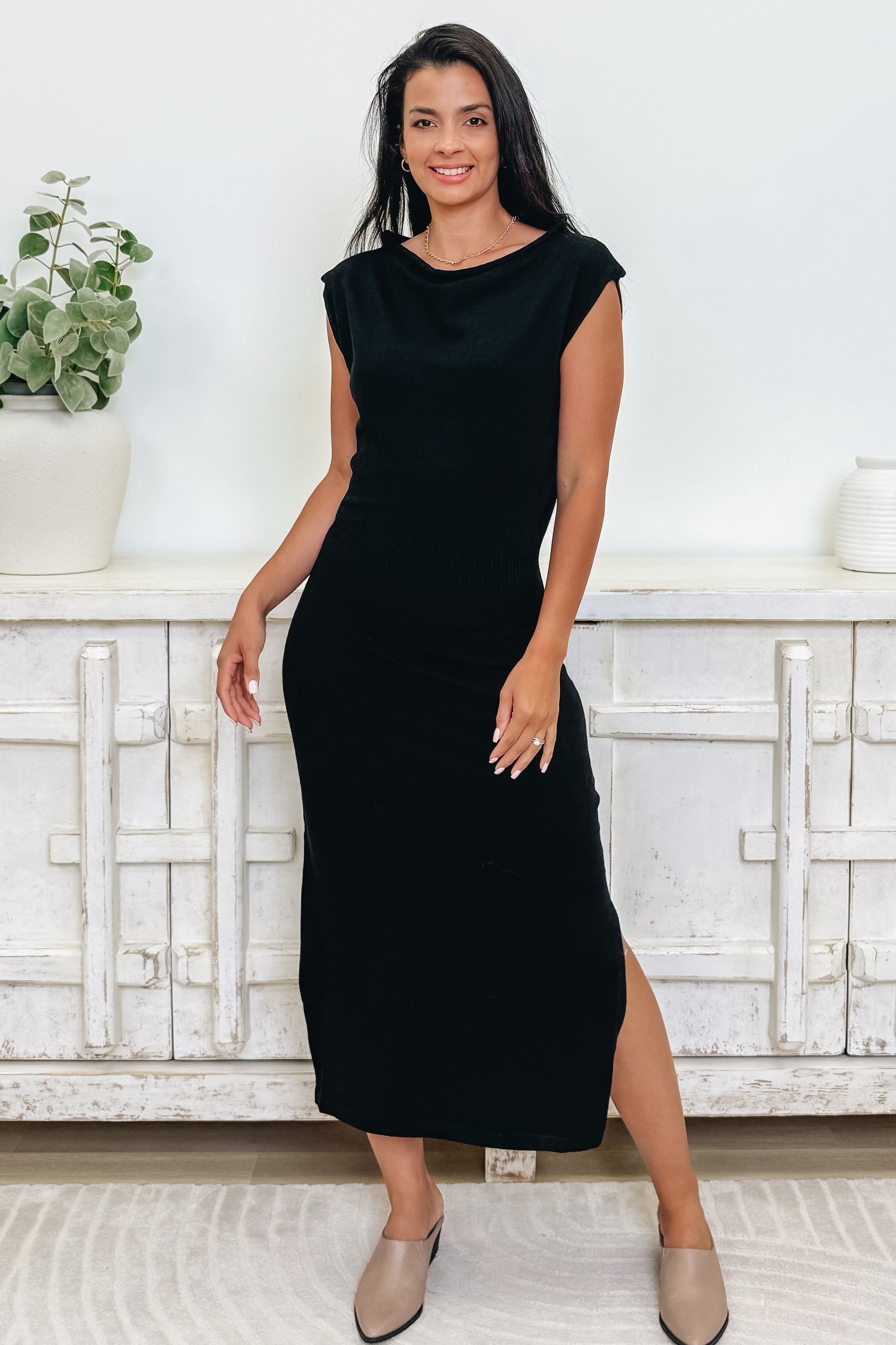 This dress is seriously the sleekest ever! Made from the dreamiest buttery soft material with the perfect amount of stretch, it hugs in all the right places while keeping you comfy all day (or night!). The neckline is gorgeous — wear it on or off the shoulder for a flirty, chic vibe — and the slouched waistband gives that effortlessly flattering fit. Luxe, comfy, and totally stunning — we are OBSESSED!