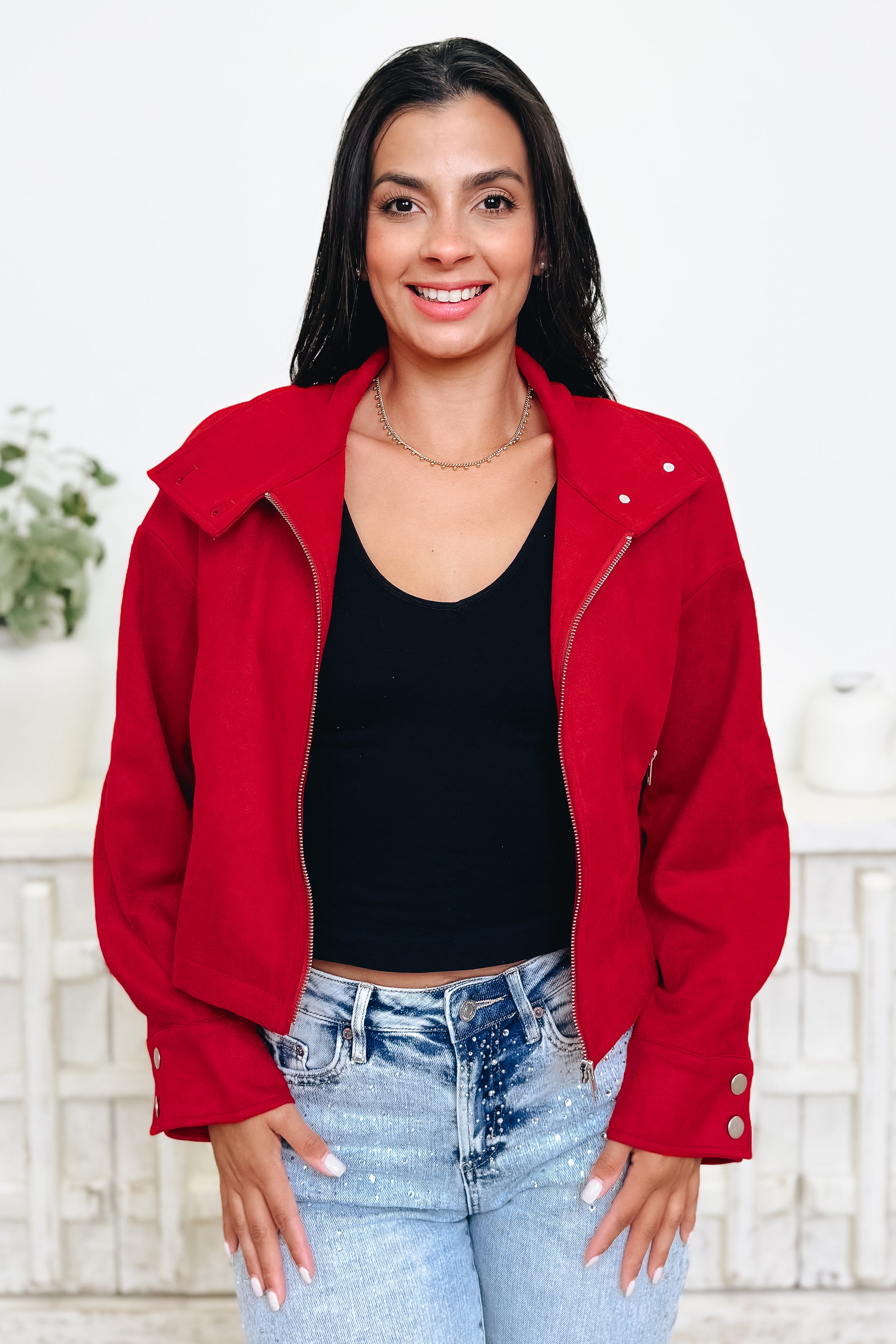 We are obsessing over this long crop faux suede jacket! Super soft and lightweight, it’s the perfect mix of cute and cozy. We’re loving the dreamy coloring, sleek functioning zipper, and flattering coverage, length, and neckline. Effortless style meets everyday comfort—this jacket is pure obsession!
