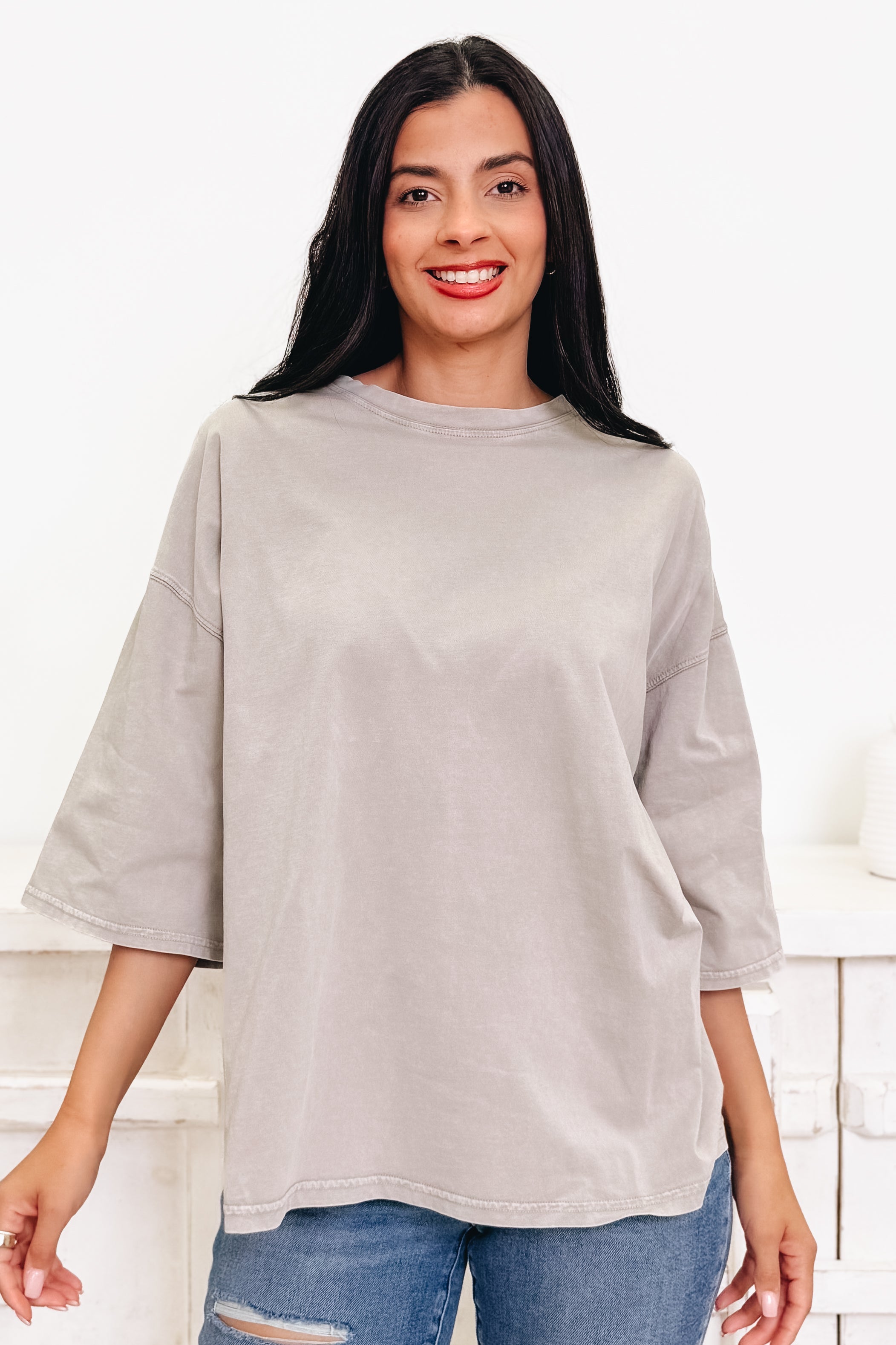 This everyday tee is an instant fave 🤍 Featuring flattering 3/4 length sleeves and the most perfect mineral wash coloring, it has that lived-in, effortlessly cool look we can’t get enough of. Easy, comfy, and cute with literally everything, this is the kind of top you’ll reach for on repeat — we’re OBSESSED.