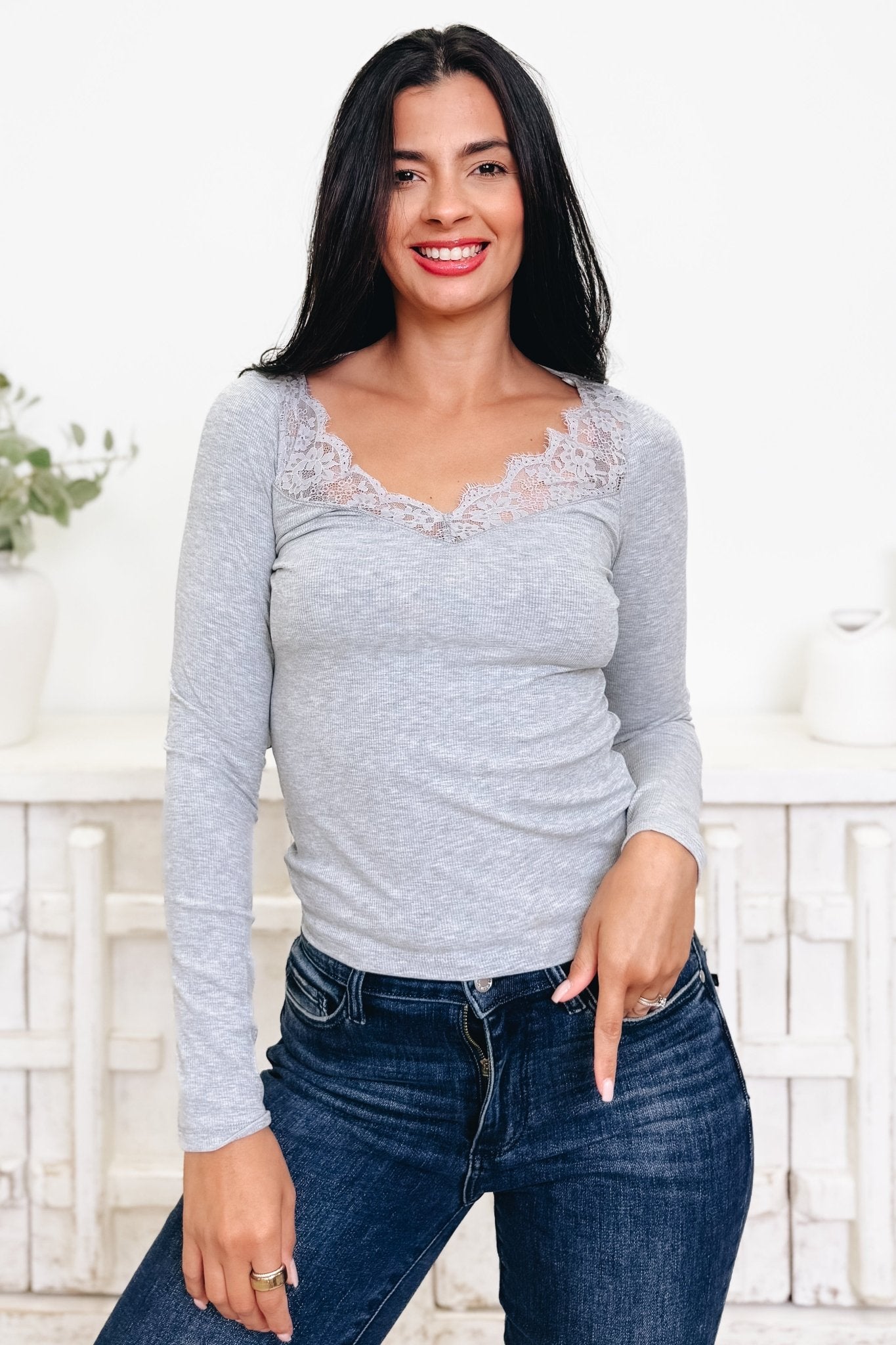 Show off your style in this stunning ribbed top that's as comfortable as it is chic. Featuring delicate lace detailing across the bust, it's the perfect everyday piece that hugs you just right. Available in two gorgeous colors, this versatile top pairs effortlessly with everything in your closet. Whether you're running errands or heading out for the day, you'll feel confident and fabulous. This is the top that lets your greatness shine through!