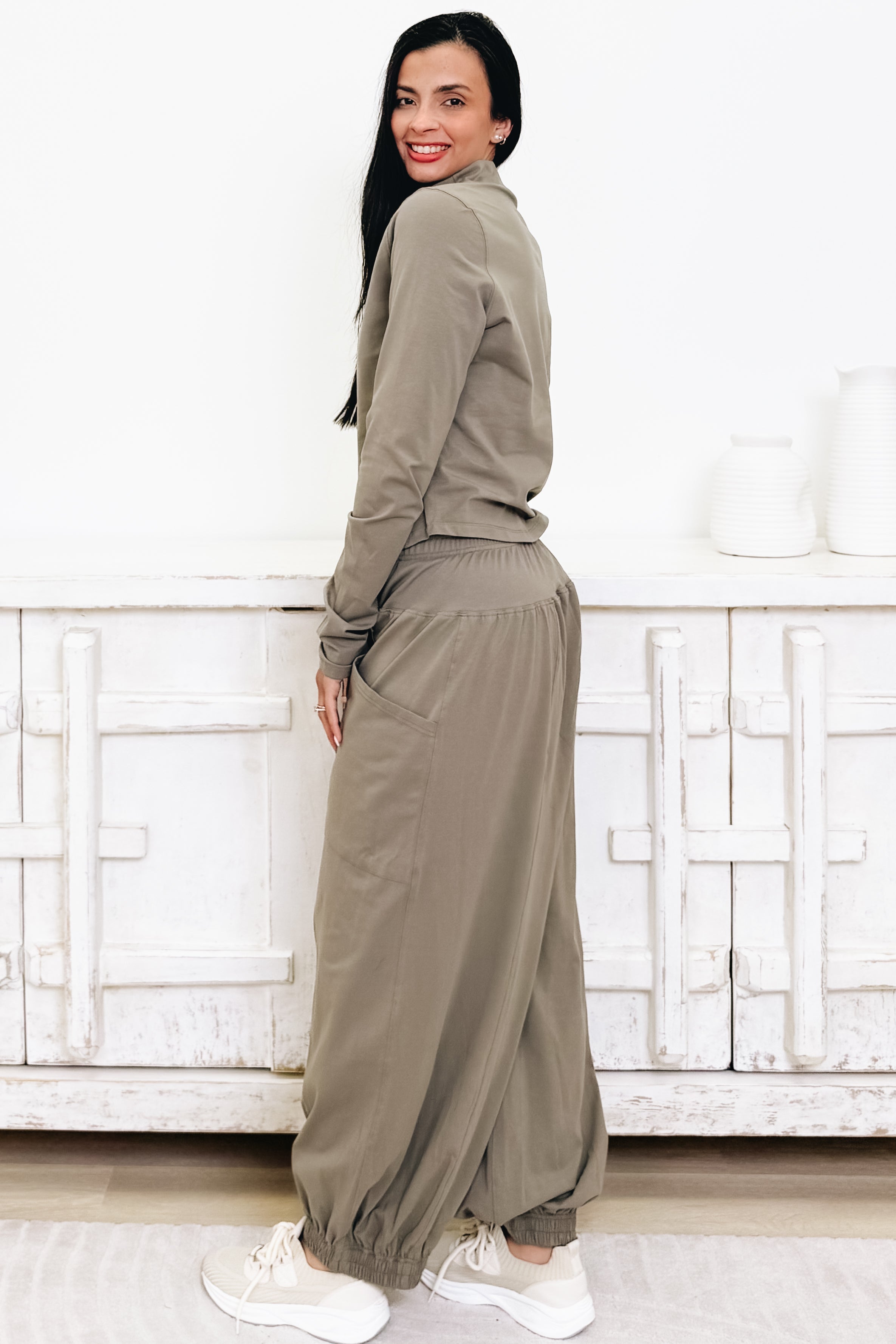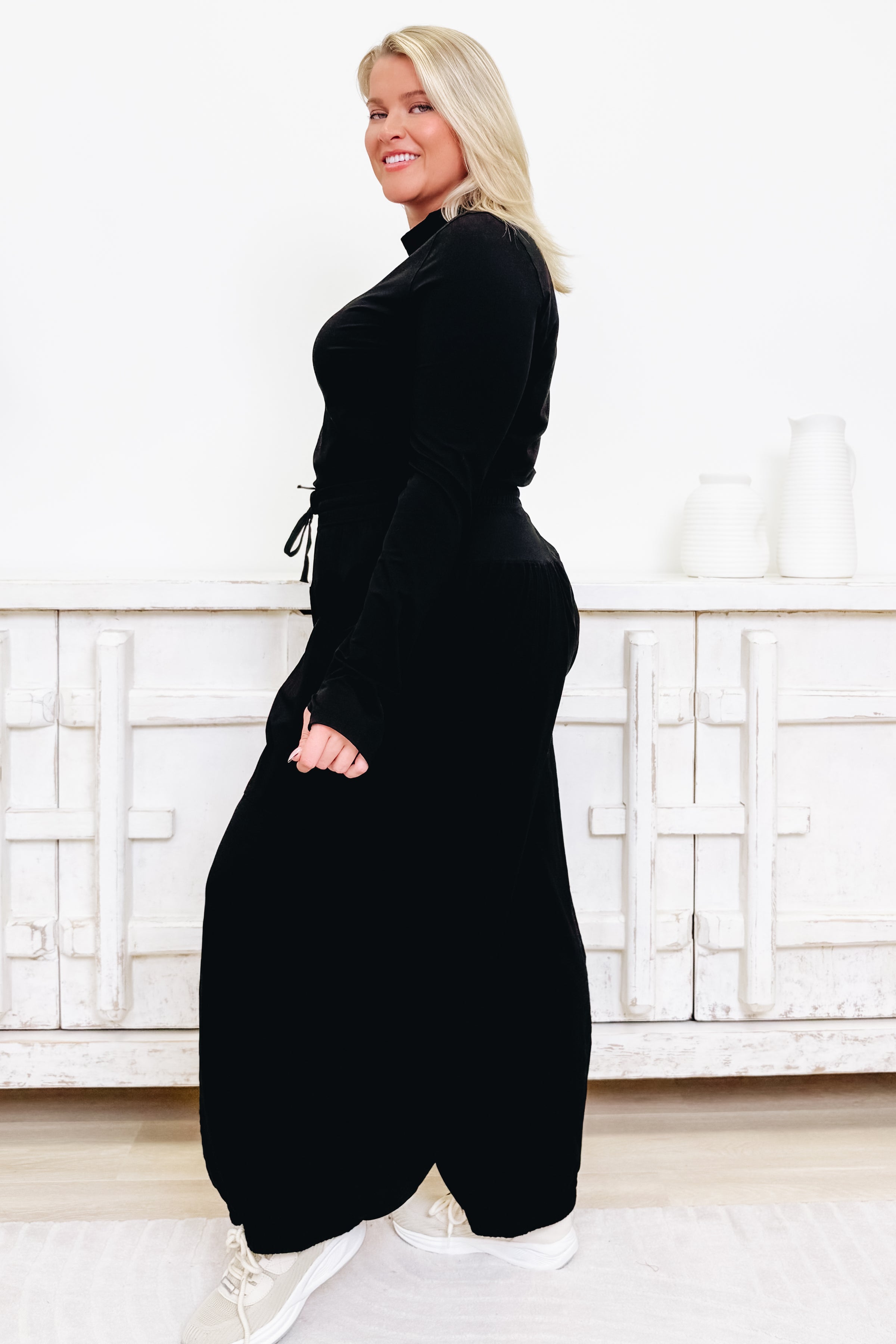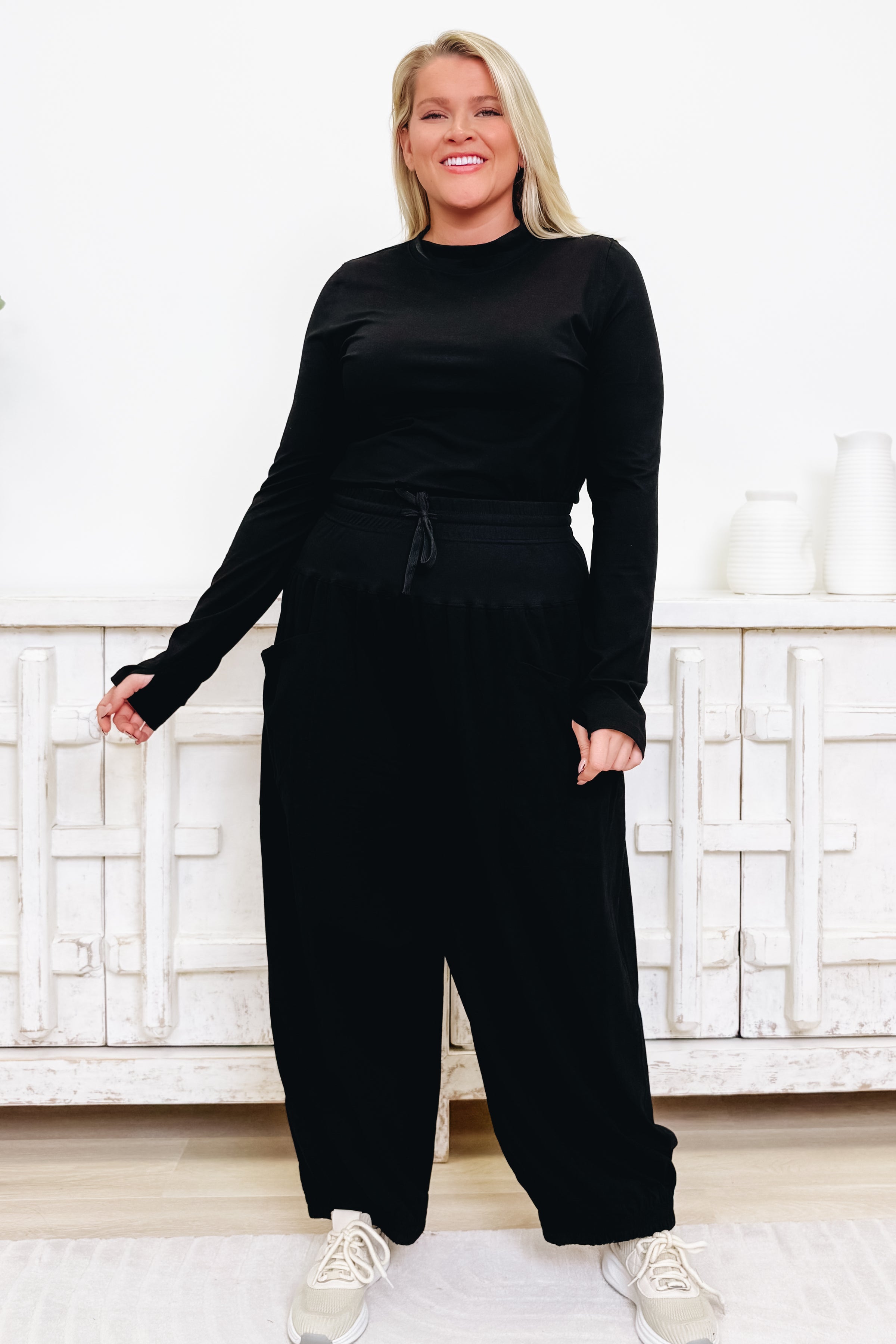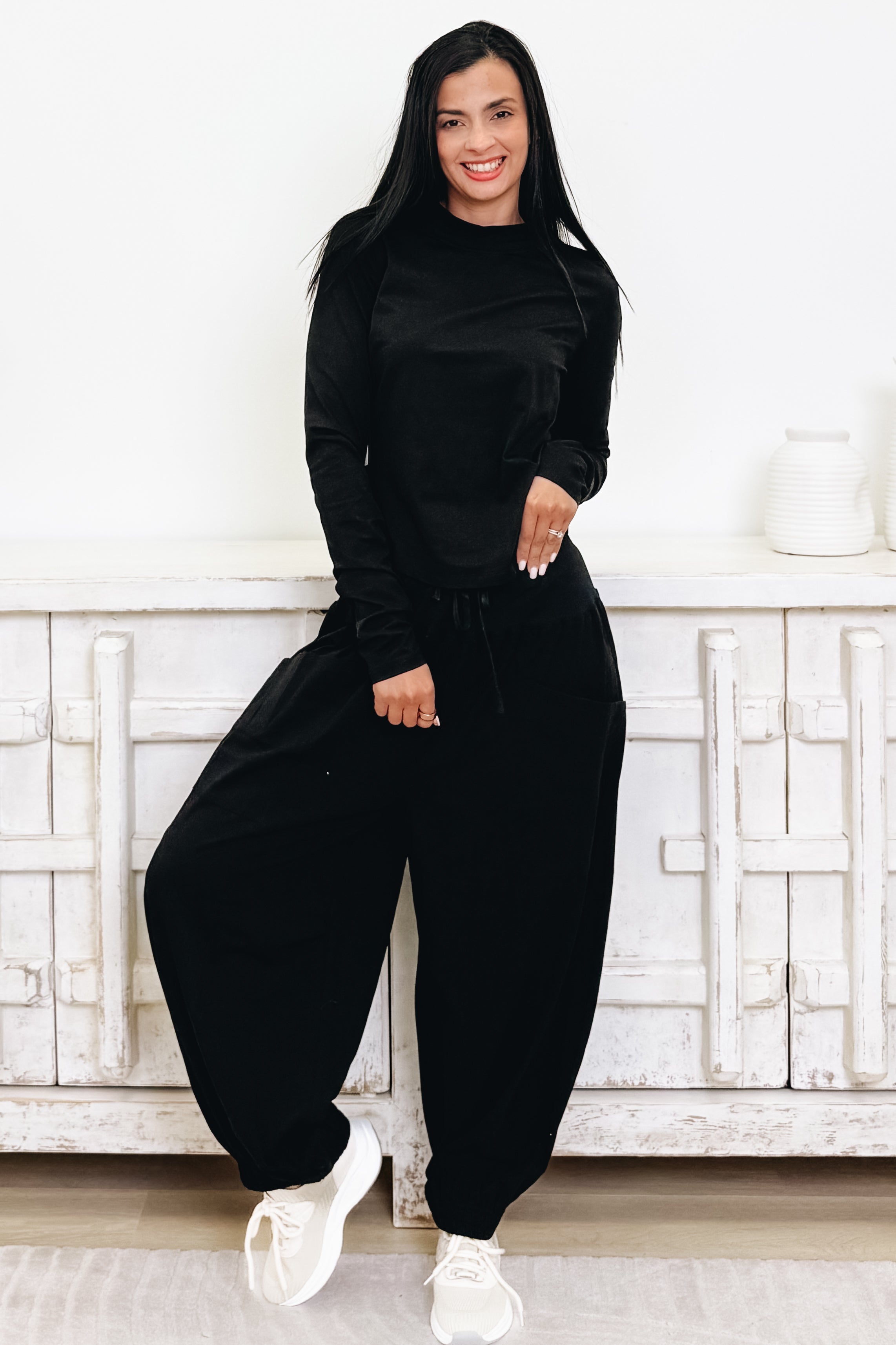 Get ready to live in comfort with the Snuggle SZN Lounge Set! This dreamy duo pairs a flowy top with barrel jogger pants in the most gorgeous colorways. Ultra-soft fabric feels like a warm hug against your skin, while the relaxed silhouette lets you move freely without sacrificing style. Whether you're lounging at home or running errands, this set delivers that perfect blend of cozy and chic. Available in 3 stunning colors to match your vibe. Pure perfection for your downtime rotation!