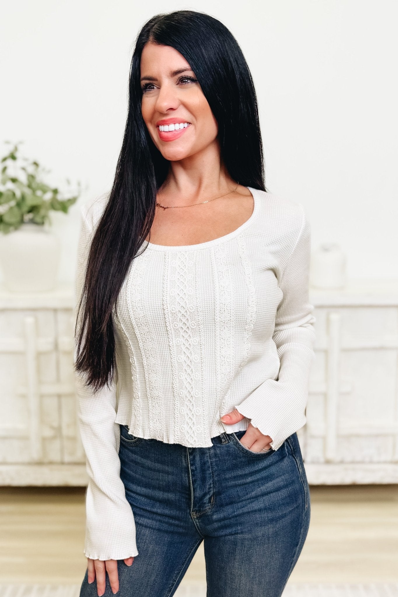The Still The One Top is your new everyday essential that delivers on every level. Crafted from premium fabric with an irresistibly soft, textured finish, this long sleeve features a flattering scoop neck and stretchy construction that moves with you all year long. Whether you're layering through seasons or wearing it solo, the high-end quality and buttery-soft feel make this the perfect go-to piece that never gets old. Effortlessly cool, endlessly comfortable—this is the top you'll reach for again and again.