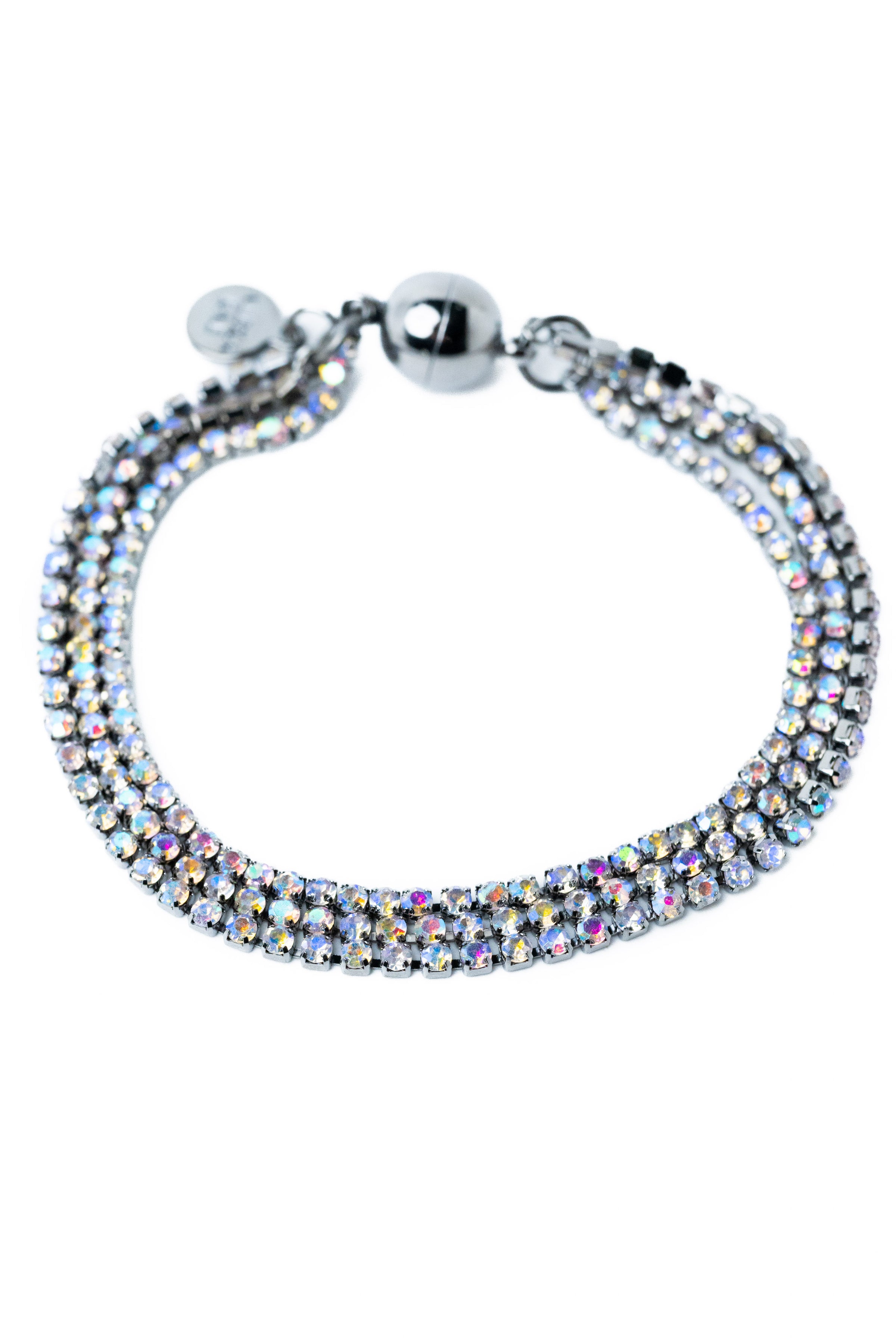Level up your accessory game with our Stitches Bracelet Set! Featuring the most perfect gunmetal AB shine that effortlessly complement any outfit, these bracelets are super lightweight and comfortable for all-day wear. The innovative magnetic clasp makes them a breeze to slip on, and the versatile design means you can stack, mix, or wear solo for instant style. Chic, bold, and totally statement-worthy!