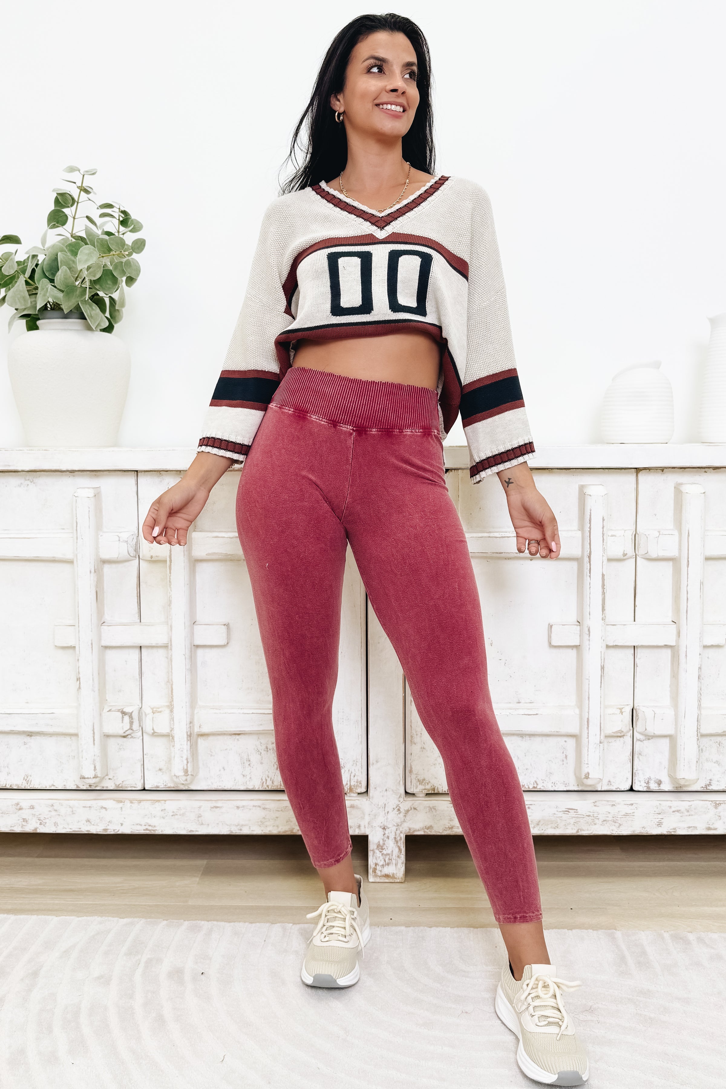 These leggings are absolute perfection—super soft with the most flattering fit that makes you feel like a million bucks! Whether you’re hitting the gym, running errands, or dressing them up for a night out, they’ve got you covered. The chic mineral wash coloring adds that extra edge, making these your go-to leggings for every occasion. We are obsessed!